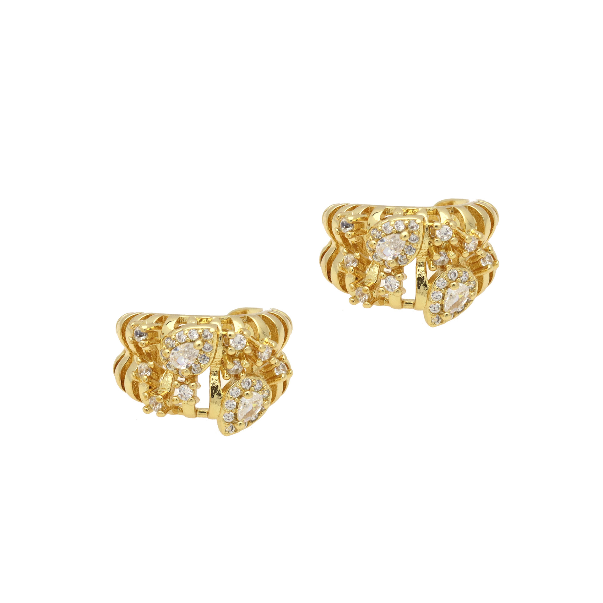Messing Huggie Ohrreifen, mit kubischer Zirkonia, Druckguss-, für Frau, keine, frei von Nickel, Blei & Kadmium, 20.60x10.76x18.60mm, 10PaarePärchen/Tasche, verkauft von Tasche