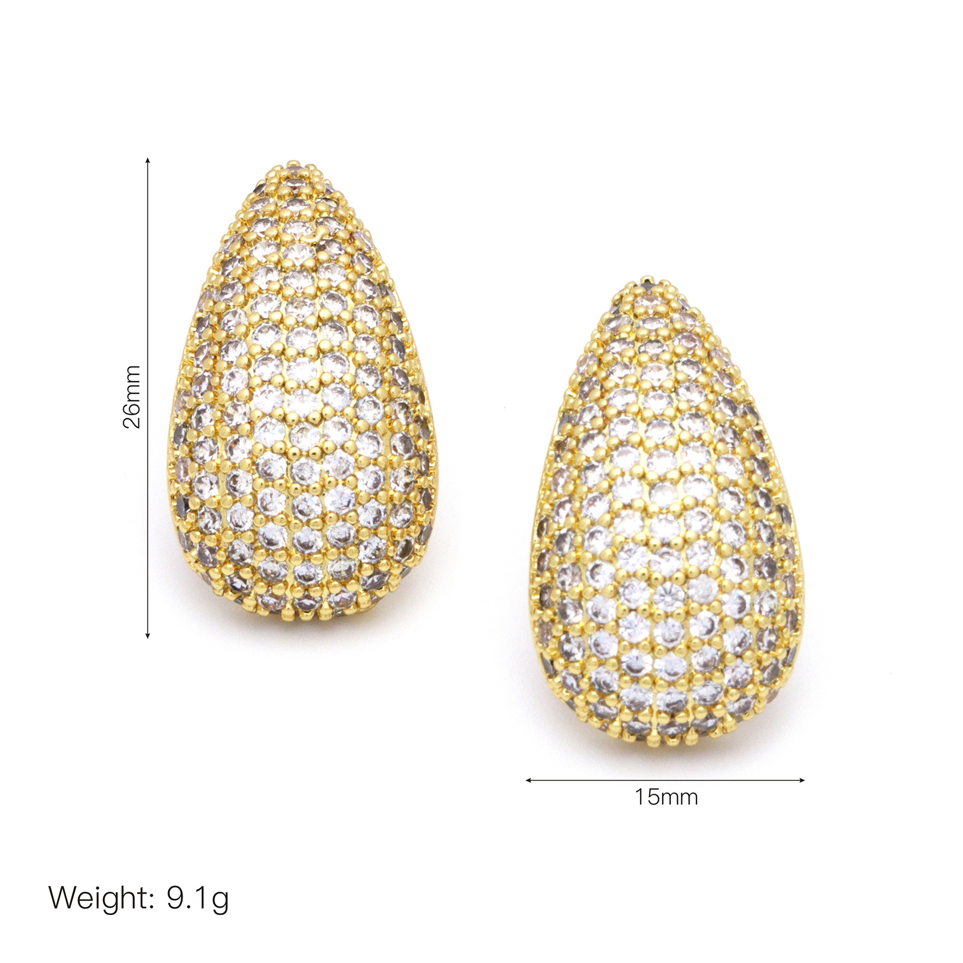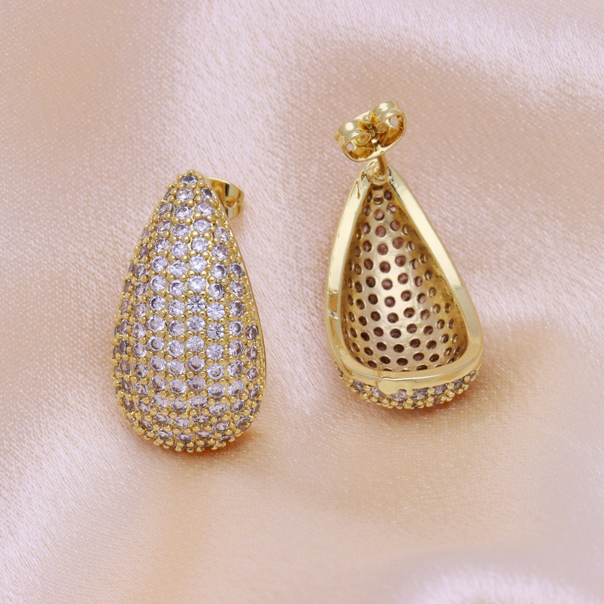 Befestiger Zirkonia Messing Ohrring, Tropfen, goldfarben plattiert, Micro pave Zirkonia & für Frau, 15x26mm, verkauft von Paar