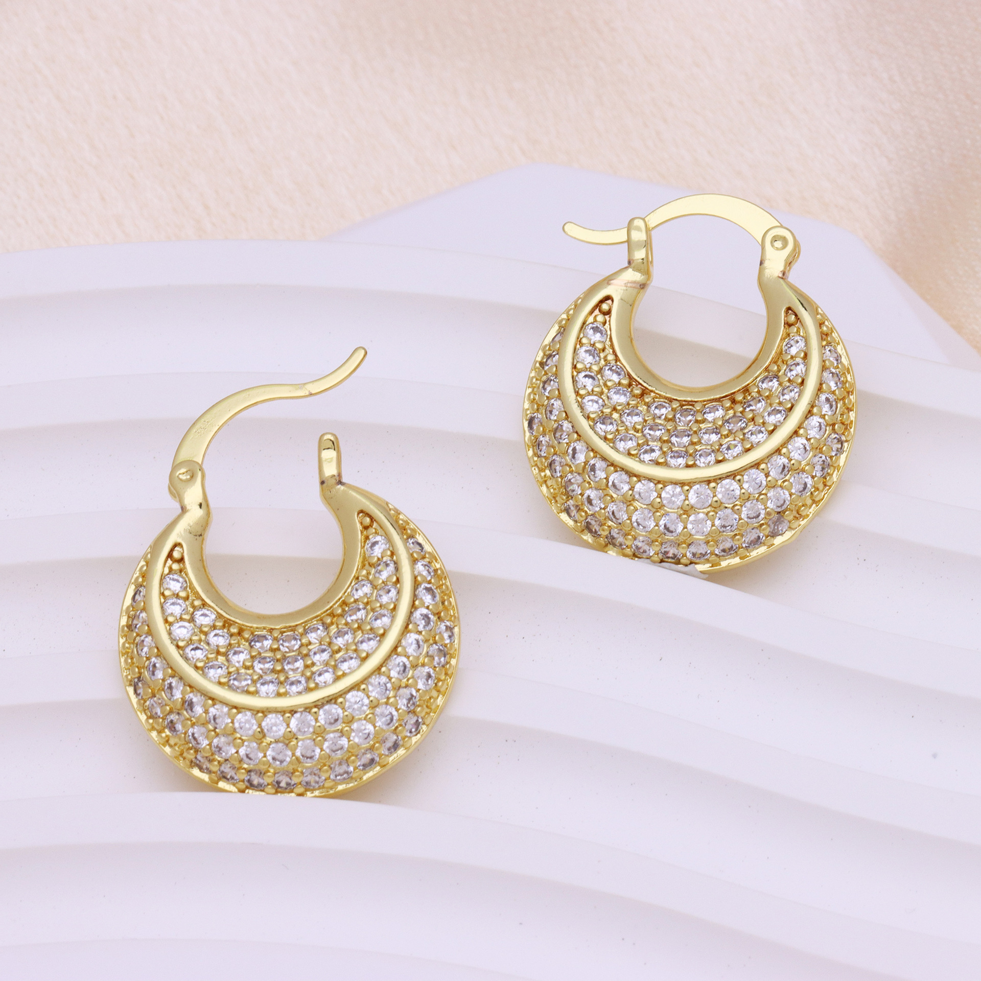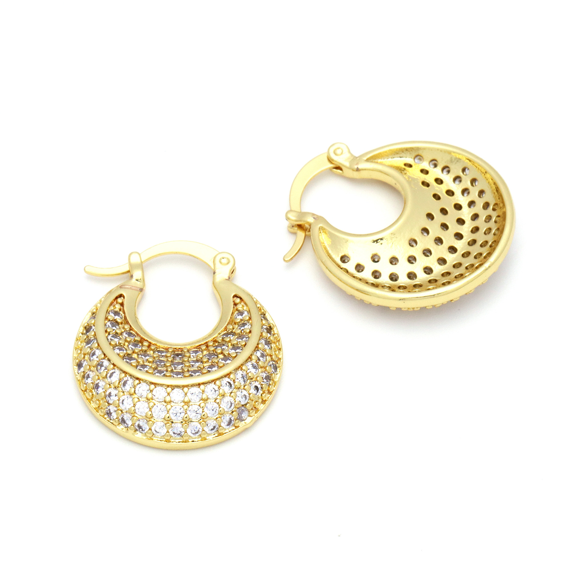 Messing Huggie Ohrreifen, mit kubischer Zirkonia, Druckguss-, für Frau, keine, frei von Nickel, Blei & Kadmium, 20.60x10.76x18.60mm, 10PaarePärchen/Tasche, verkauft von Tasche