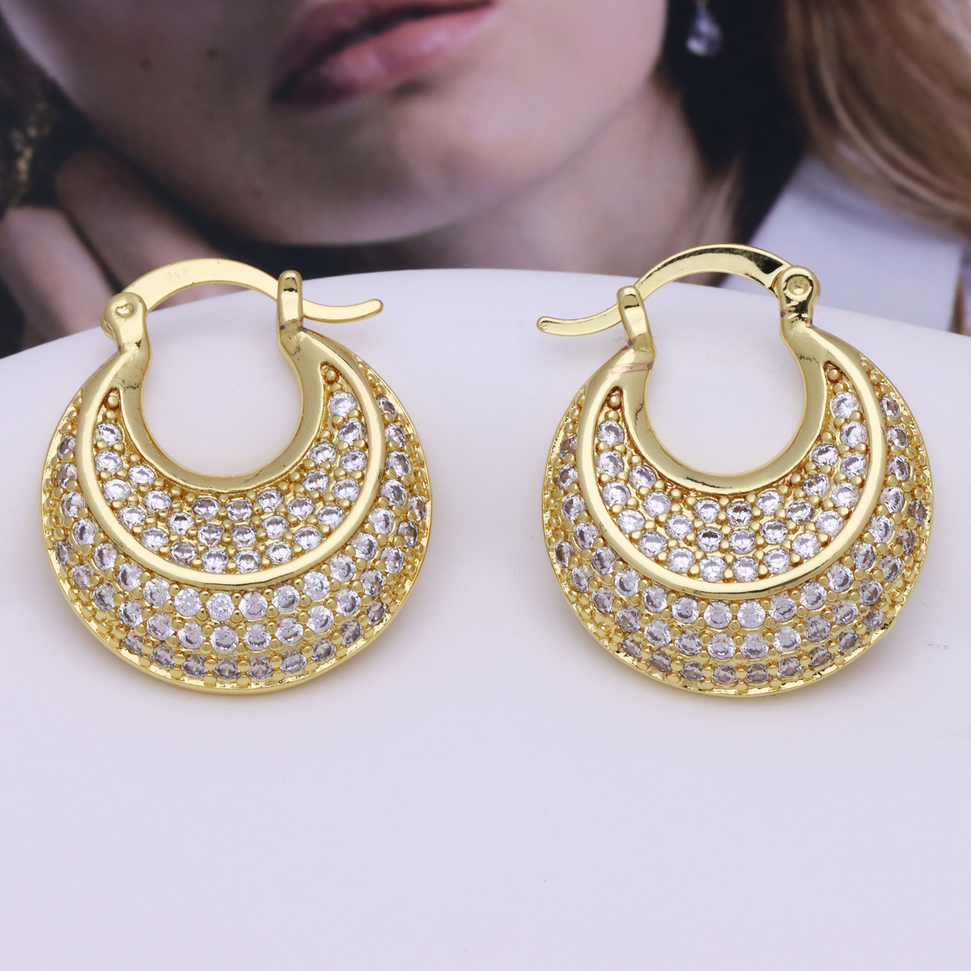Befestiger Zirkonia Messing Ohrring, goldfarben plattiert, Micro pave Zirkonia & für Frau, 23x22mm, verkauft von Paar