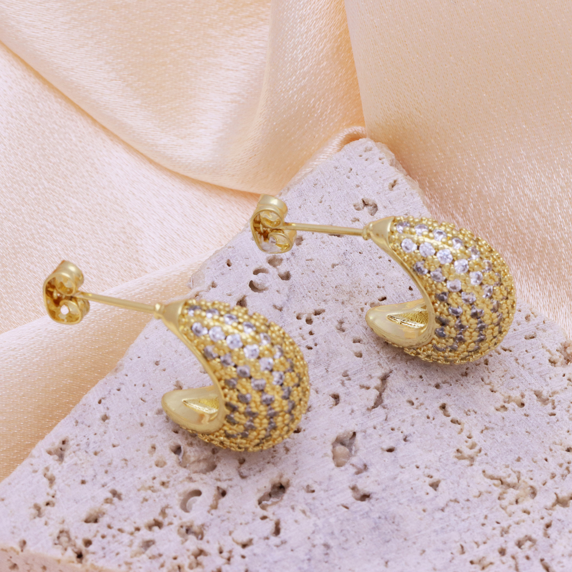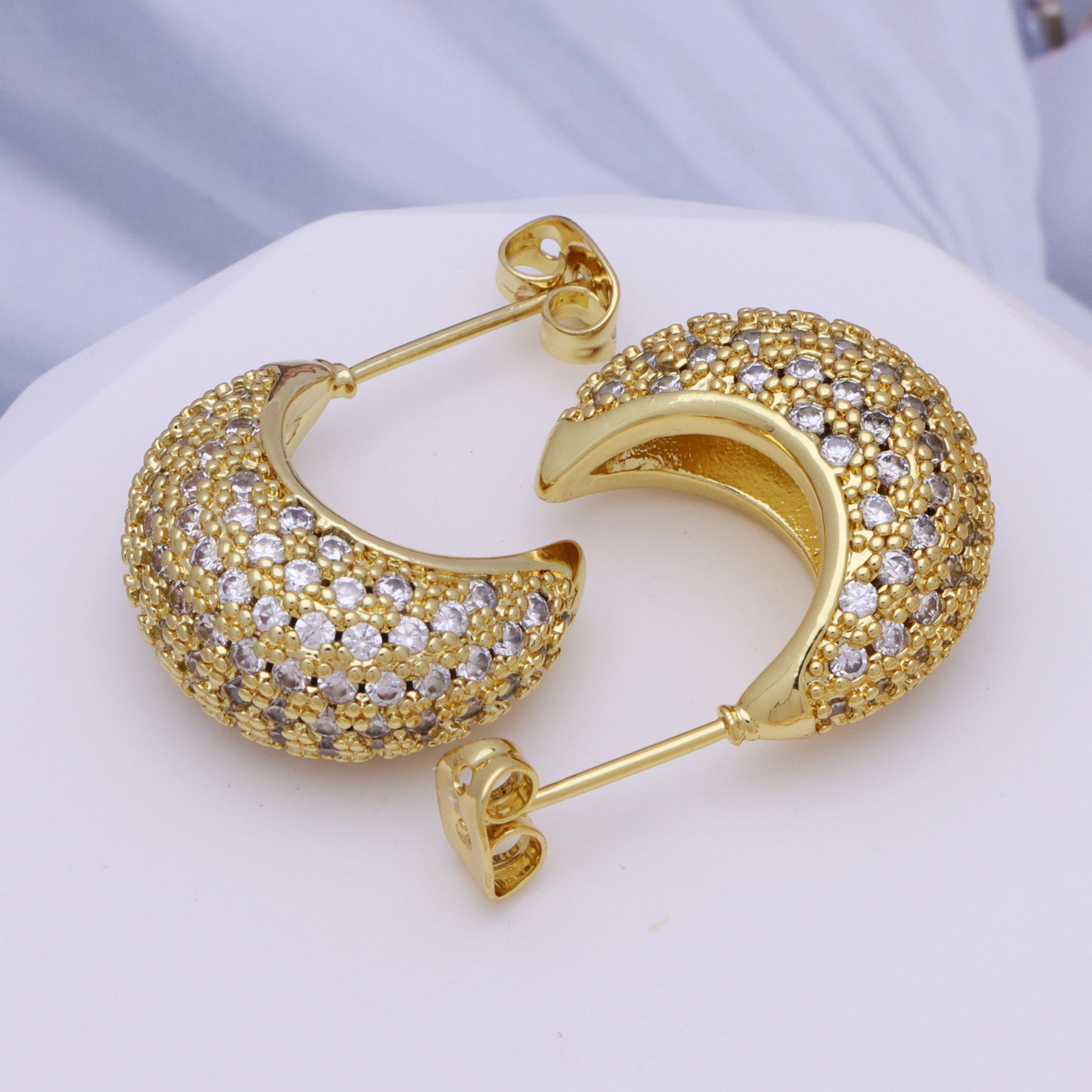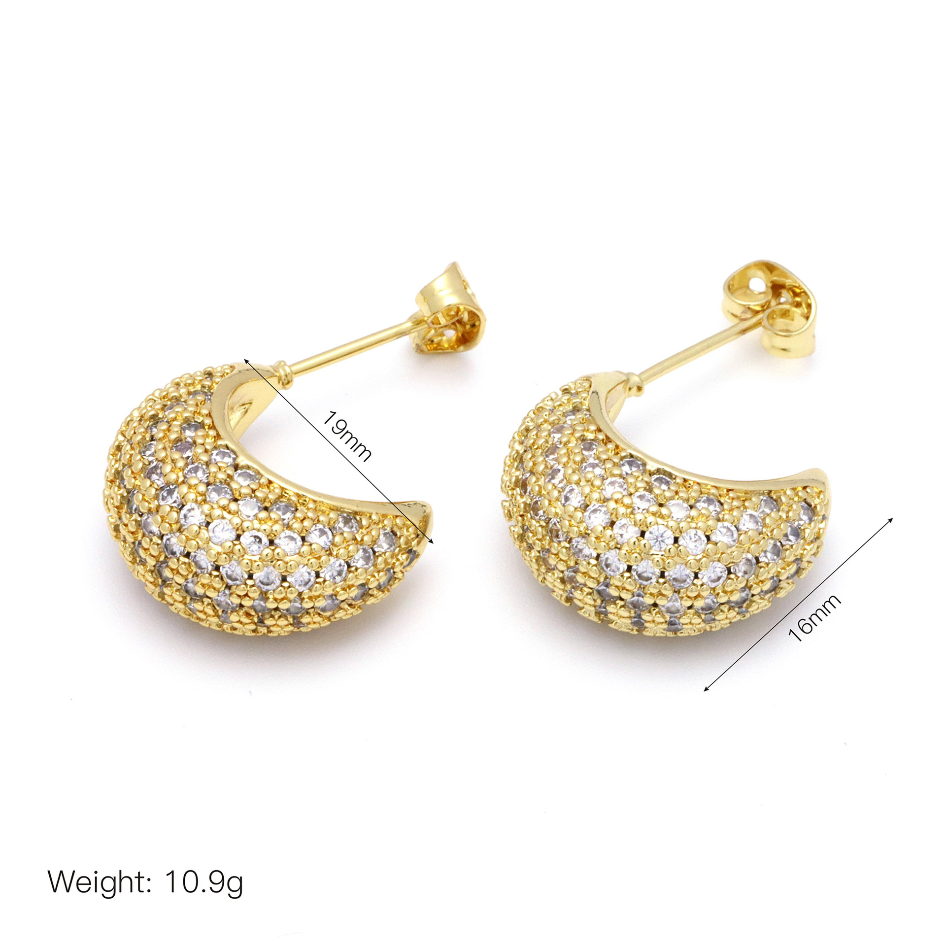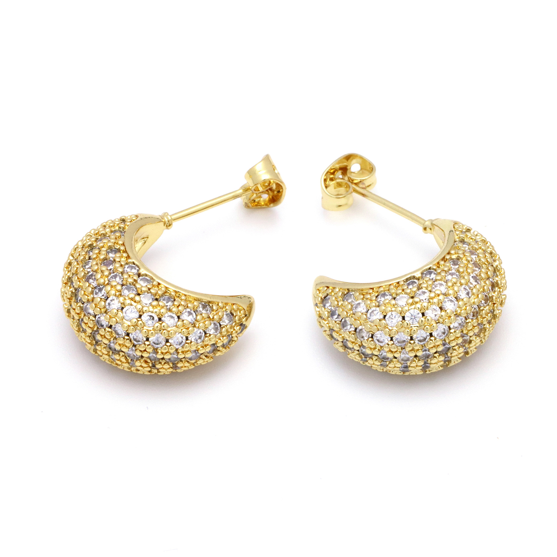 Messing Huggie Ohrreifen, mit kubischer Zirkonia, Druckguss-, für Frau, keine, frei von Nickel, Blei & Kadmium, 20.60x10.76x18.60mm, 10PaarePärchen/Tasche, verkauft von Tasche