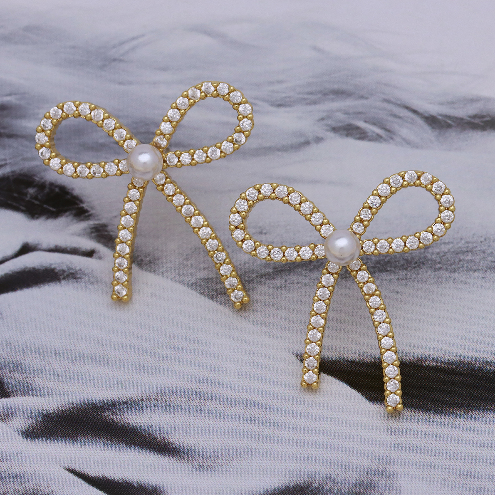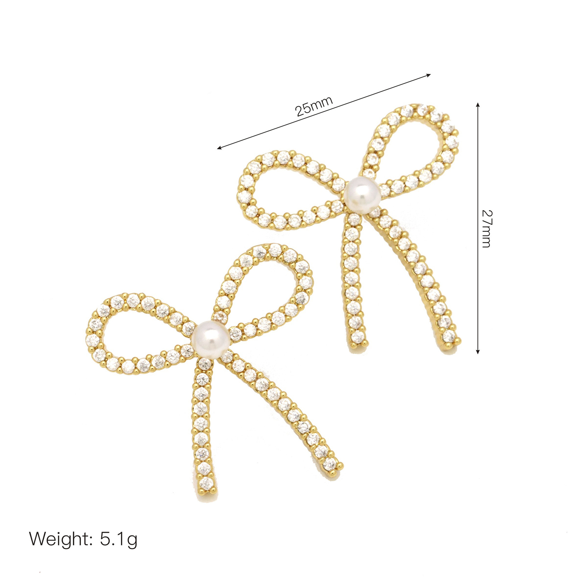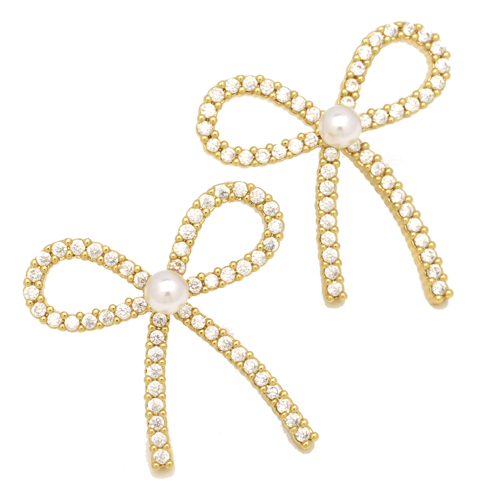 Befestiger Zirkonia Messing Ohrring, mit Kunststoff Perlen, Schleife, goldfarben plattiert, Micro pave Zirkonia & für Frau, 25x27mm, verkauft von Paar