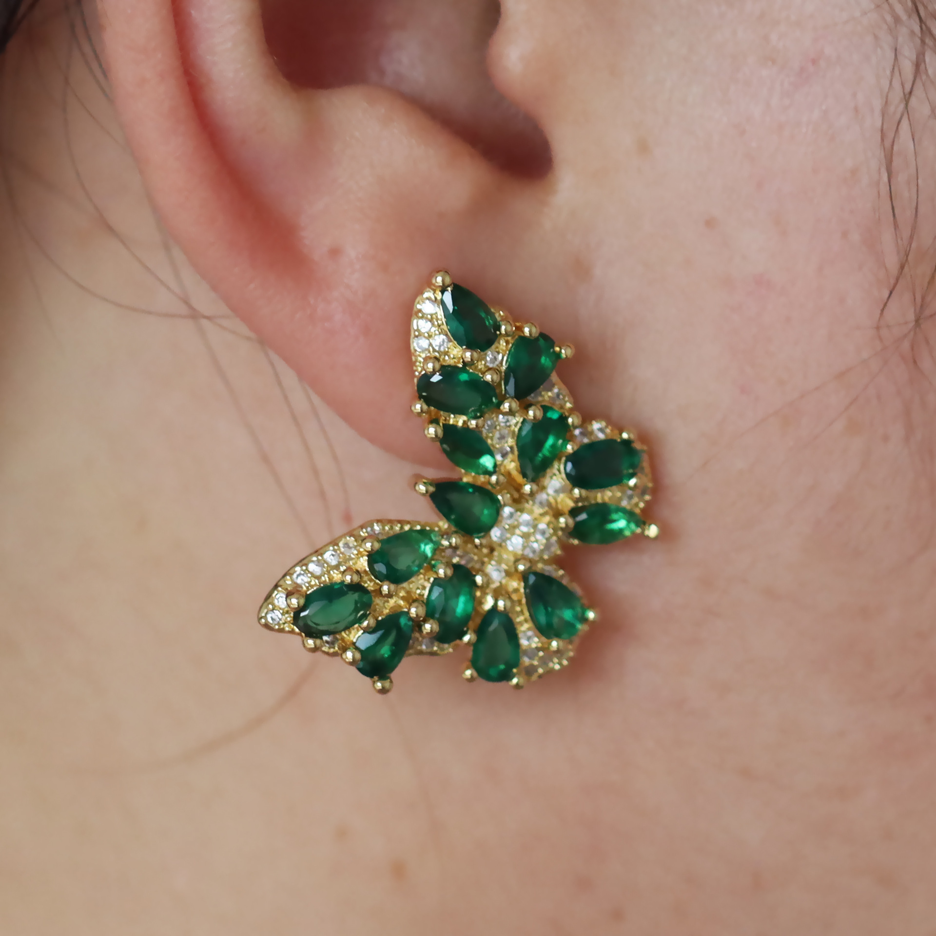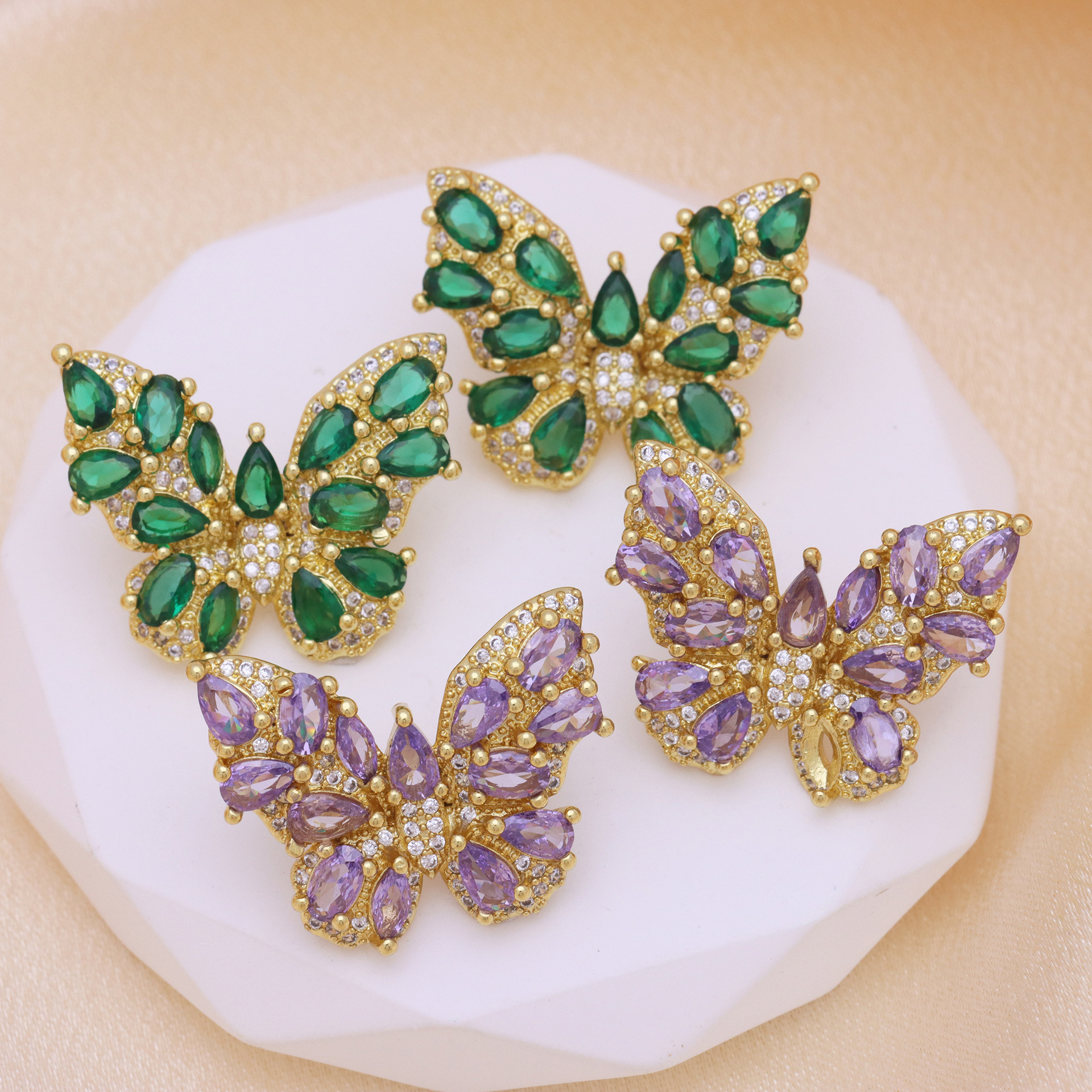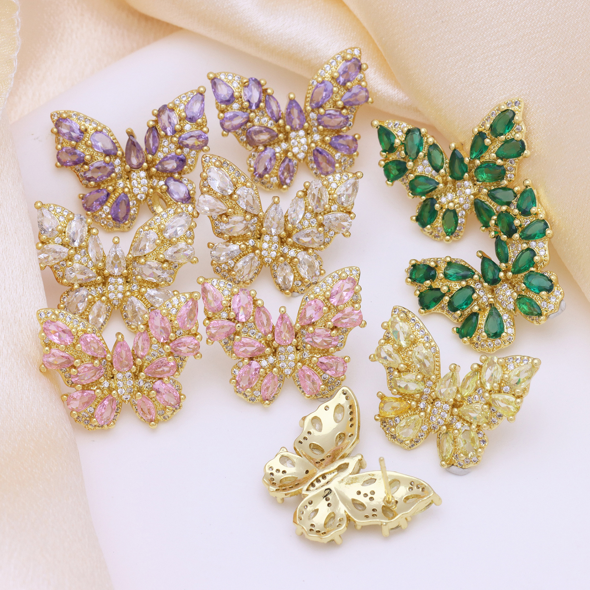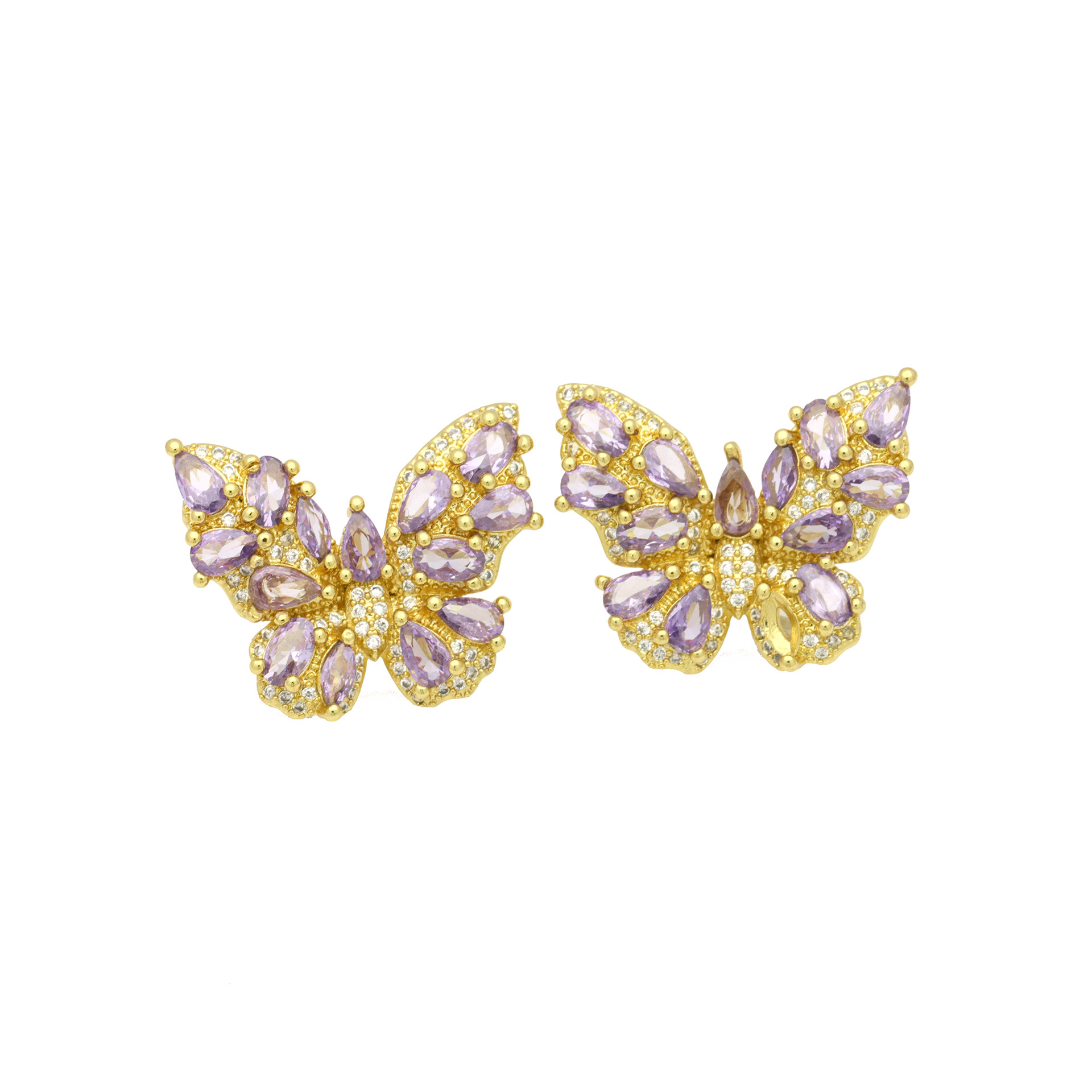 Messing Ohrstecker, Schmetterling, plattiert, Micro pave Zirkonia & für Frau, keine, 12x11.50mm, verkauft von PC