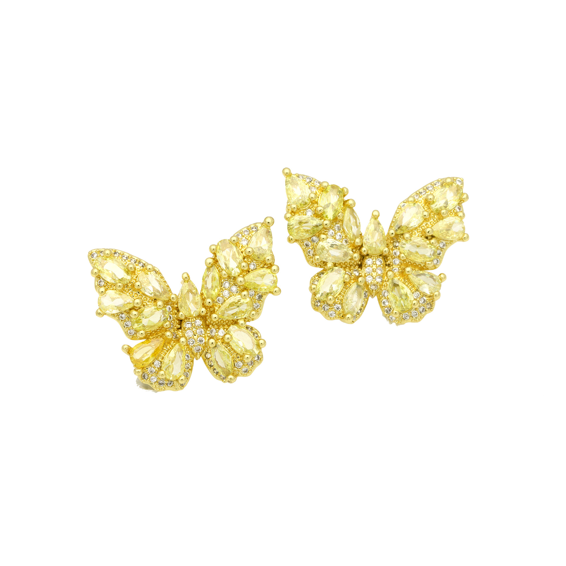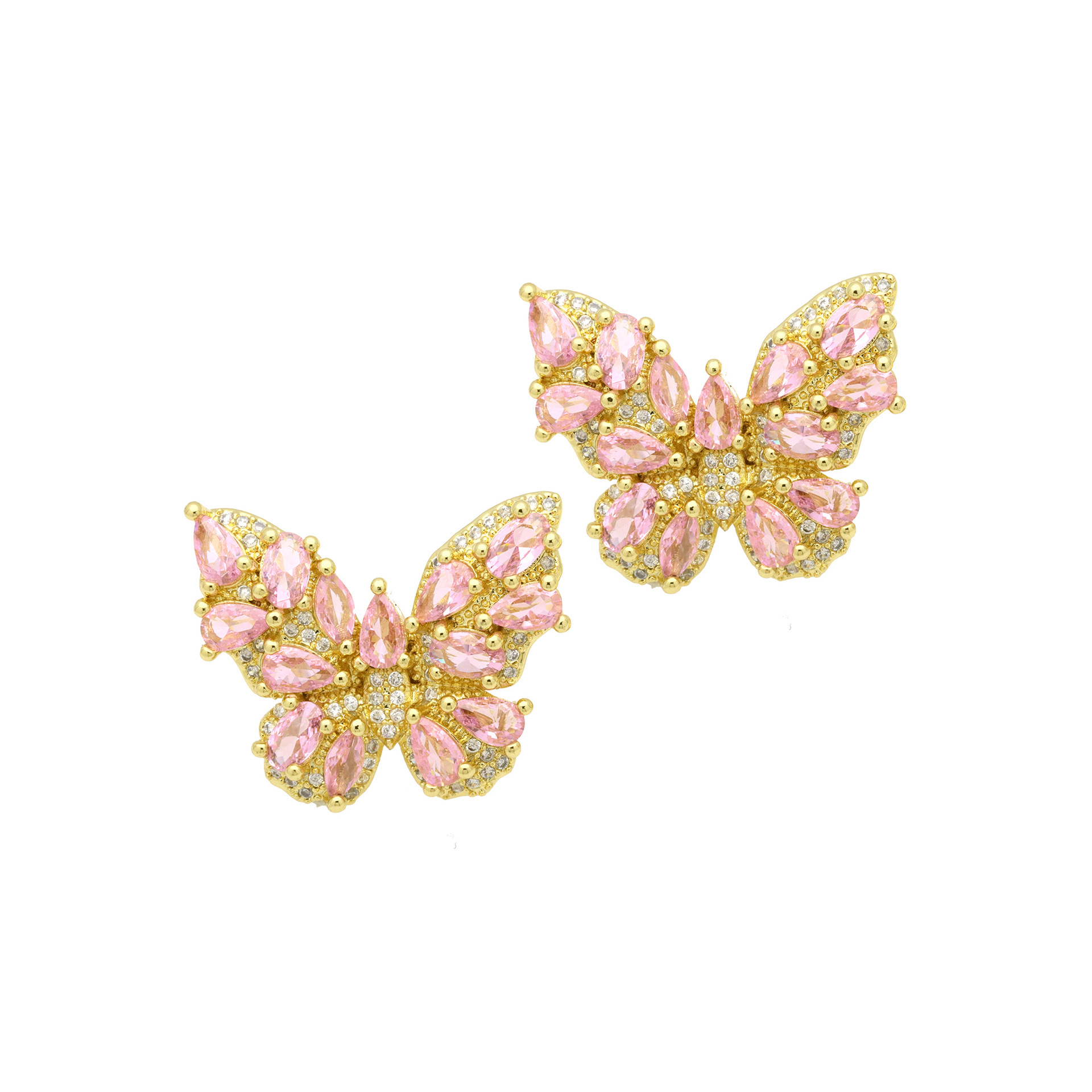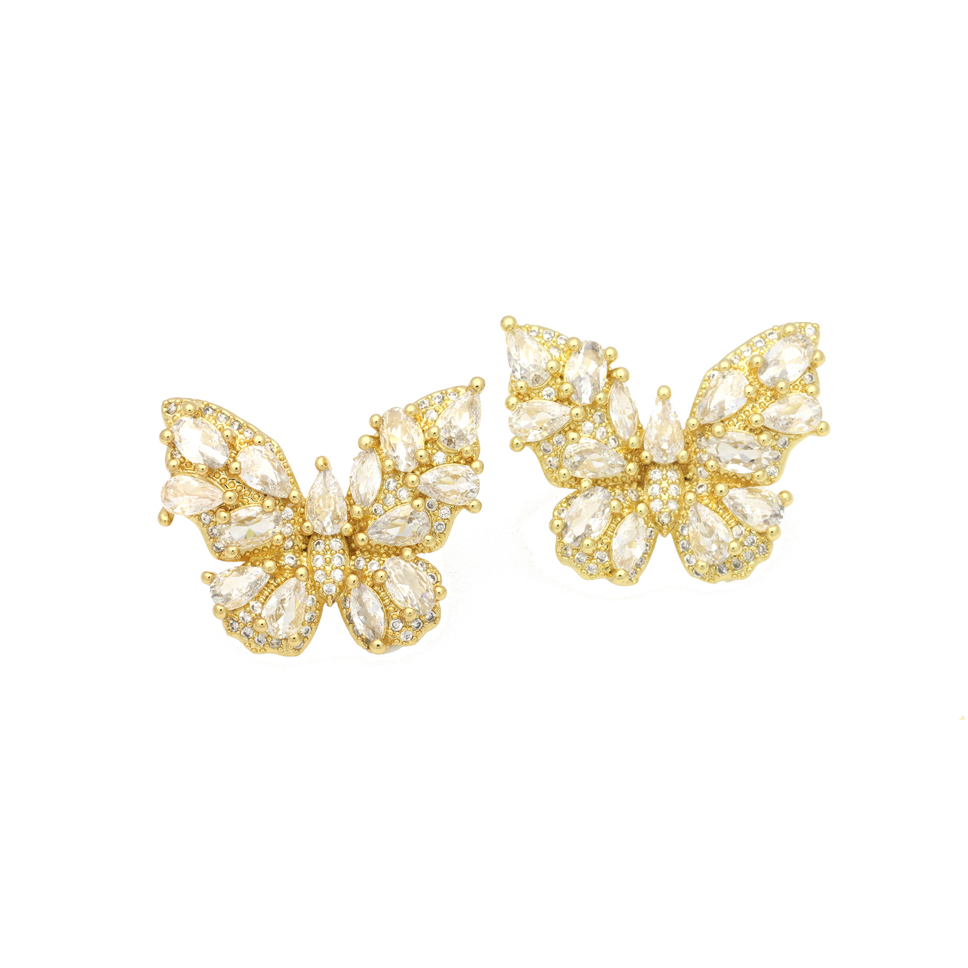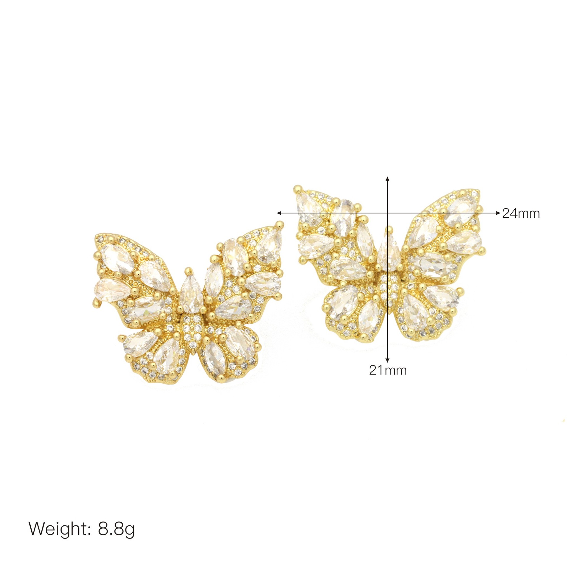 Befestiger Zirkonia Messing Ohrring, Schmetterling, goldfarben plattiert, für Frau & mit kubischem Zirkonia, keine, 24x21mm, verkauft von Paar