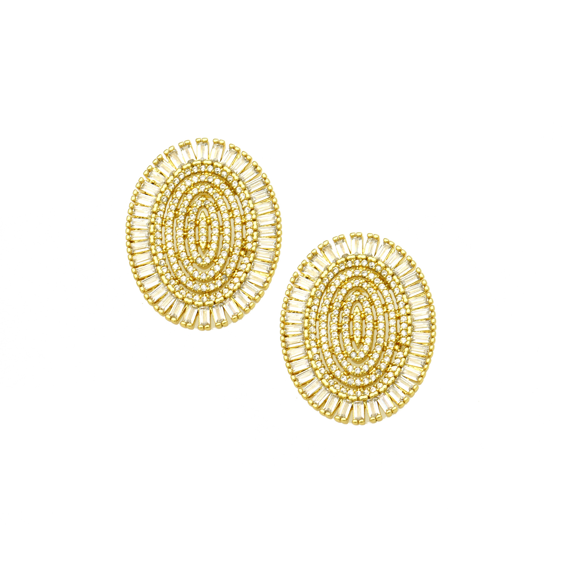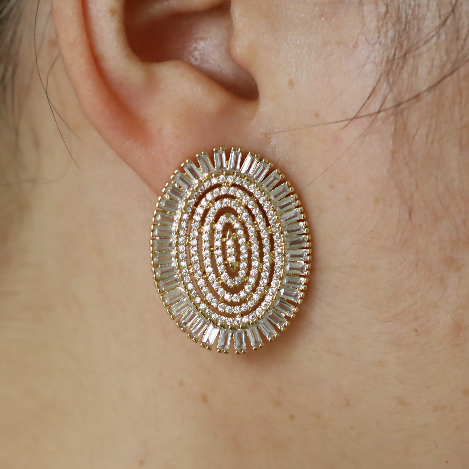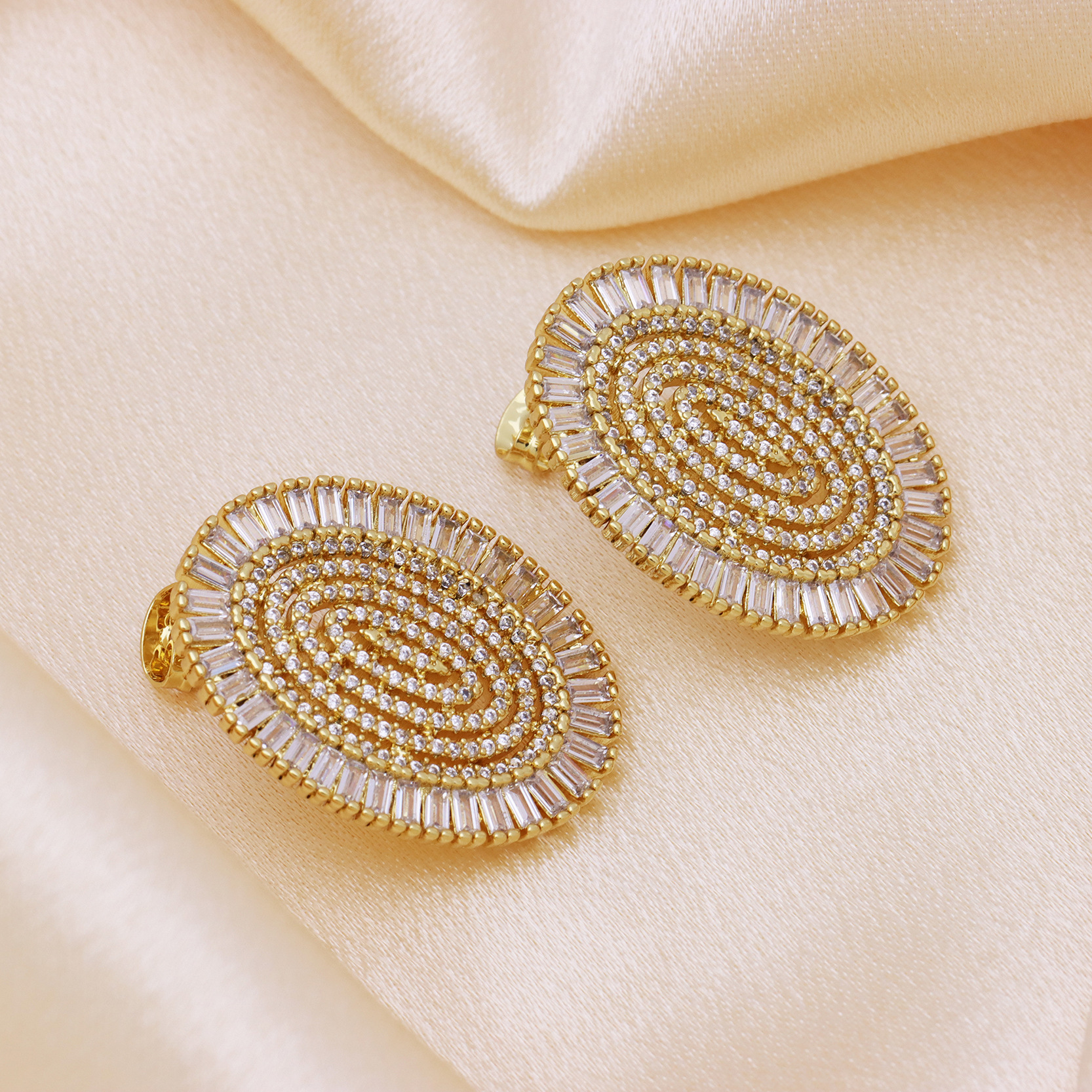 Befestiger Zirkonia Messing Ohrring, goldfarben plattiert, für Frau & mit kubischem Zirkonia, 23x30mm, verkauft von Paar