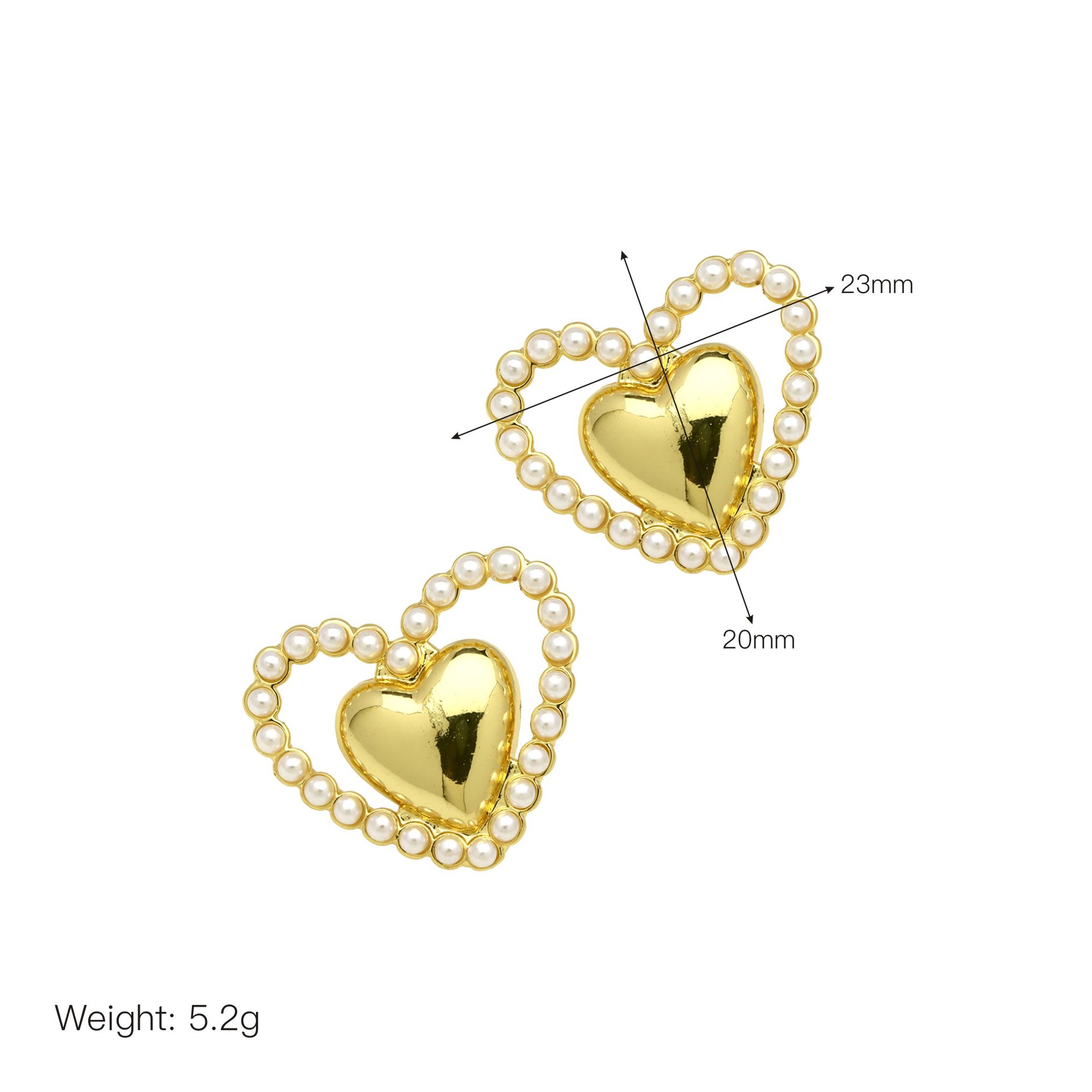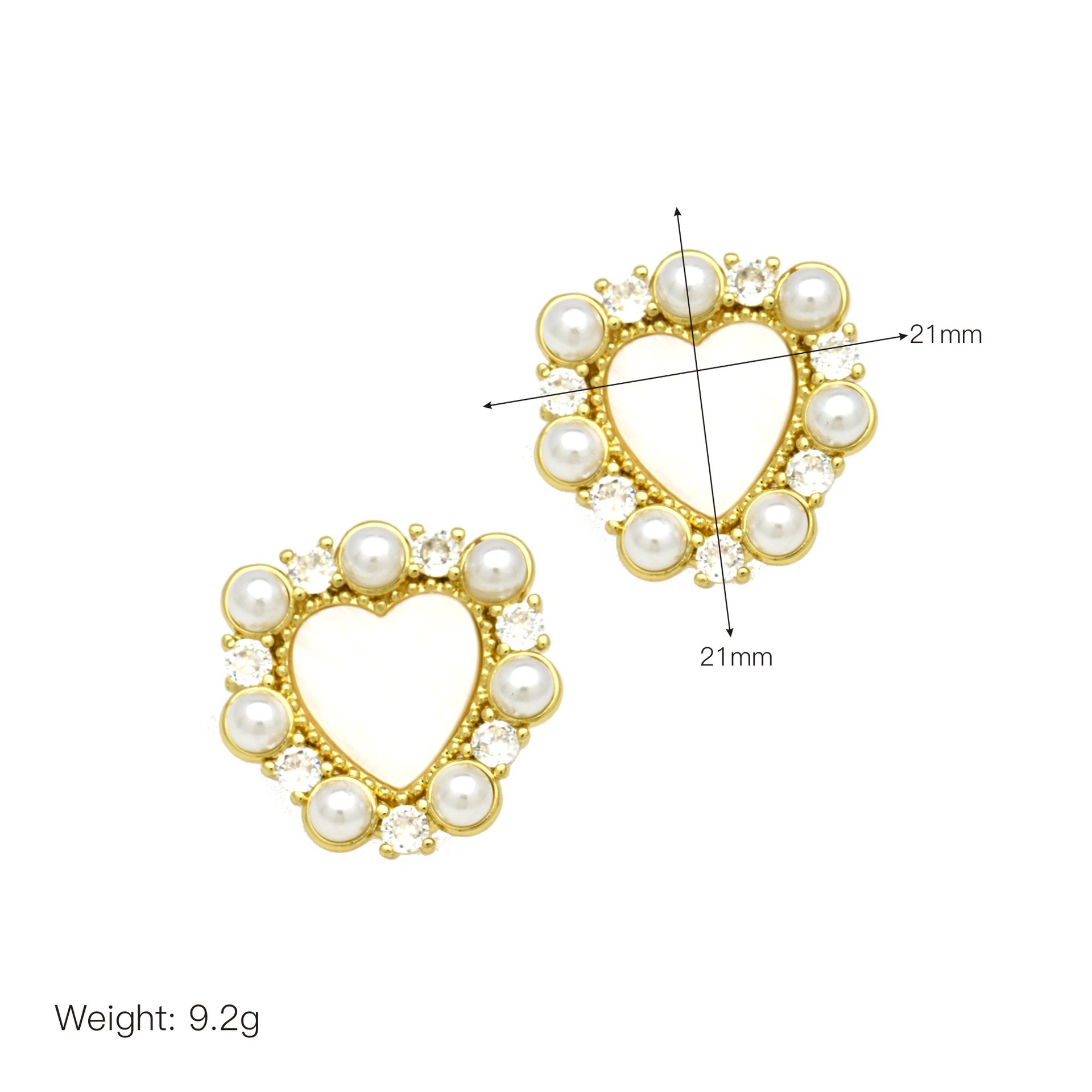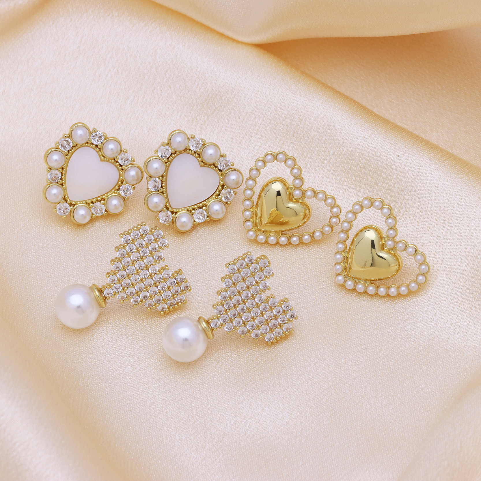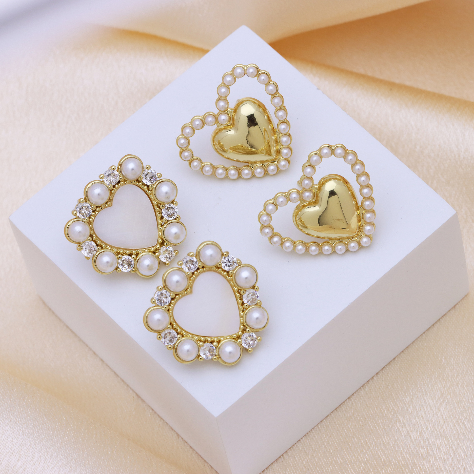 Befestiger Zirkonia Messing Ohrring, mit Kunststoff Perlen, Herz, goldfarben plattiert, verschiedene Stile für Wahl & für Frau & mit kubischem Zirkonia, keine, verkauft von Paar