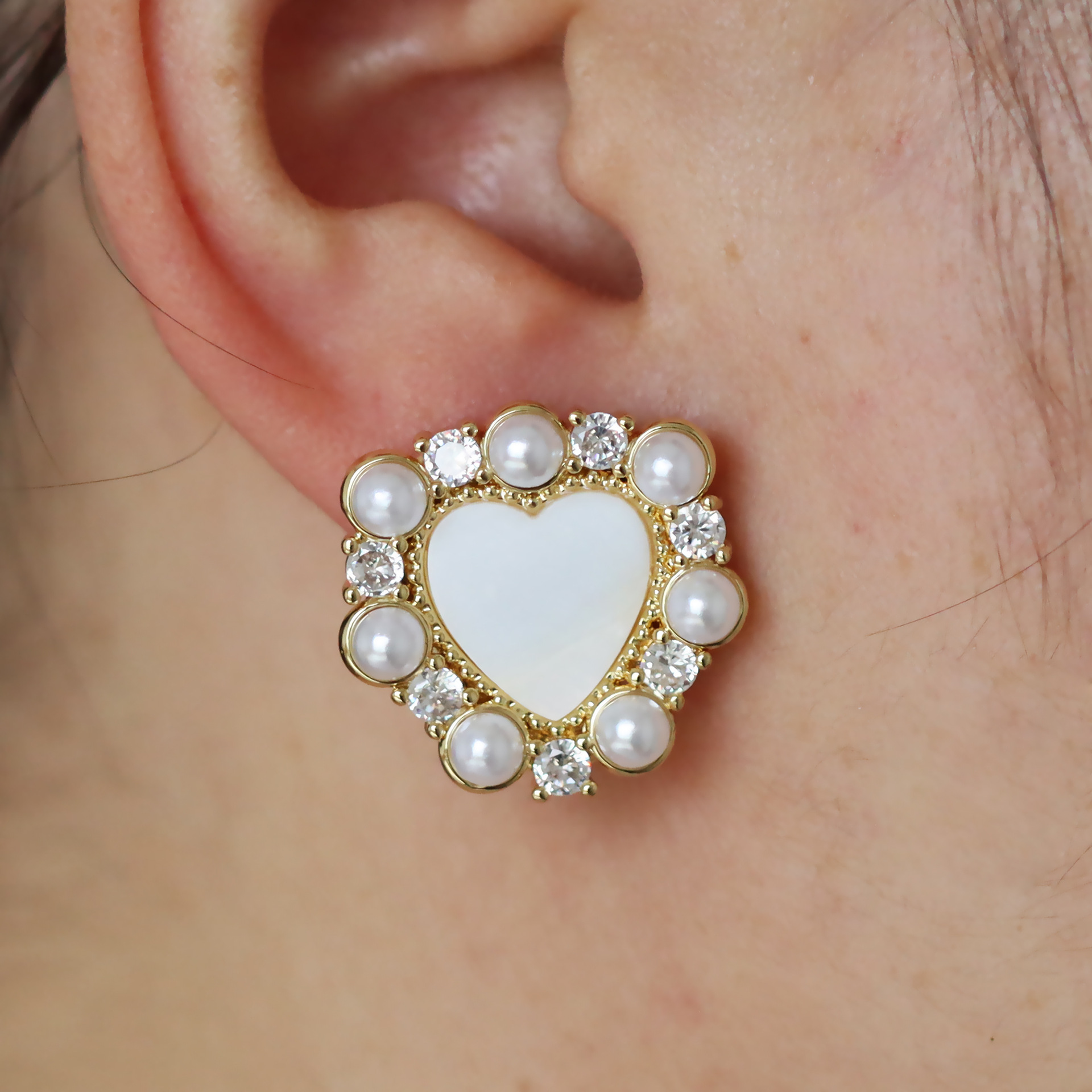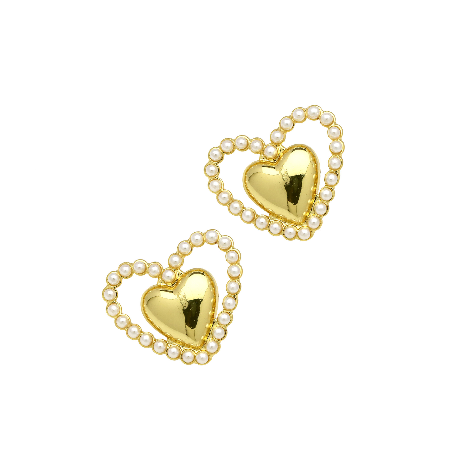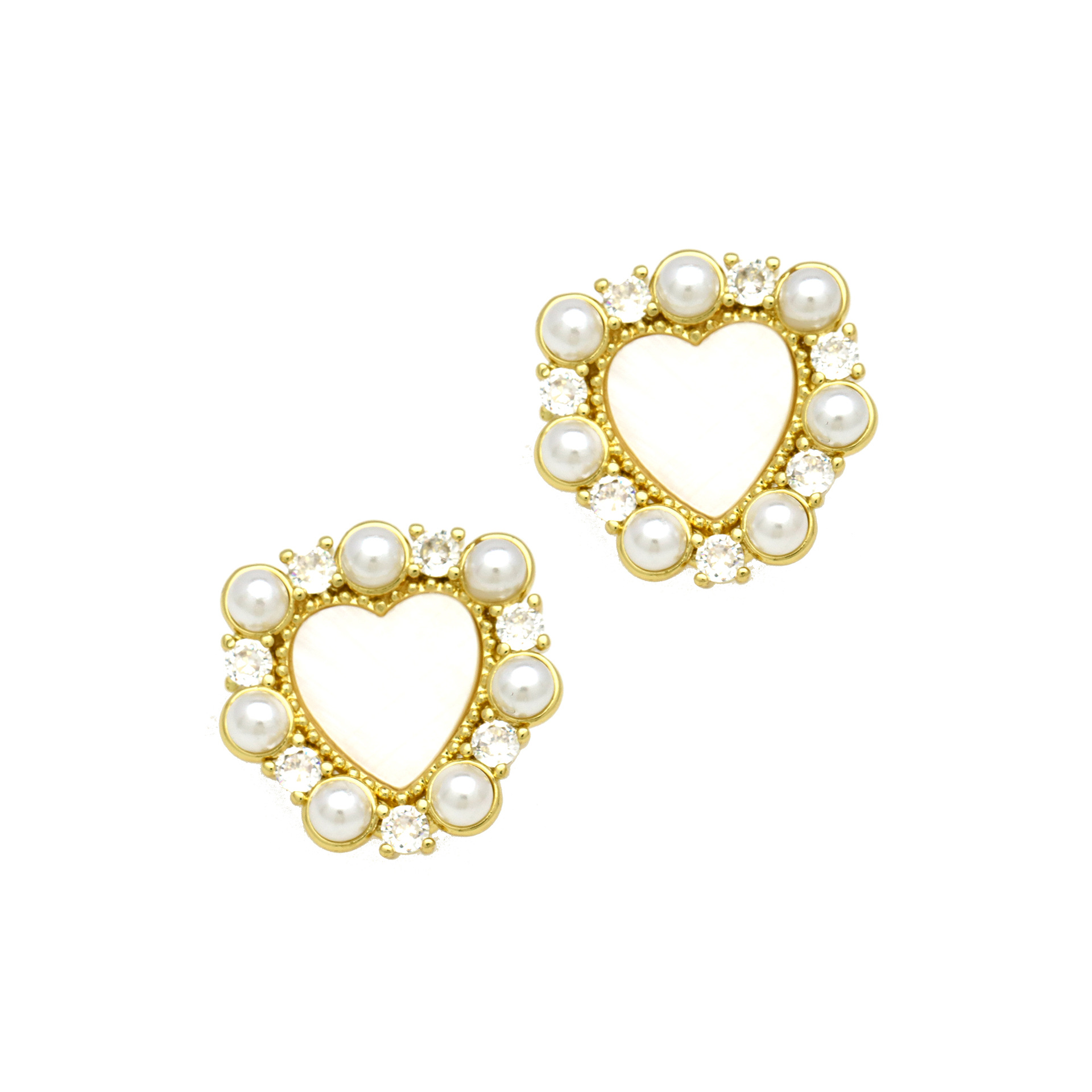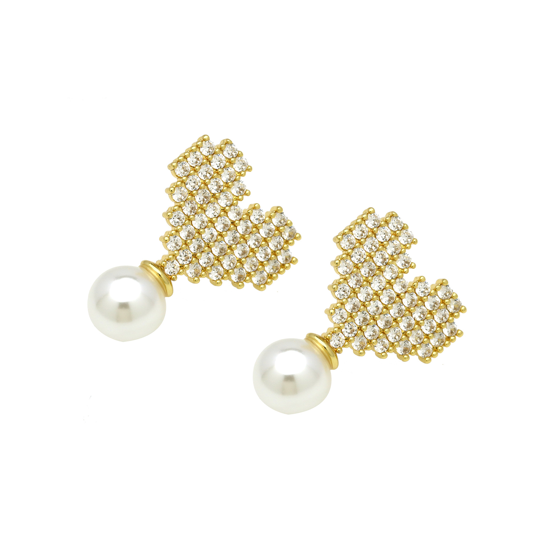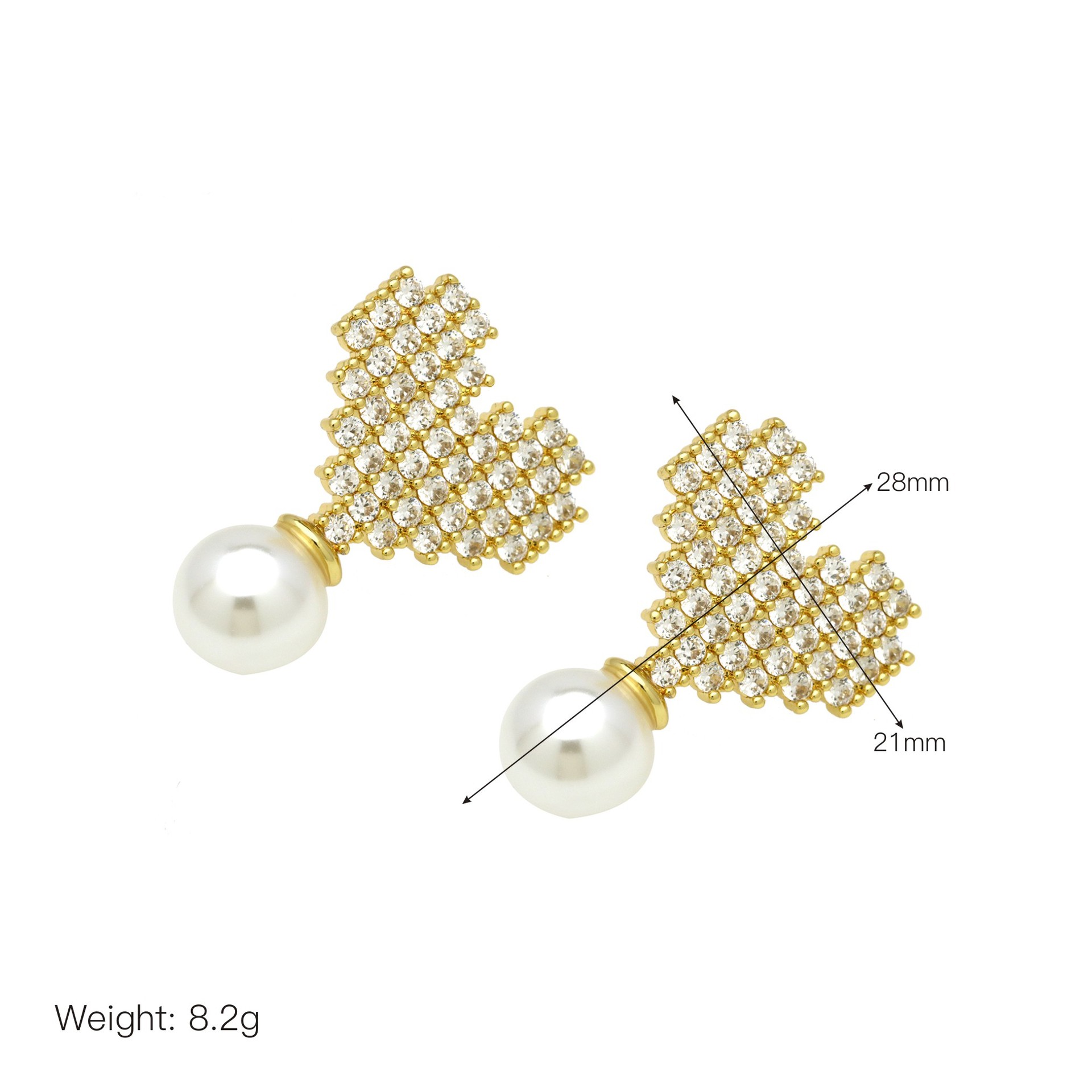 Befestiger Zirkonia Messing Ohrring, mit Kunststoff Perlen, Herz, goldfarben plattiert, verschiedene Stile für Wahl & für Frau & mit kubischem Zirkonia, keine, verkauft von Paar
