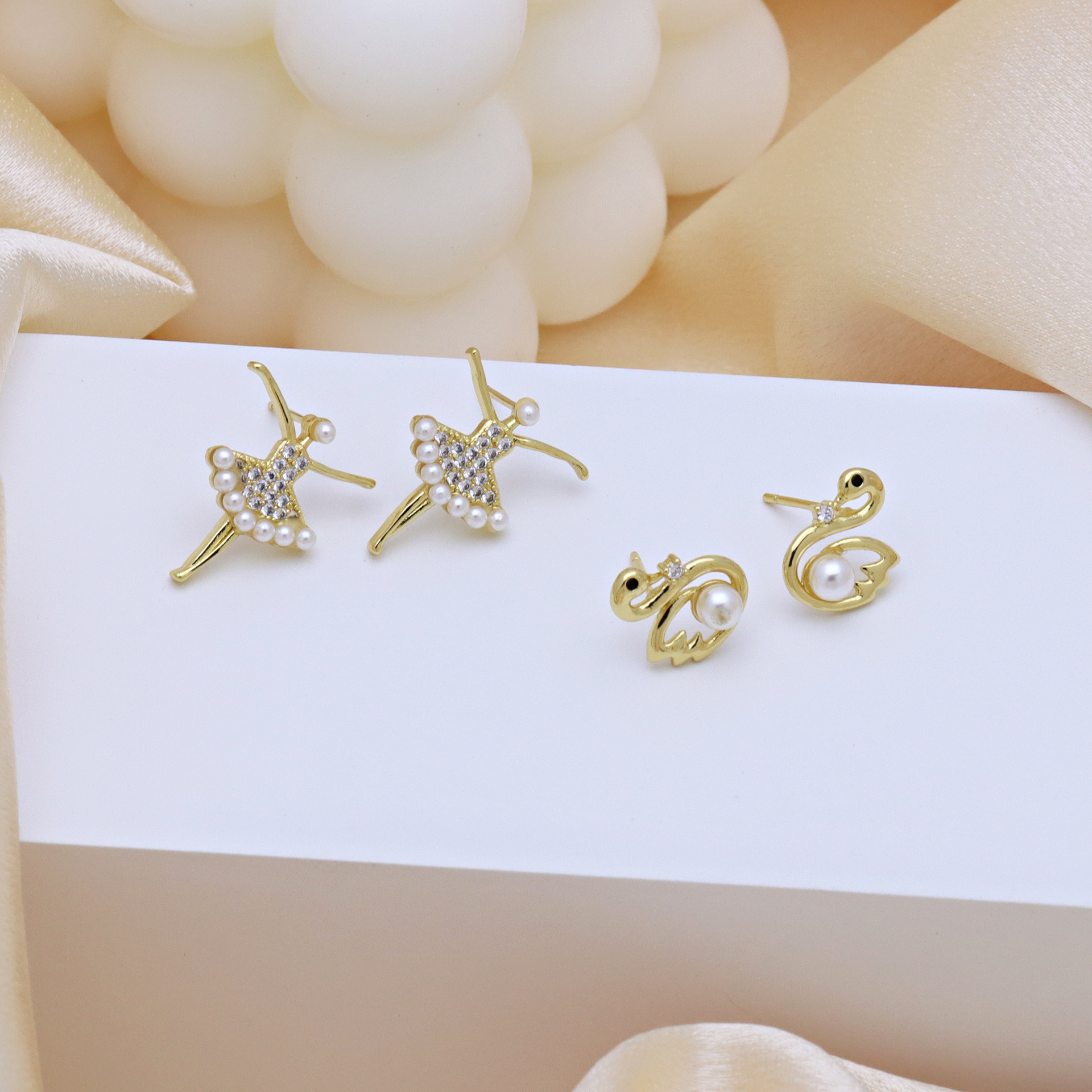 Befestiger Zirkonia Messing Ohrring, mit Kunststoff Perlen, goldfarben plattiert, verschiedene Stile für Wahl & Micro pave Zirkonia & für Frau, keine, verkauft von Paar