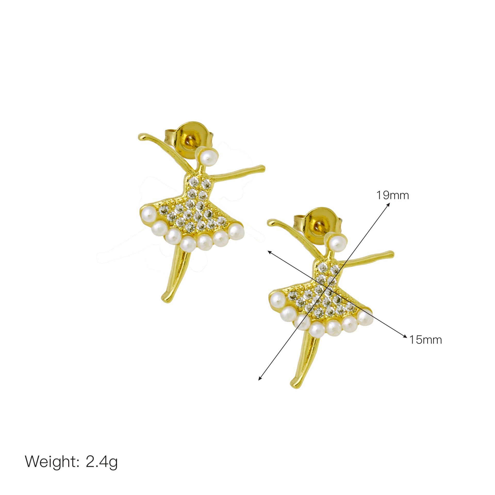 Befestiger Zirkonia Messing Ohrring, mit Kunststoff Perlen, plattiert, Micro pave Zirkonia & für Frau, keine, 17x15mm, verkauft von Paar