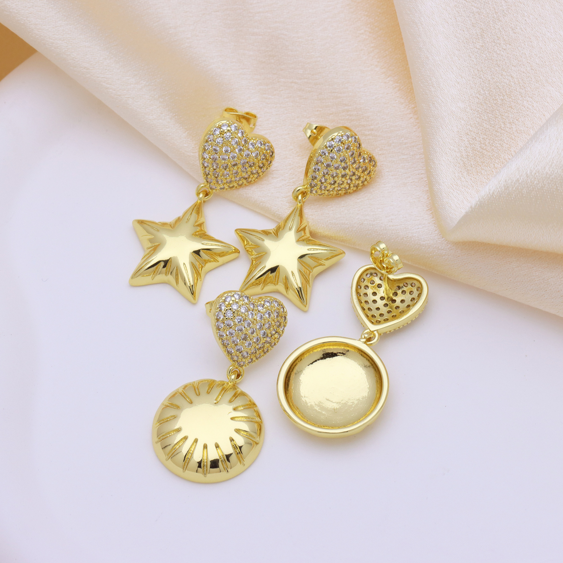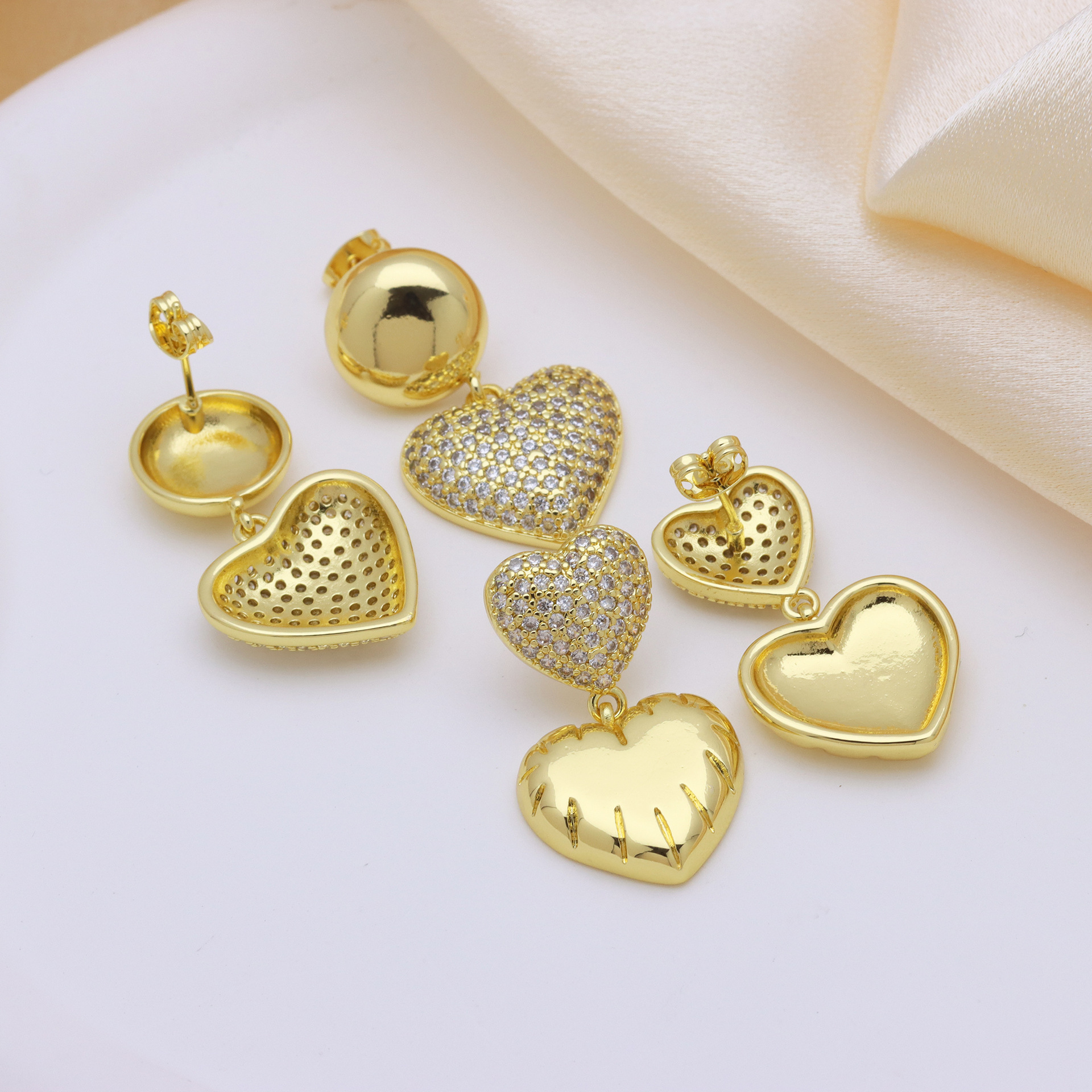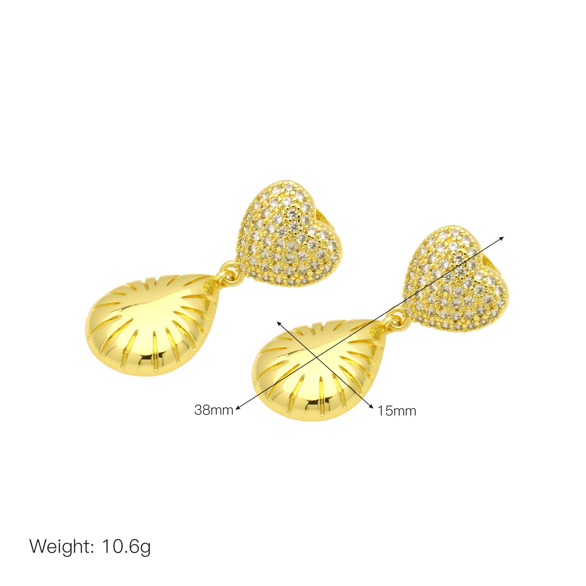 Befestiger Zirkonia Messing Ohrring, plattiert, Modeschmuck & Micro pave Zirkonia, keine, frei von Nickel, Blei & Kadmium, 70x50x10mm, verkauft von Paar