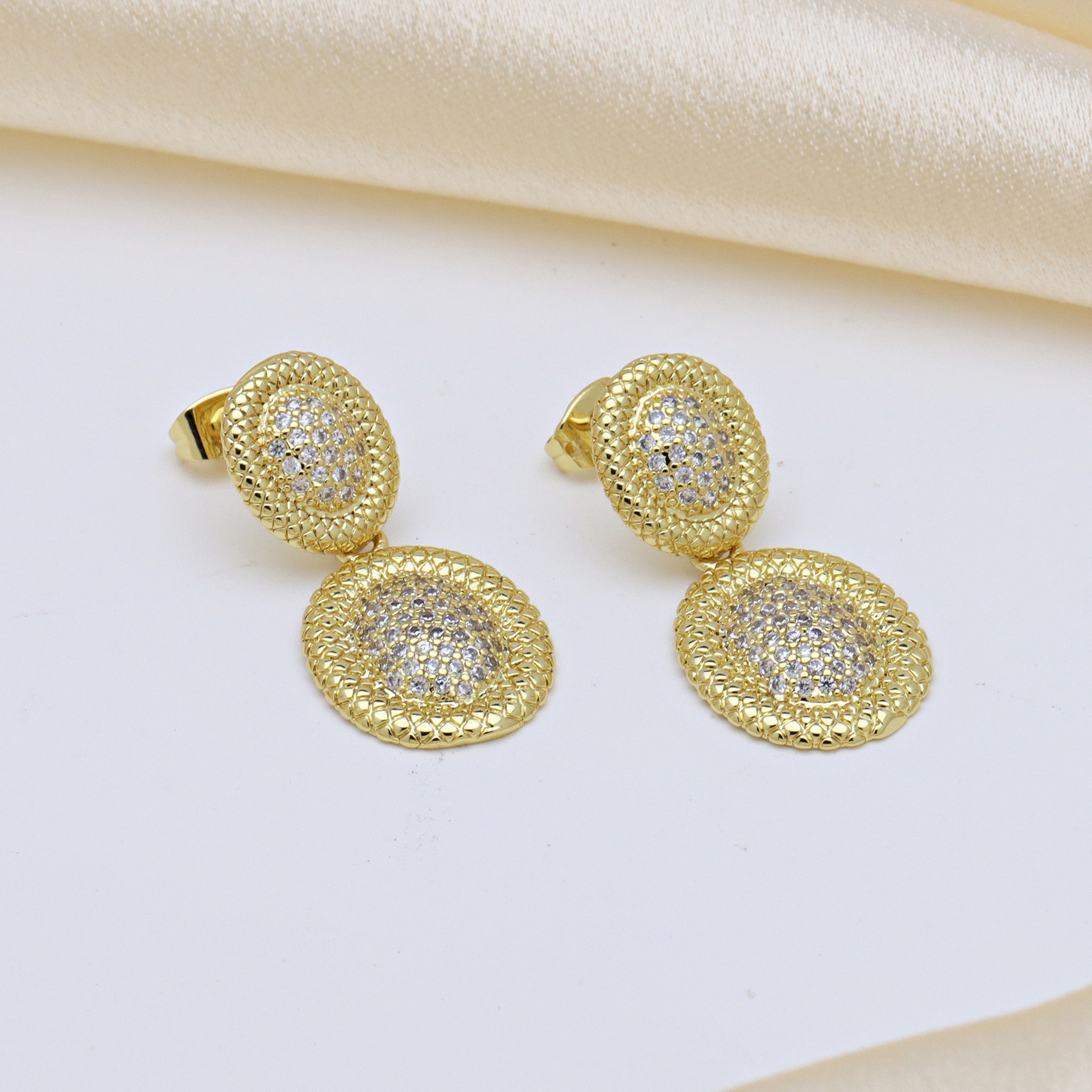 Messing Tropfen Ohrring, Kreisring, plattiert, Micro pave Zirkonia & für Frau, keine, verkauft von Paar