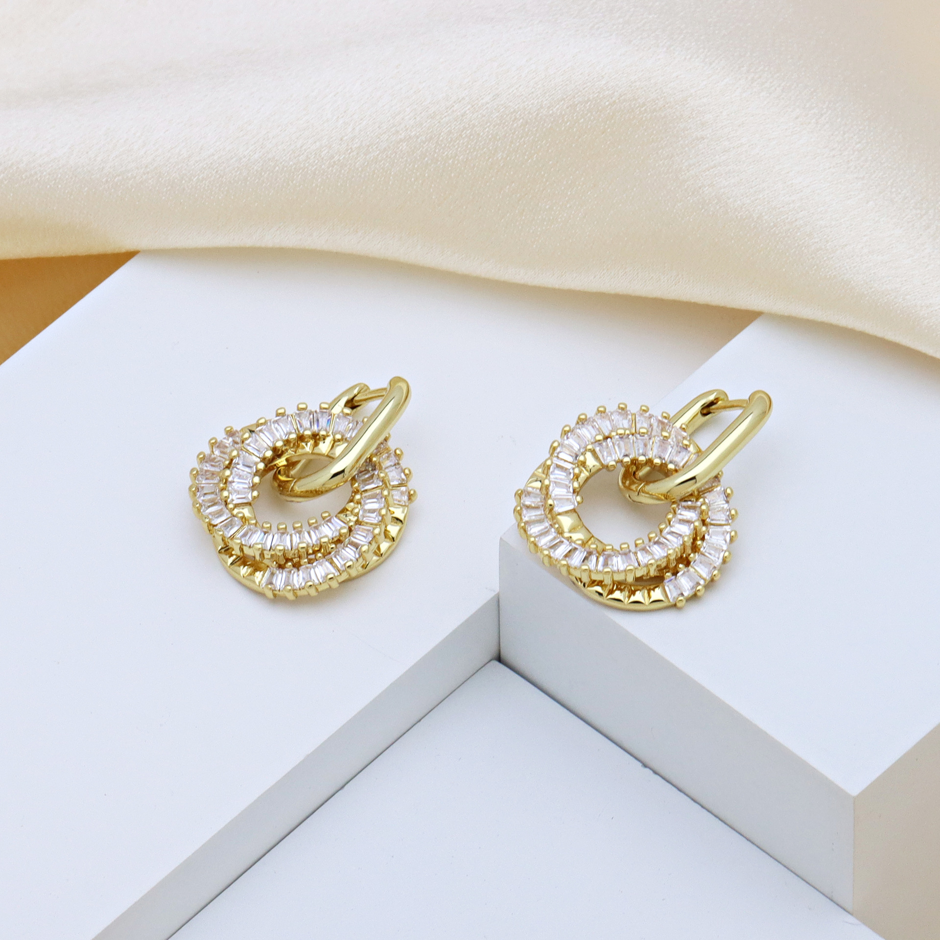Messing Tropfen Ohrring, Kreisring, plattiert, Micro pave Zirkonia & für Frau, keine, verkauft von Paar