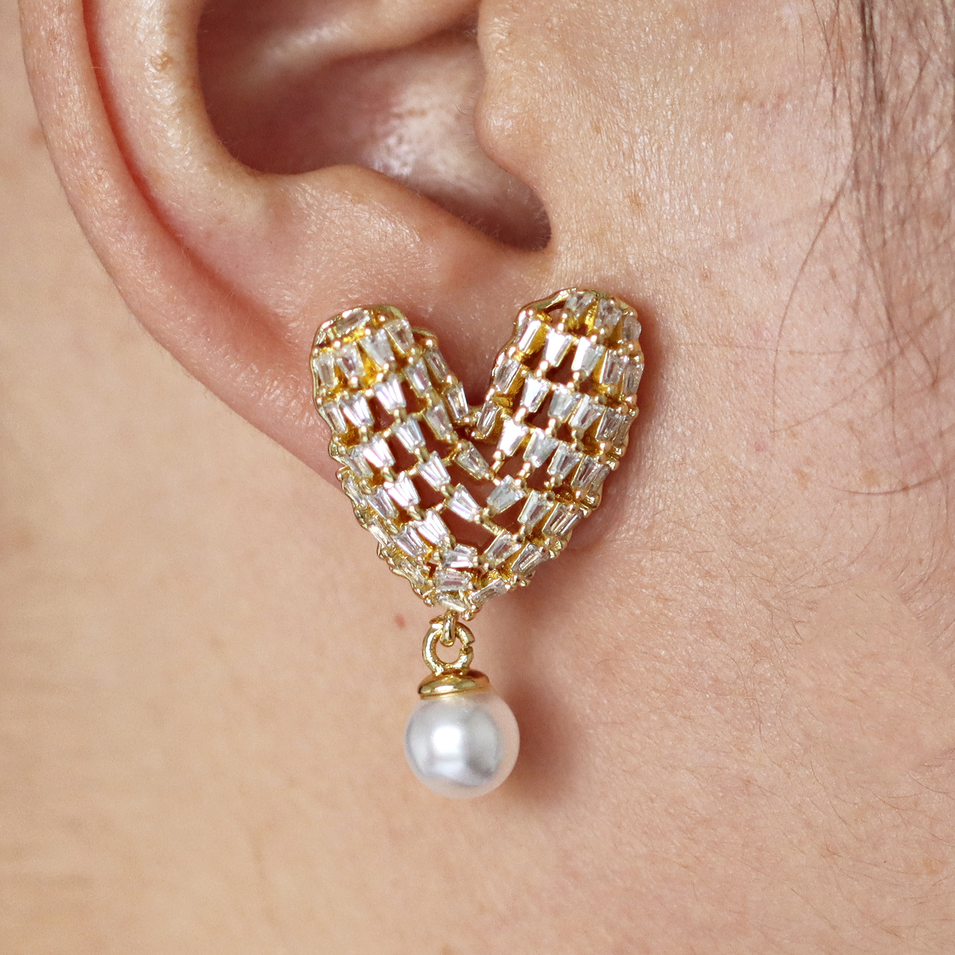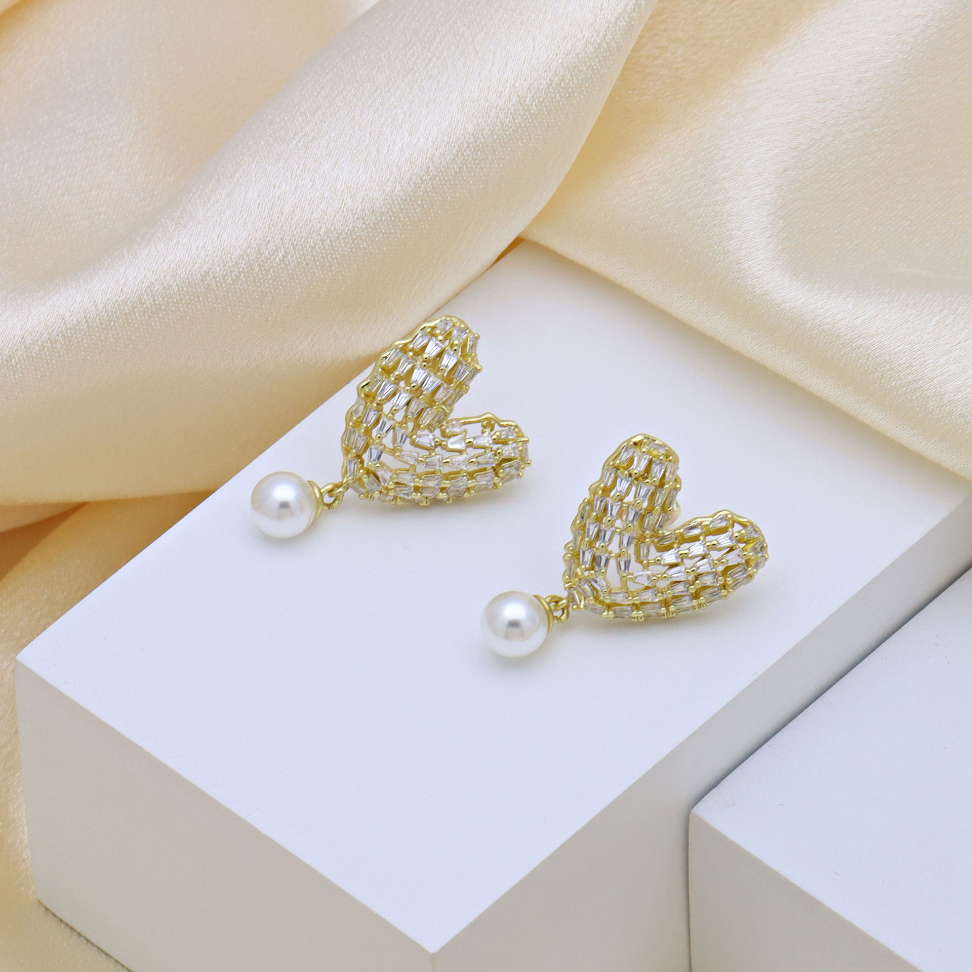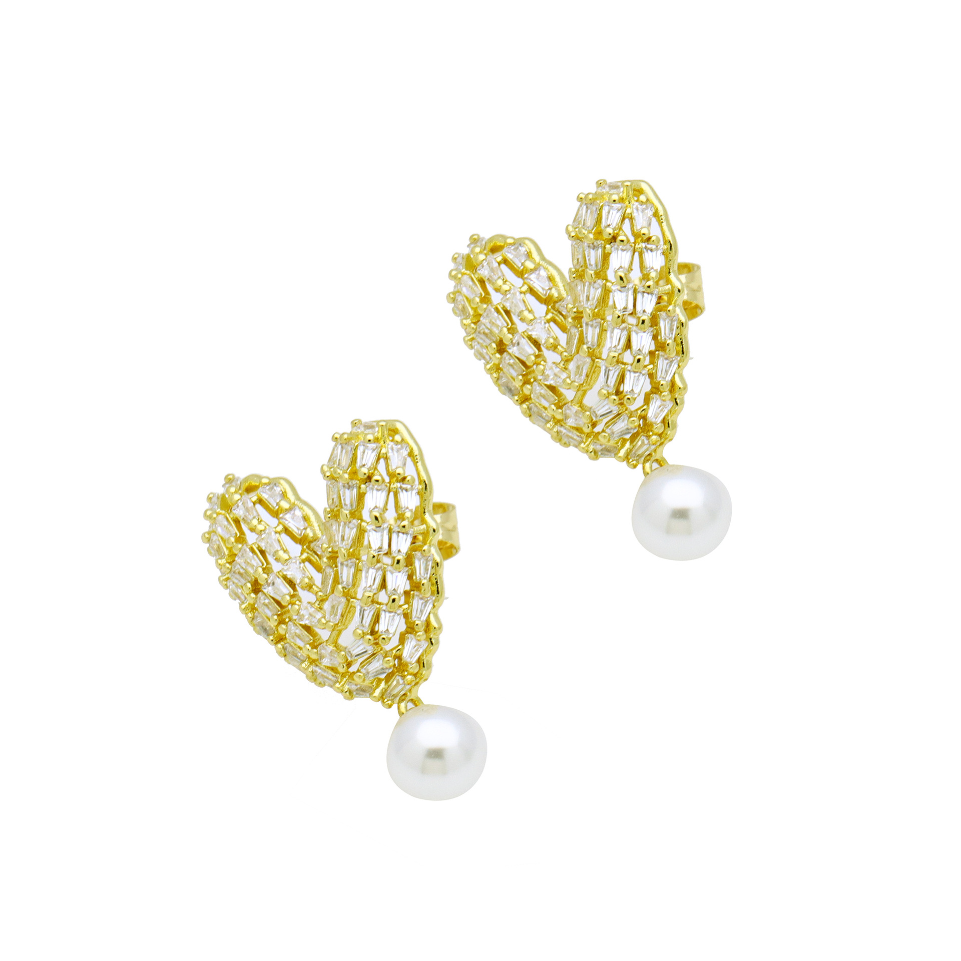 Befestiger Zirkonia Messing Ohrring, plattiert, Modeschmuck & Micro pave Zirkonia, keine, frei von Nickel, Blei & Kadmium, 70x50x10mm, verkauft von Paar
