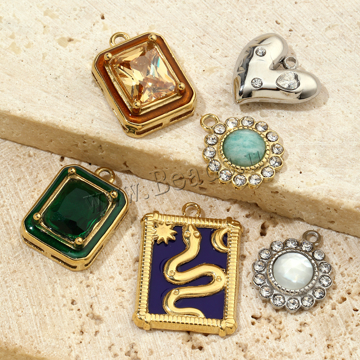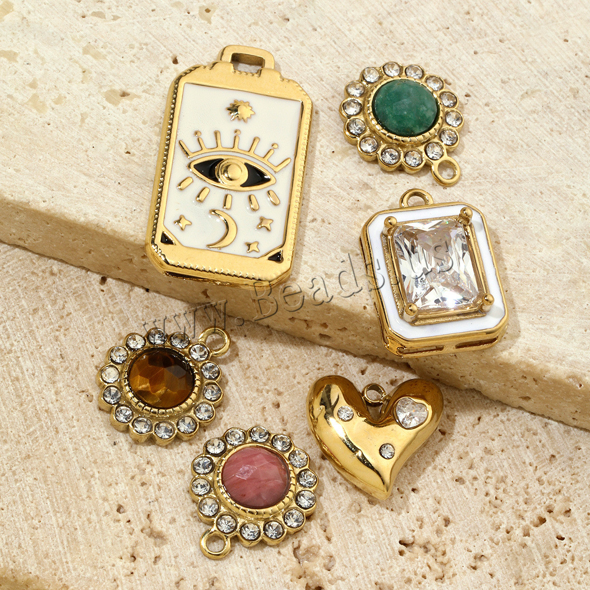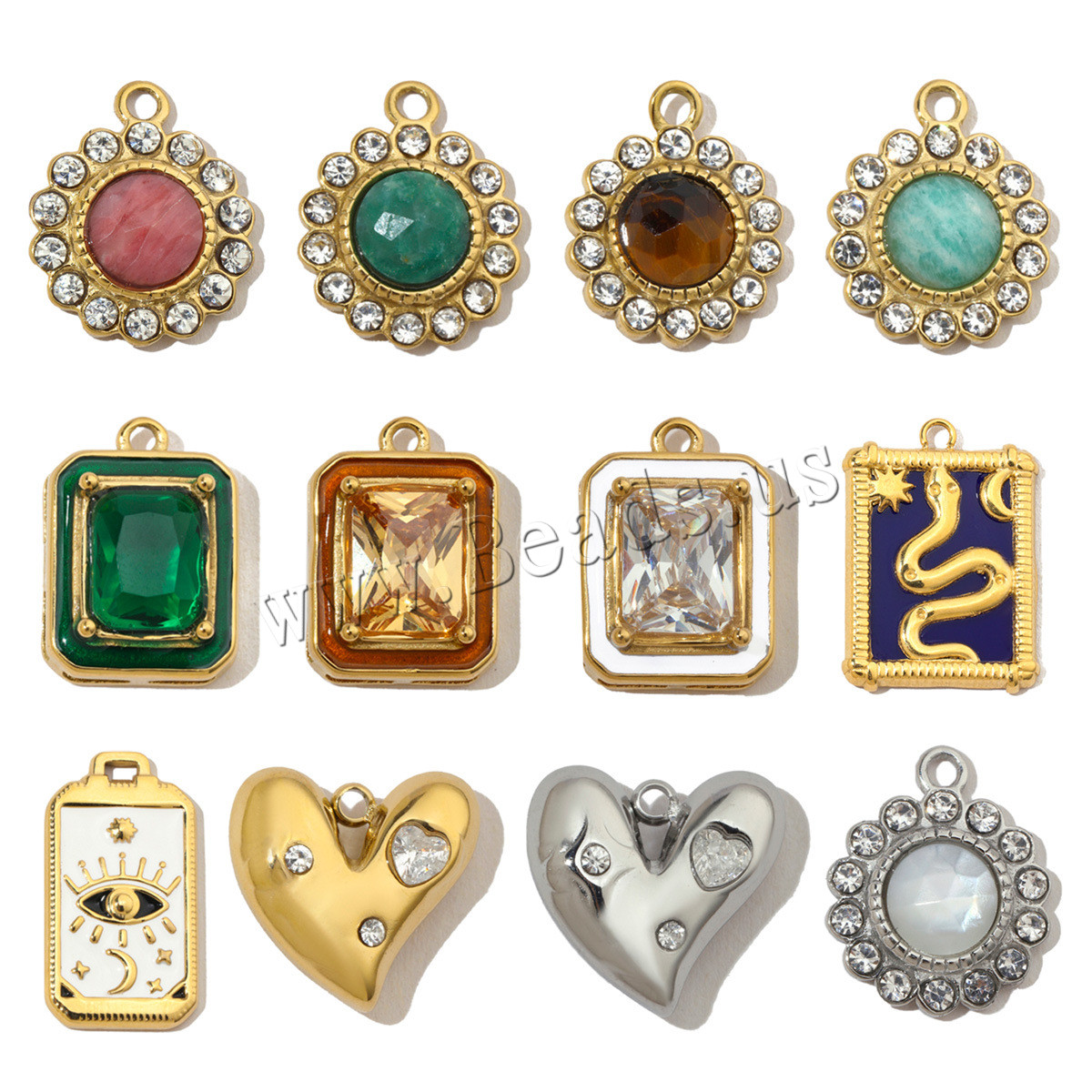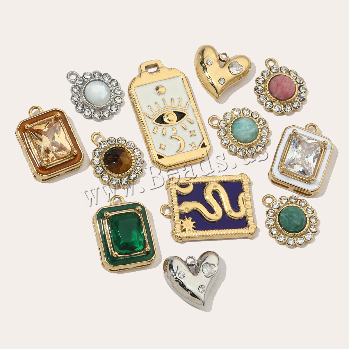 Edelstein Anhänger Schmuck, 304 Edelstahl, mit kubischer Zirkonia & Edelstein, Unterschiedliche Form zur Auswahl & DIY & Emaille & mit Strass, keine, 3PCs/Tasche, verkauft von Tasche