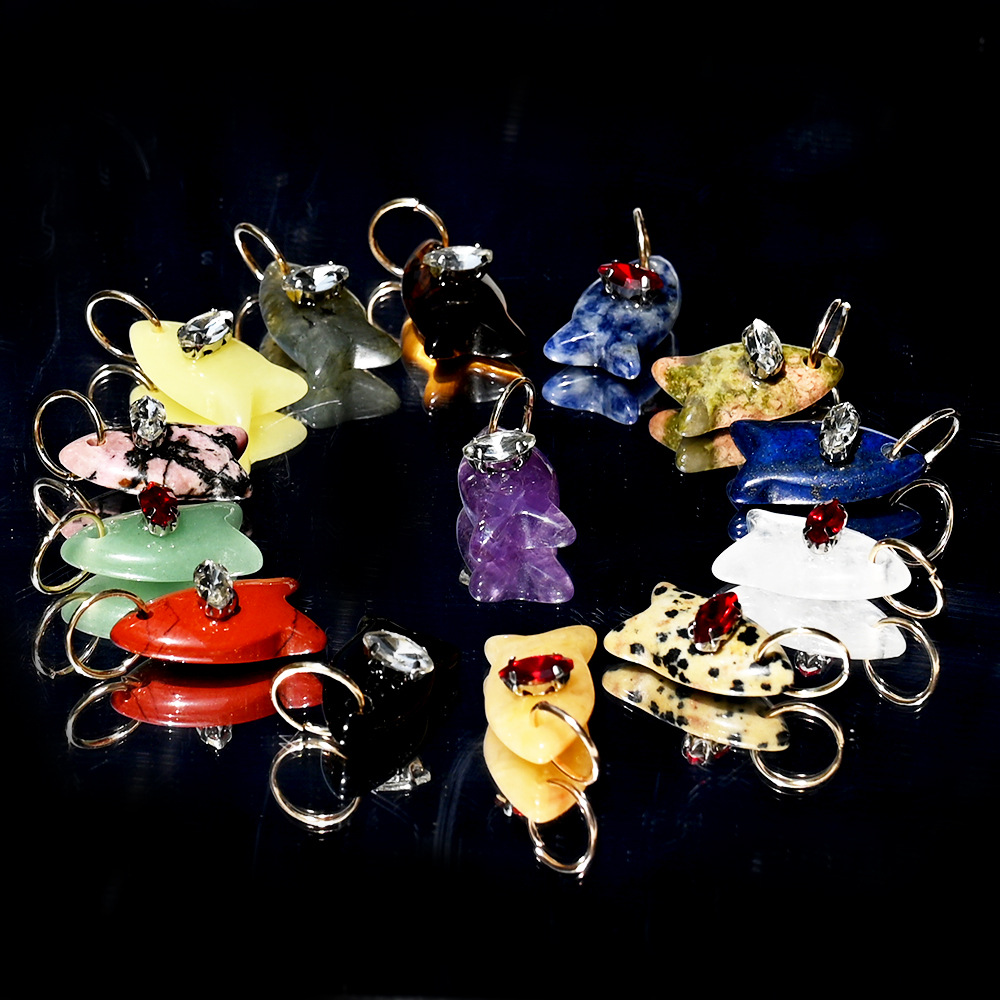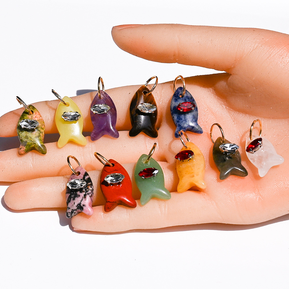 Edelstein Anhänger Schmuck, Naturstein, Fisch, DIY & verschiedenen Materialien für die Wahl & mit Strass, keine, frei von Nickel, Blei & Kadmium, 22x12x6mm, verkauft von PC