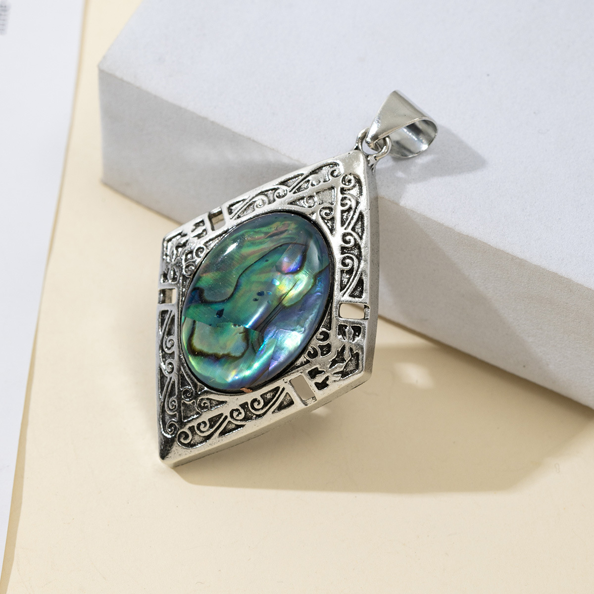 Edelstein Anhänger Schmuck, 304 Edelstahl, mit Edelstein & Muschel, Rhombus, plattiert, DIY, keine, verkauft von PC