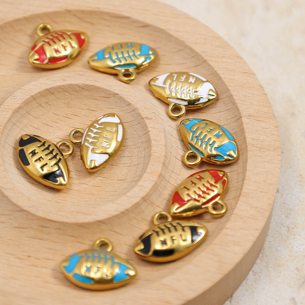 Edelstahl Schmuck Anhänger, 304 Edelstahl, Rugby-Ball, goldfarben plattiert, DIY & Emaille, keine, 10PCs/Tasche, verkauft von Tasche