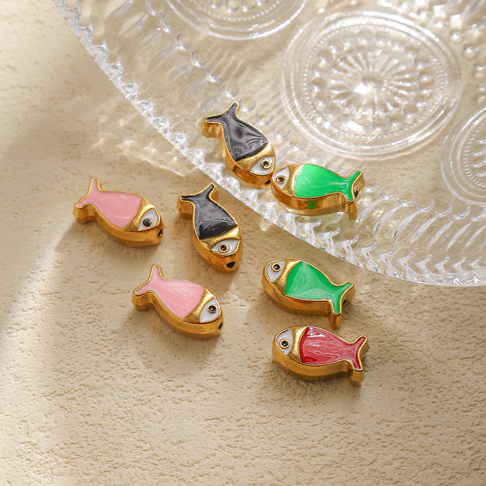 Edelstahl-Beads, 304 Edelstahl, Fisch, goldfarben plattiert, DIY & Emaille, keine, 10PCs/Tasche, verkauft von Tasche