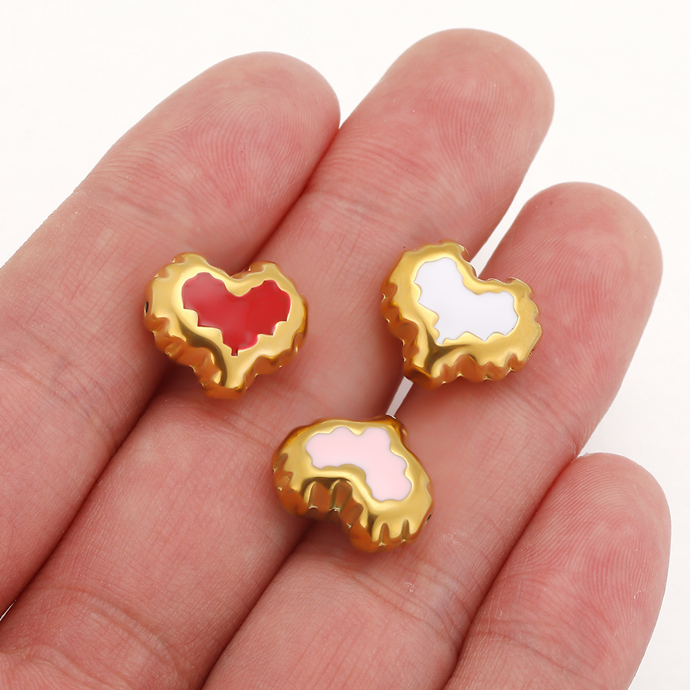 Edelstahl-Beads, 304 Edelstahl, Herz, goldfarben plattiert, DIY & Emaille, keine, 5PCs/Tasche, verkauft von Tasche