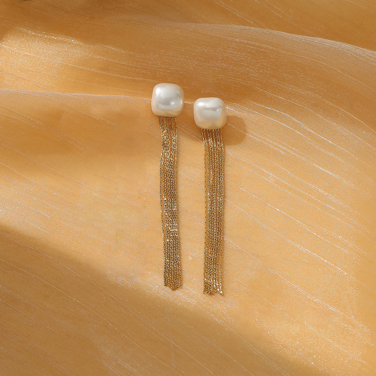 Edelstahl Tropfen Ohrring, 304 Edelstahl, mit Kunststoff Perlen, 18K vergoldet, Modeschmuck & verschiedene Stile für Wahl & für Frau, verkauft von Paar