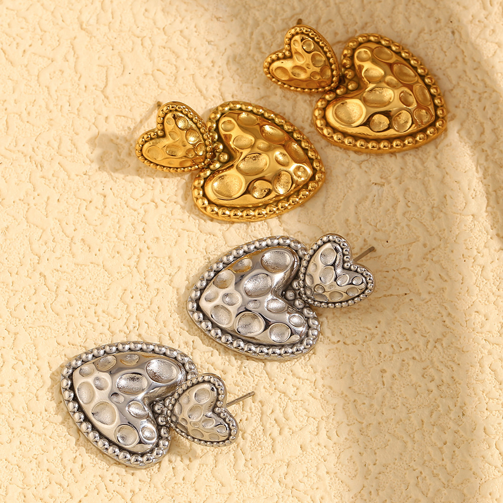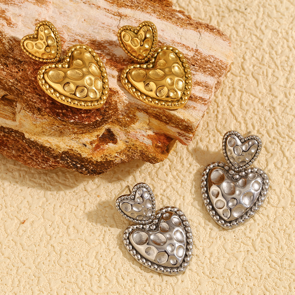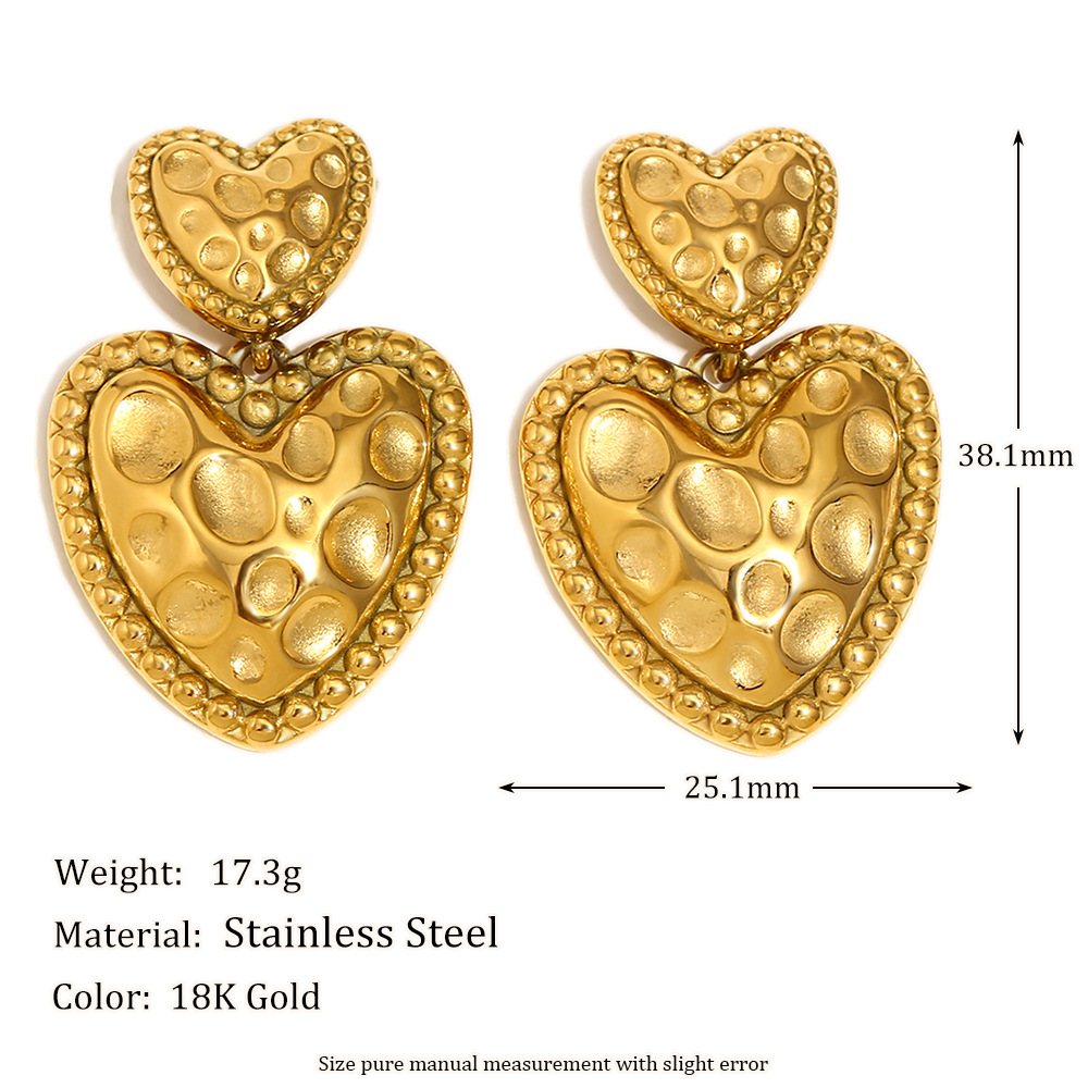 1:Meteorite pattern love earrings-gold2:Meteorite pattern love earrings-steel color