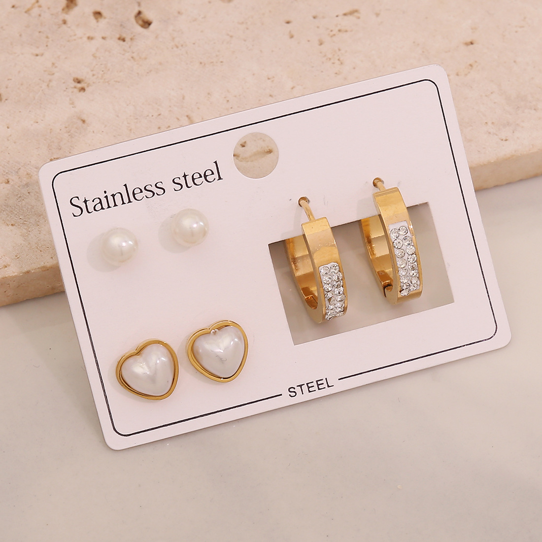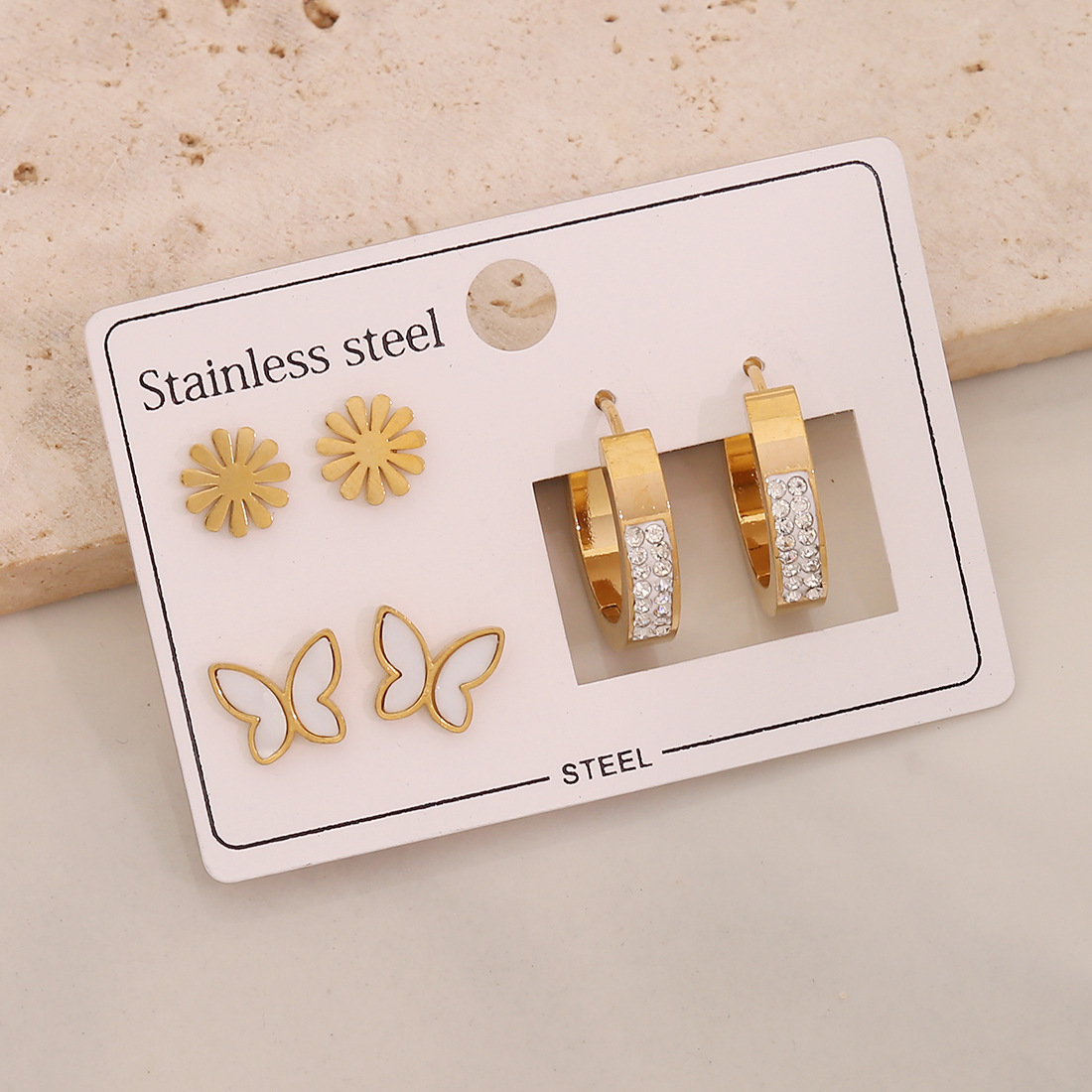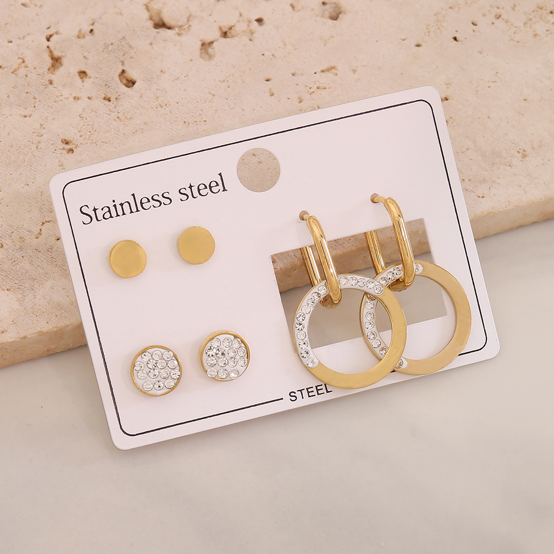 Edelstahl Tropfen Ohrring, 304 Edelstahl, goldfarben plattiert, drei Stücke & verschiedene Stile für Wahl & für Frau & mit Strass, verkauft von setzen