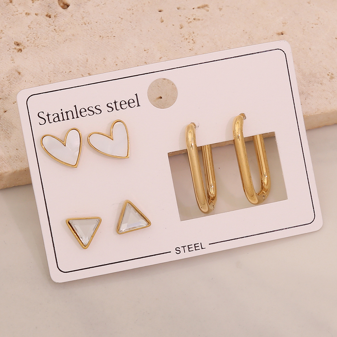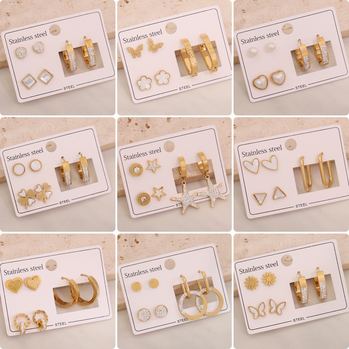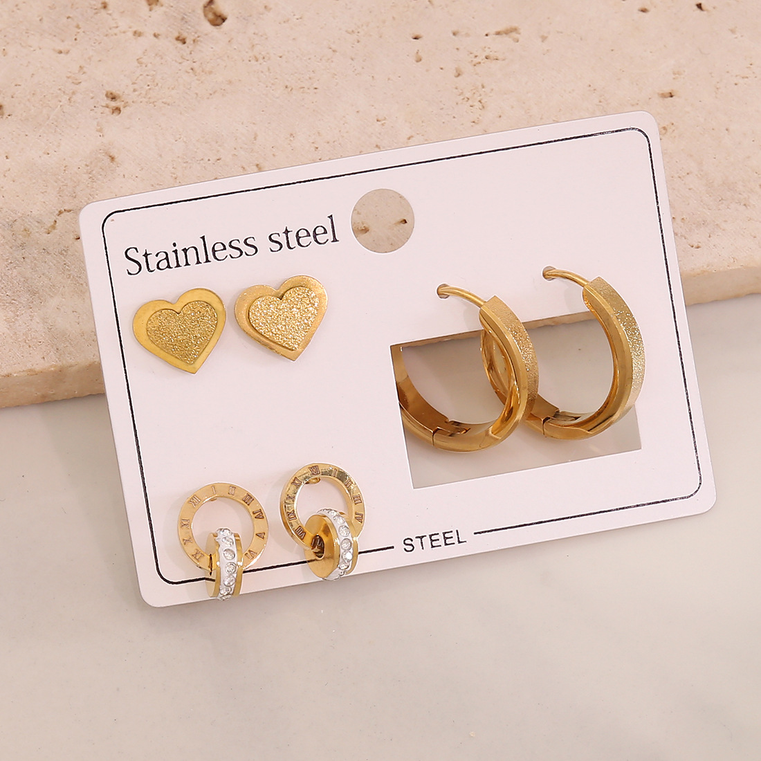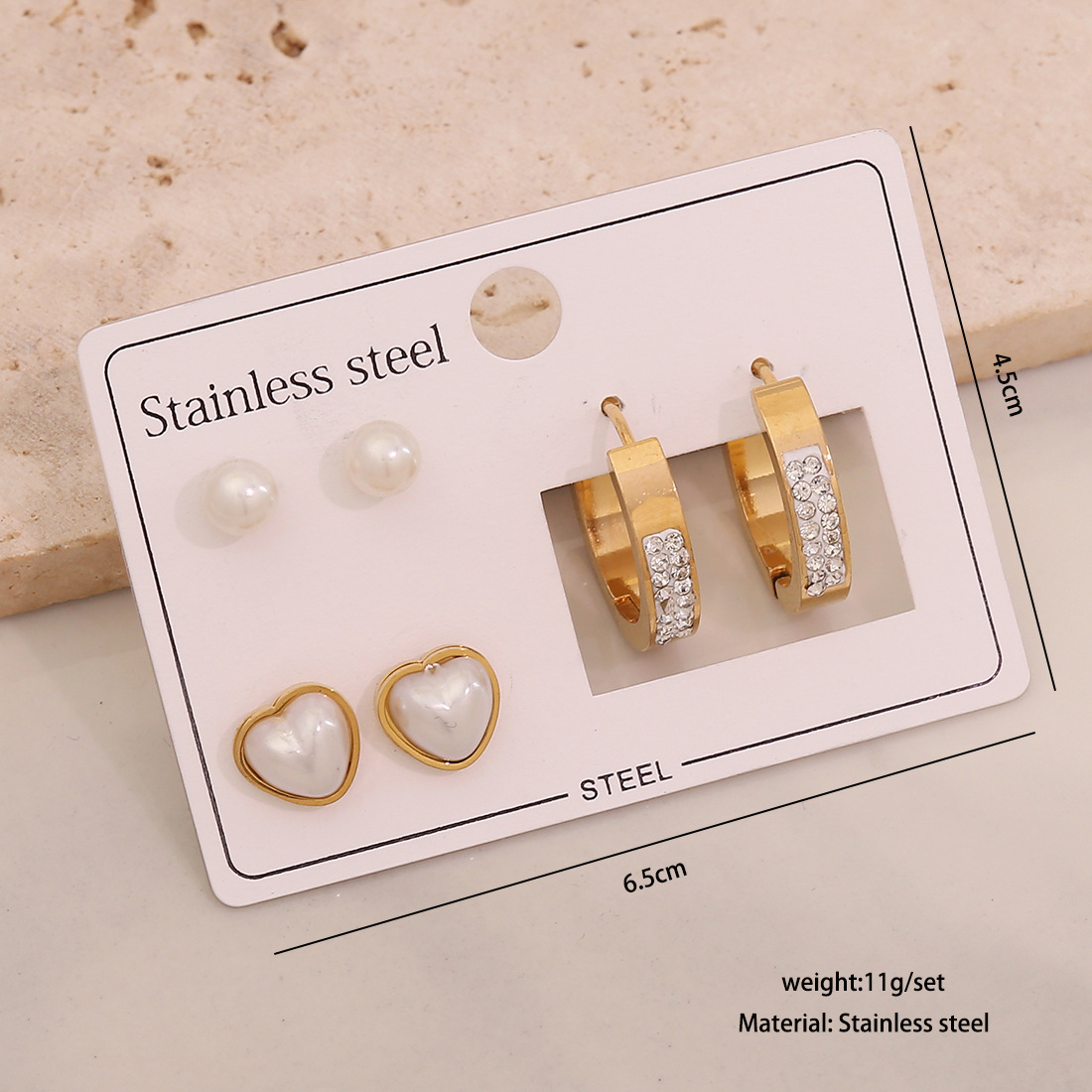 Edelstahl Tropfen Ohrring, 304 Edelstahl, goldfarben plattiert, drei Stücke & verschiedene Stile für Wahl & für Frau & mit Strass, verkauft von setzen