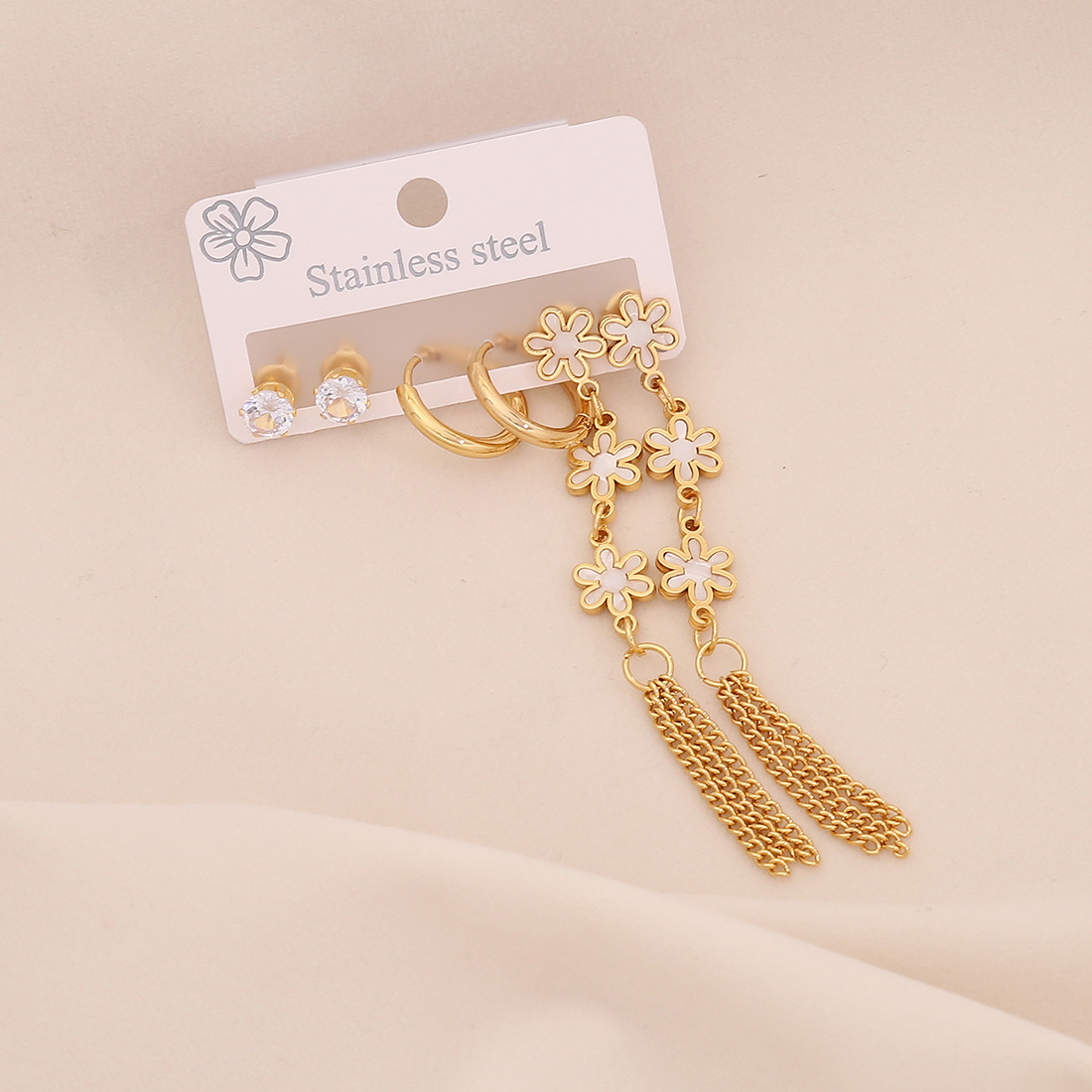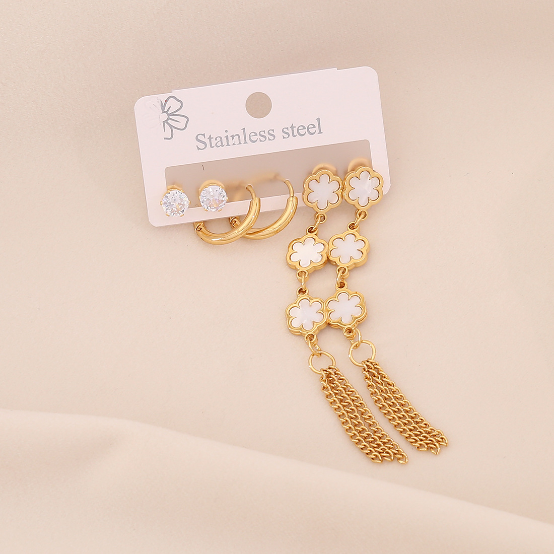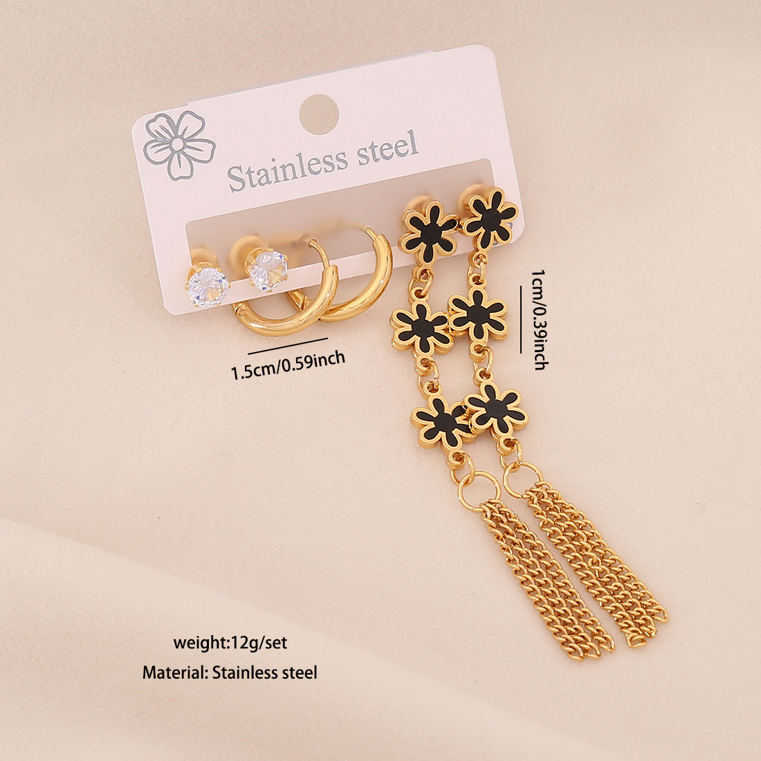 Edelstahl Tropfen Ohrring, 304 Edelstahl, mit Acryl, goldfarben plattiert, drei Stücke & verschiedene Stile für Wahl & für Frau & mit Strass, keine, verkauft von setzen