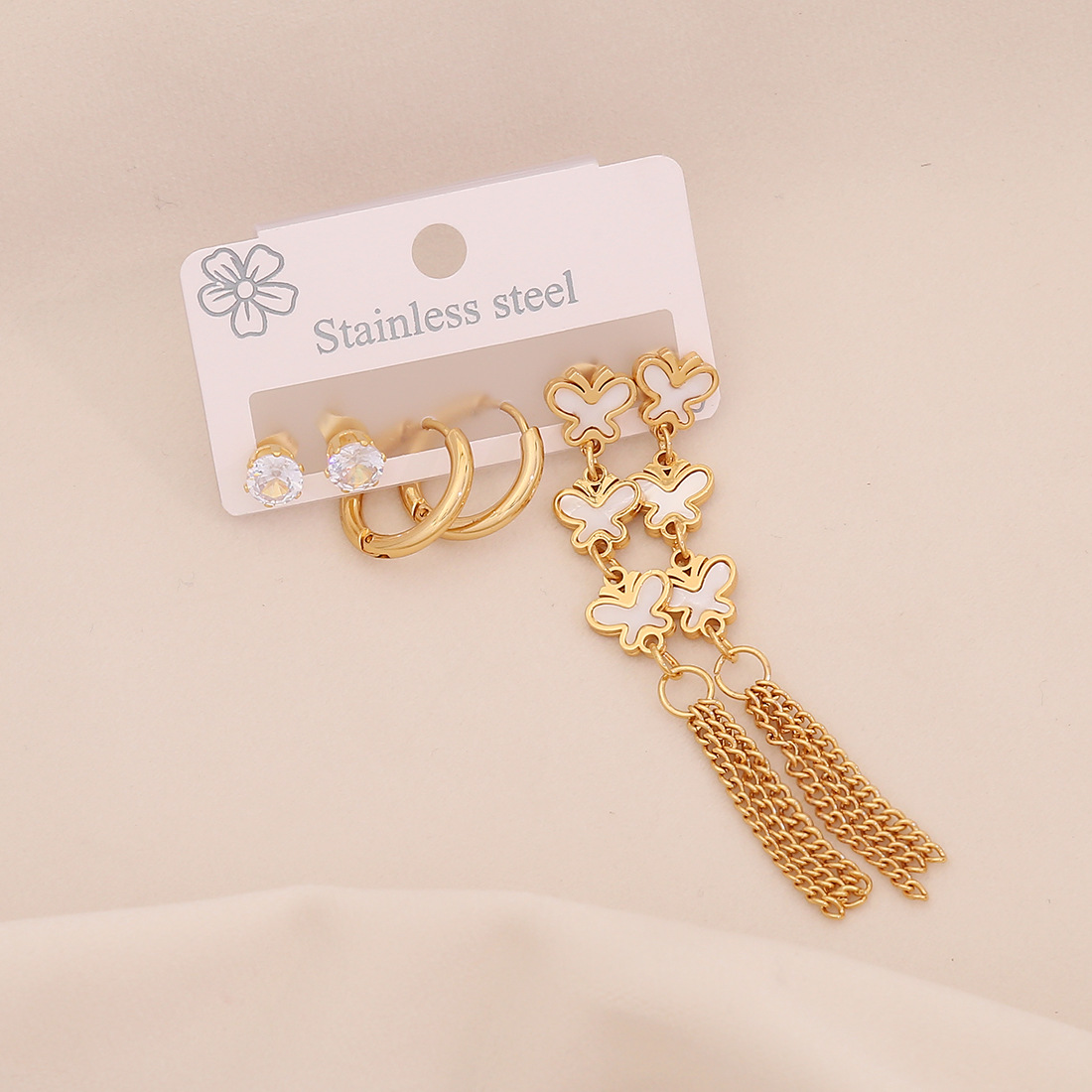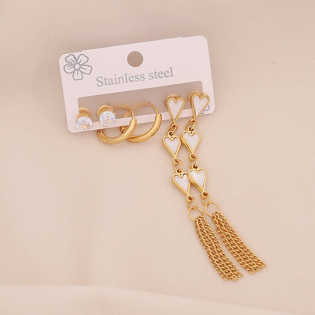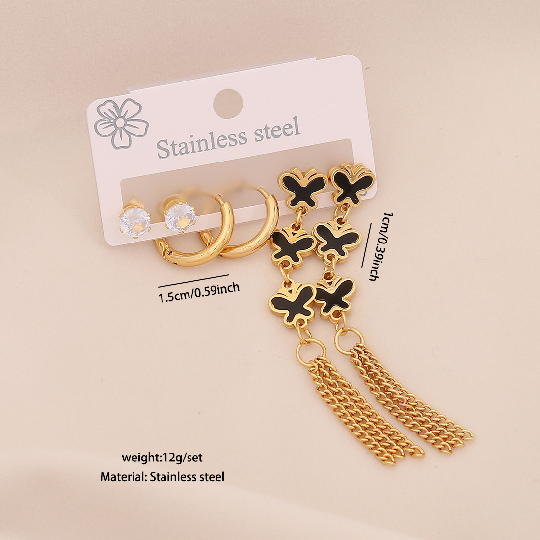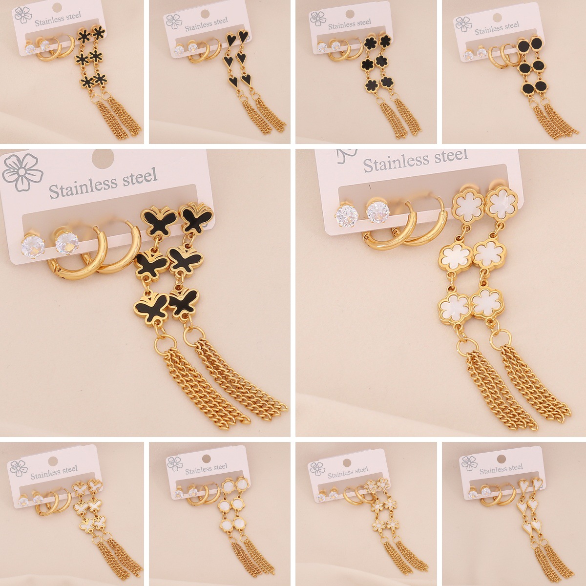 Edelstahl Tropfen Ohrring, 304 Edelstahl, mit Acryl, goldfarben plattiert, drei Stücke & verschiedene Stile für Wahl & für Frau & mit Strass, keine, verkauft von setzen
