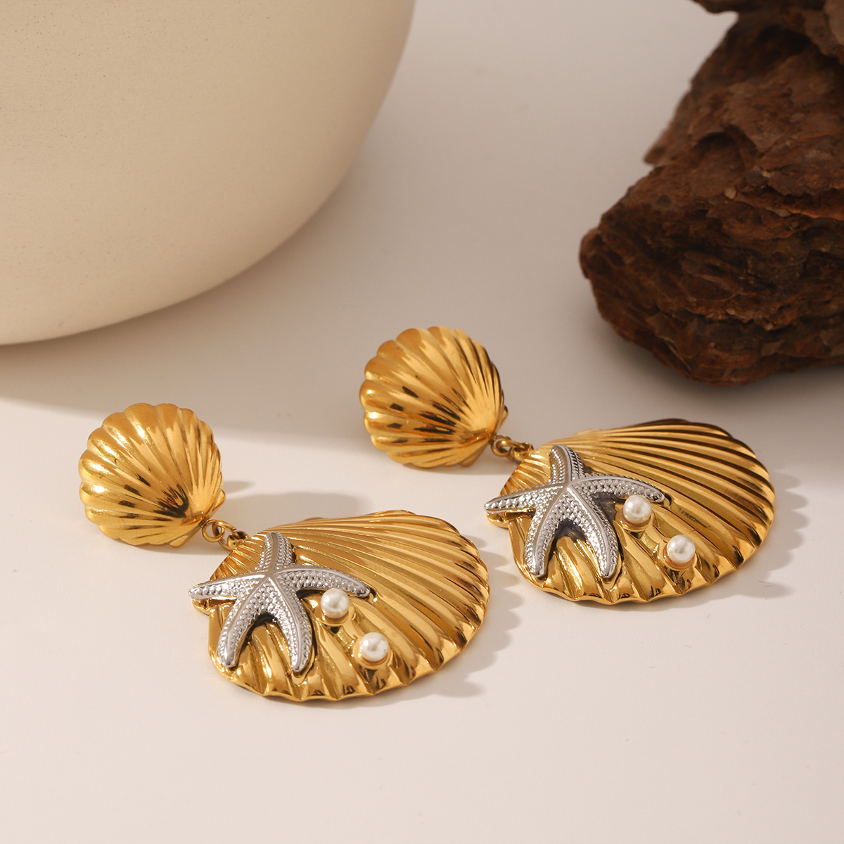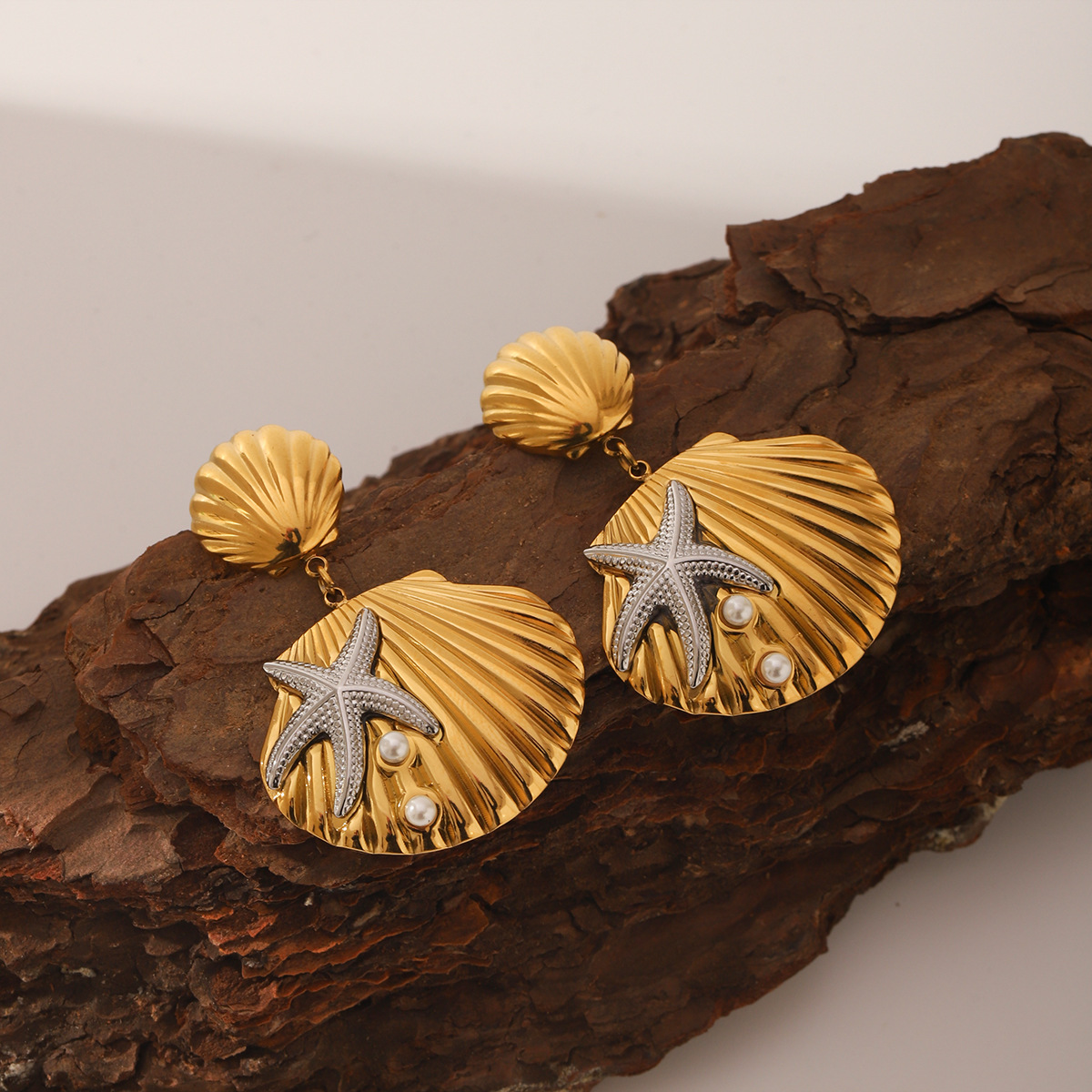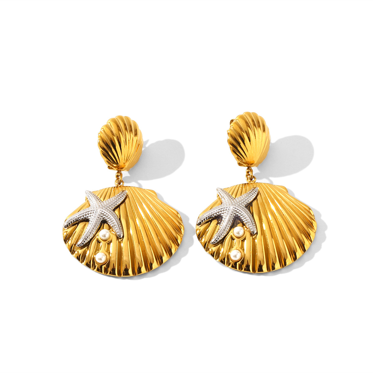 Edelstahl Tropfen Ohrring, 304 Edelstahl, mit Muschelkern, Schale, plattiert, Modeschmuck & für Frau & zweifarbig, verkauft von Paar