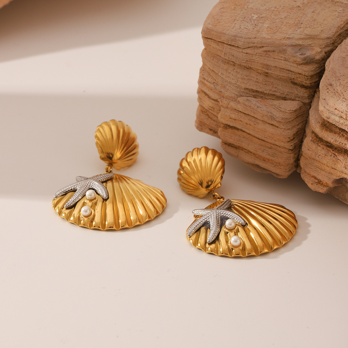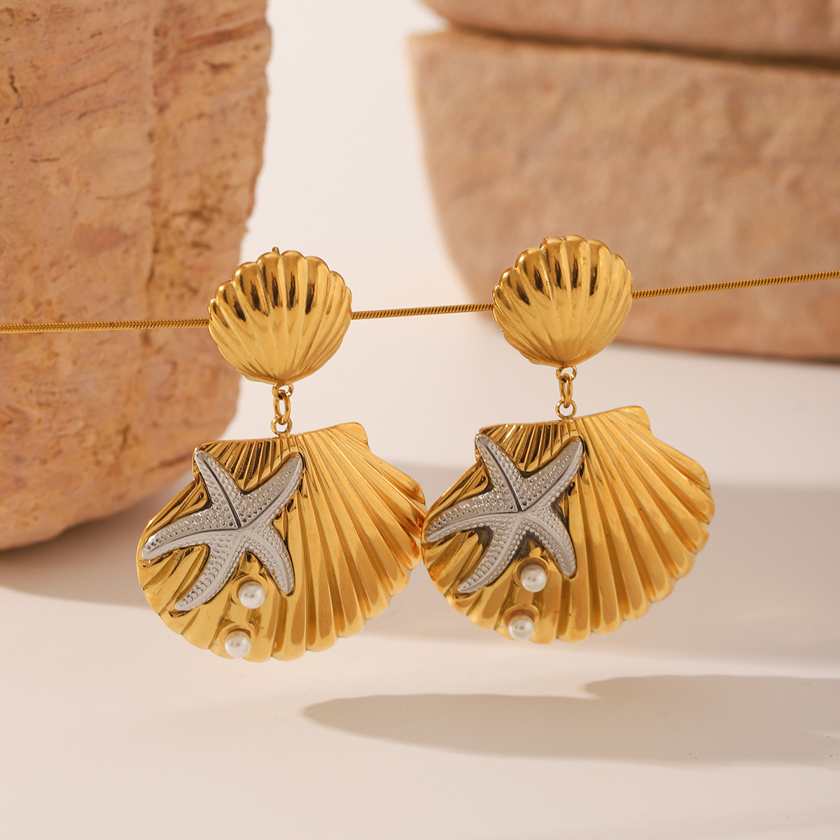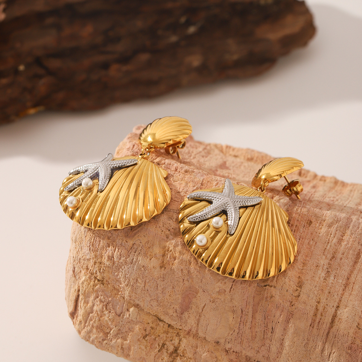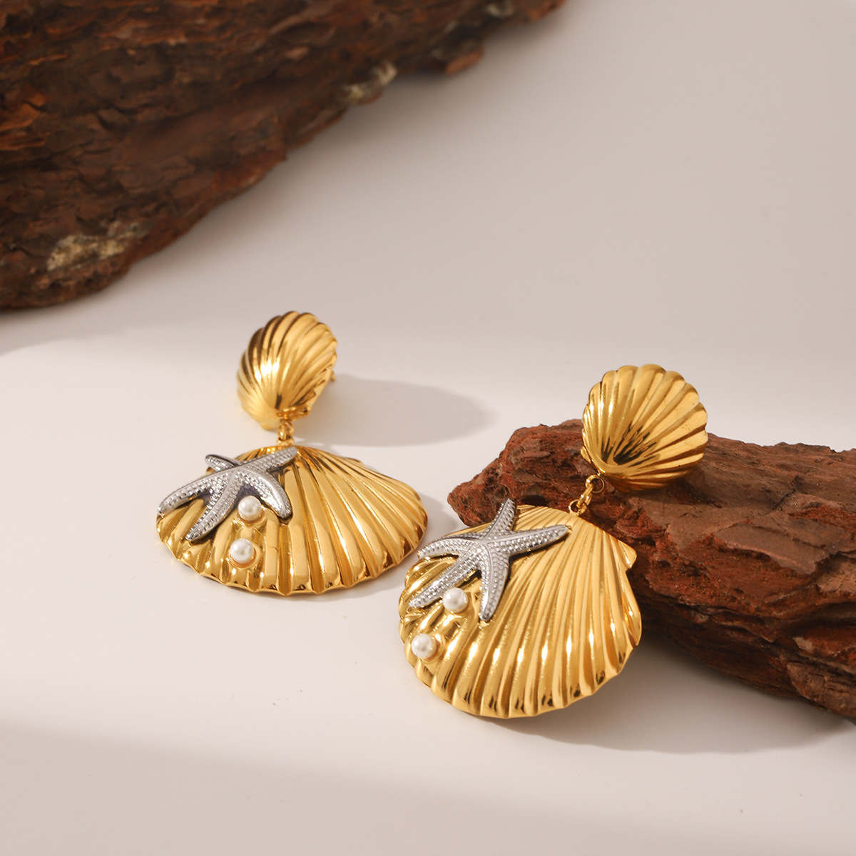 Edelstahl Tropfen Ohrring, 304 Edelstahl, mit Muschelkern, Schale, plattiert, Modeschmuck & für Frau & zweifarbig, verkauft von Paar