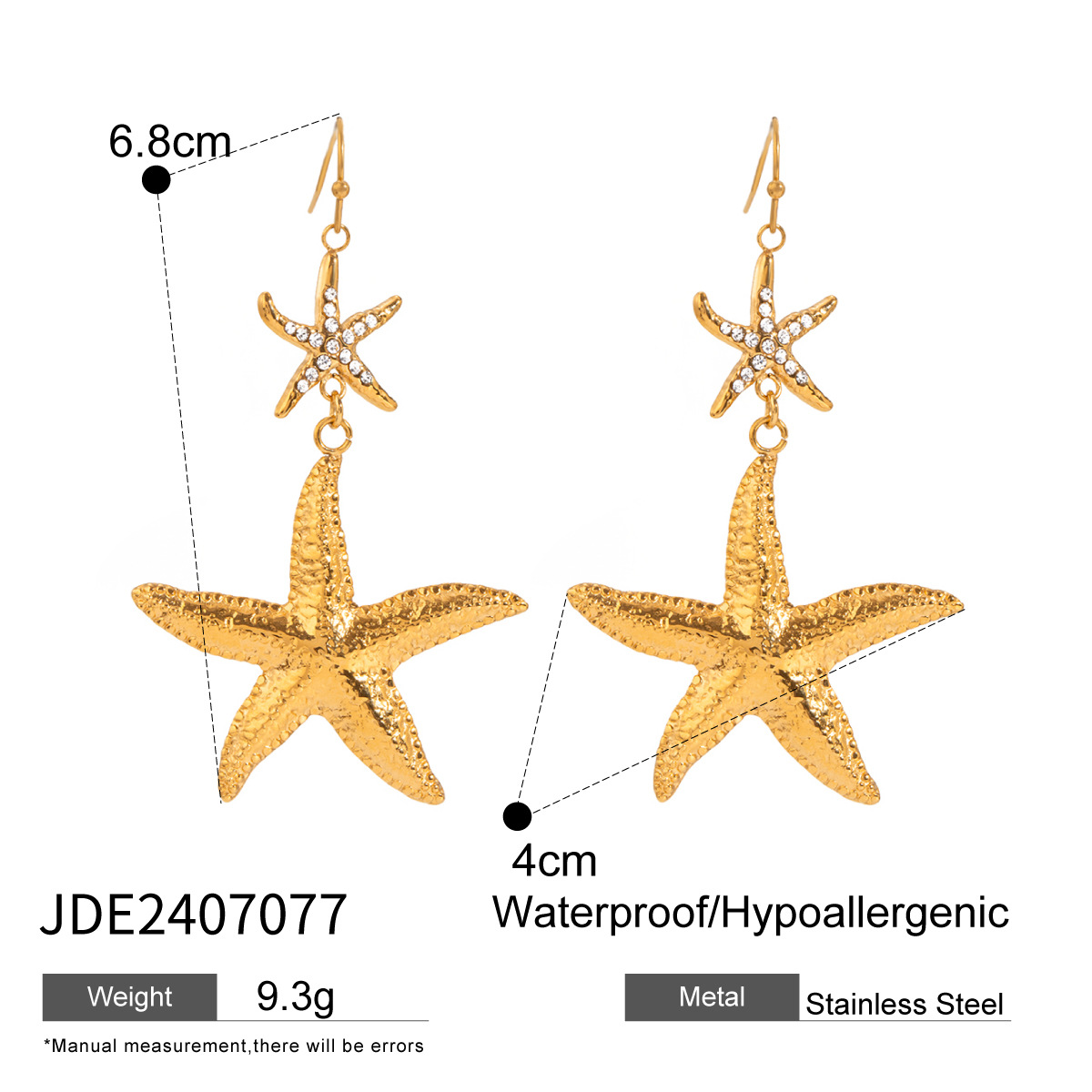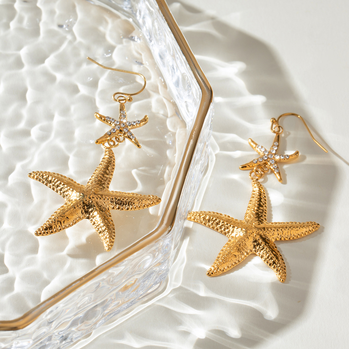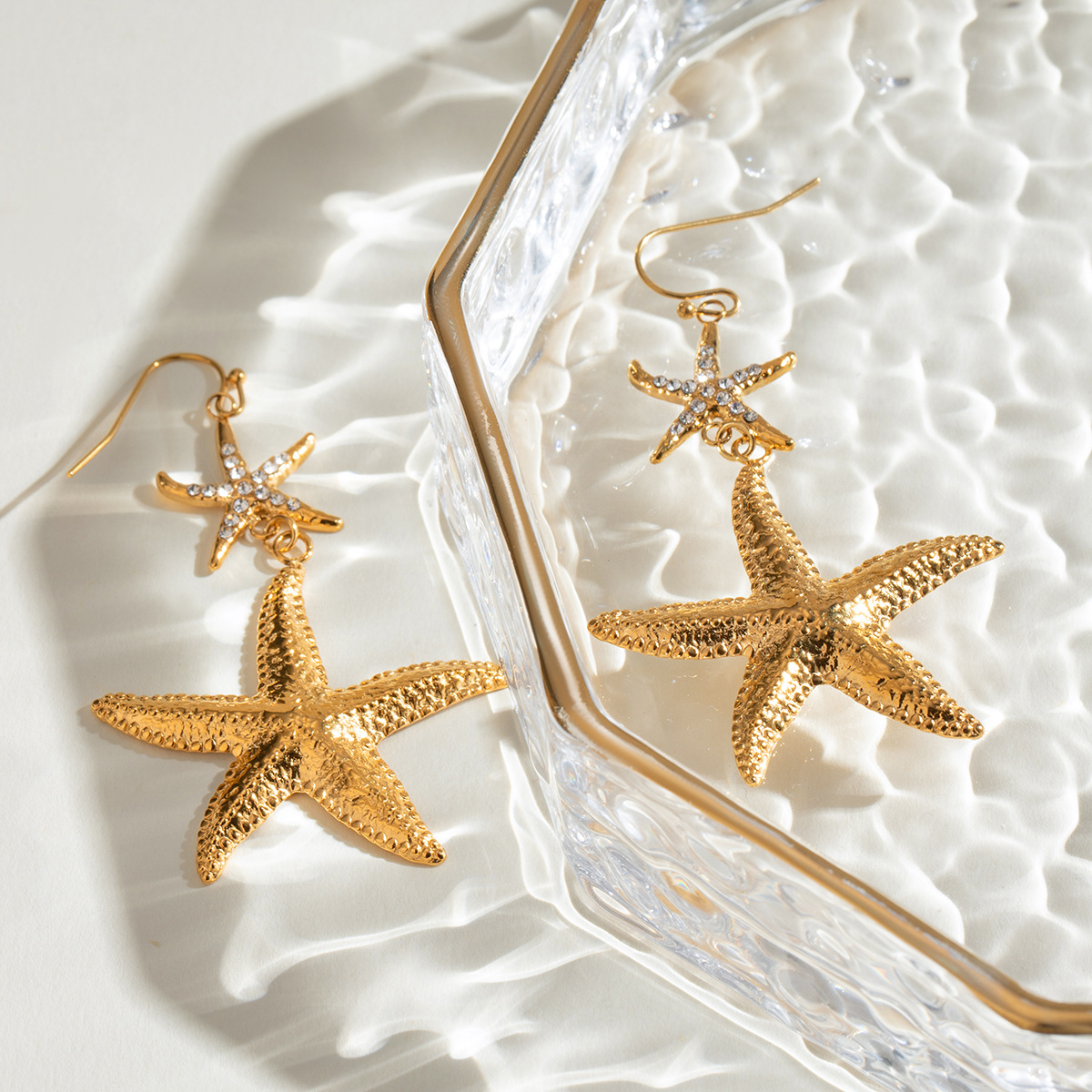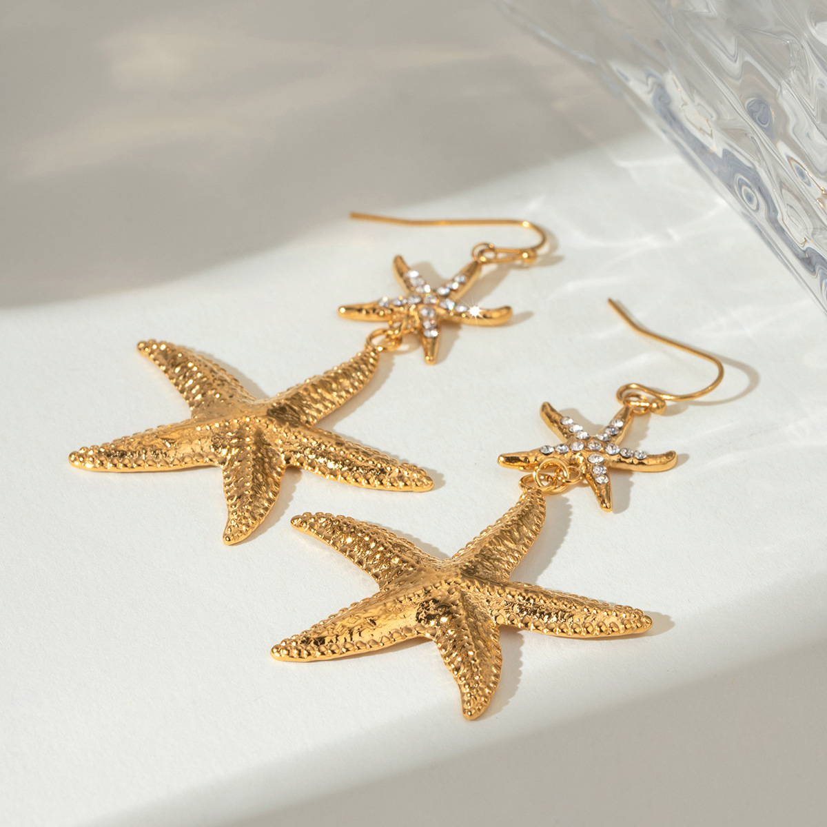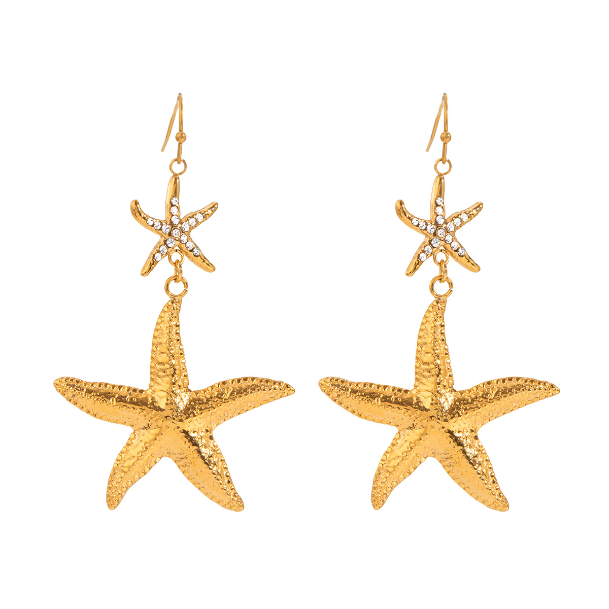 Edelstahl Tropfen Ohrring, 304 Edelstahl, Seestern, plattiert, Modeschmuck & für Frau & mit Strass, goldfarben, verkauft von Paar