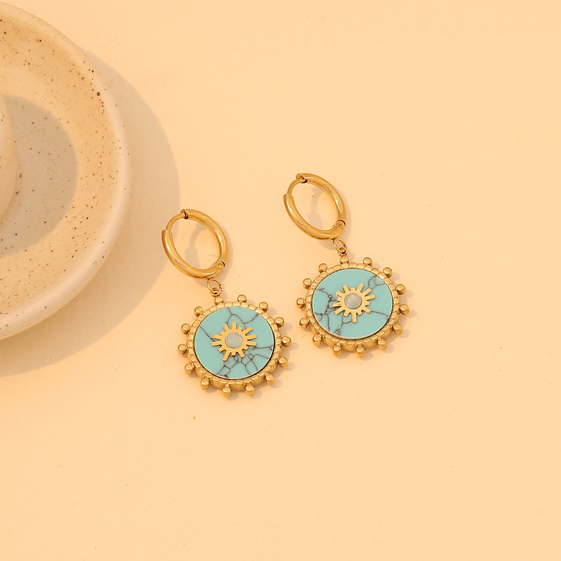 Edelstahl Tropfen Ohrring, 304 Edelstahl, mit Synthetische Türkis, plattiert, Modeschmuck & verschiedene Stile für Wahl & für Frau, goldfarben, verkauft von PC