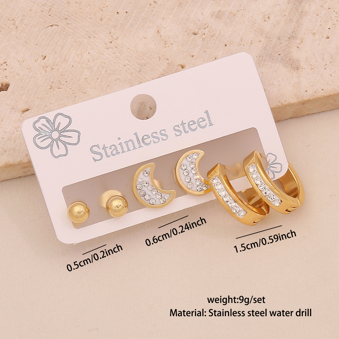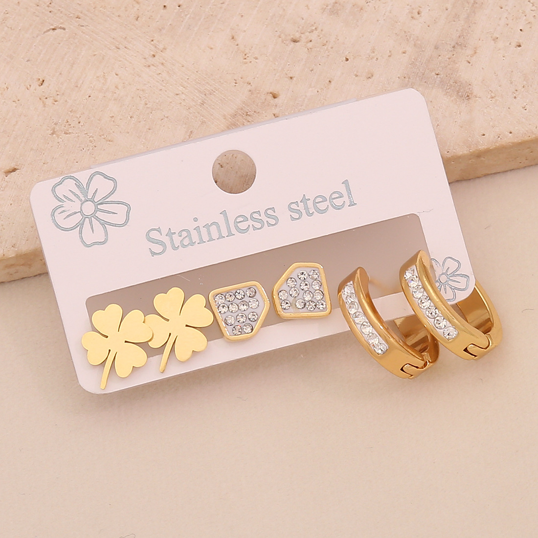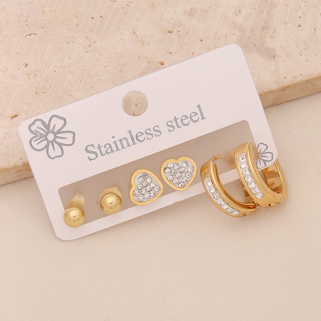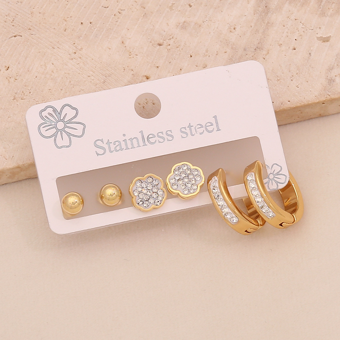 Edelstahl Tropfen Ohrring, 304 Edelstahl, plattiert, drei Stücke & verschiedene Stile für Wahl & für Frau & mit Strass, goldfarben, verkauft von setzen