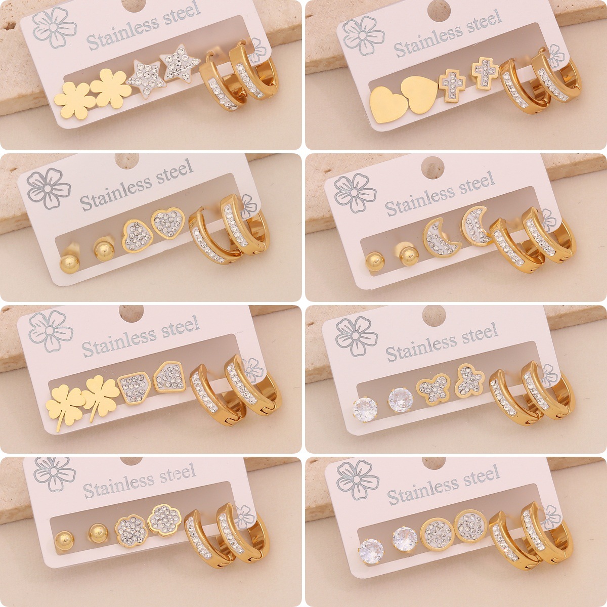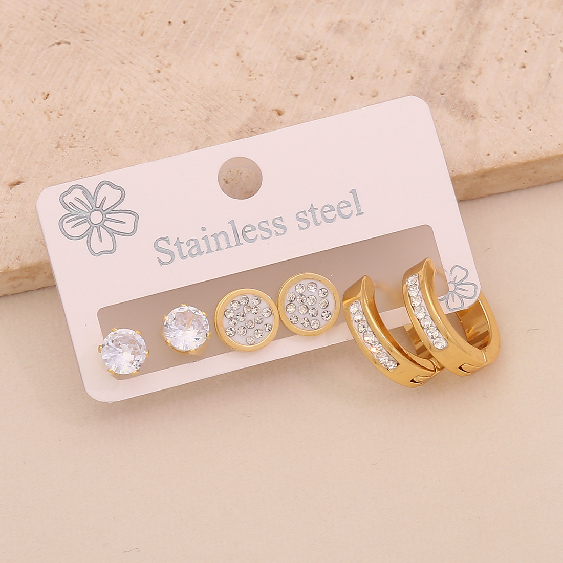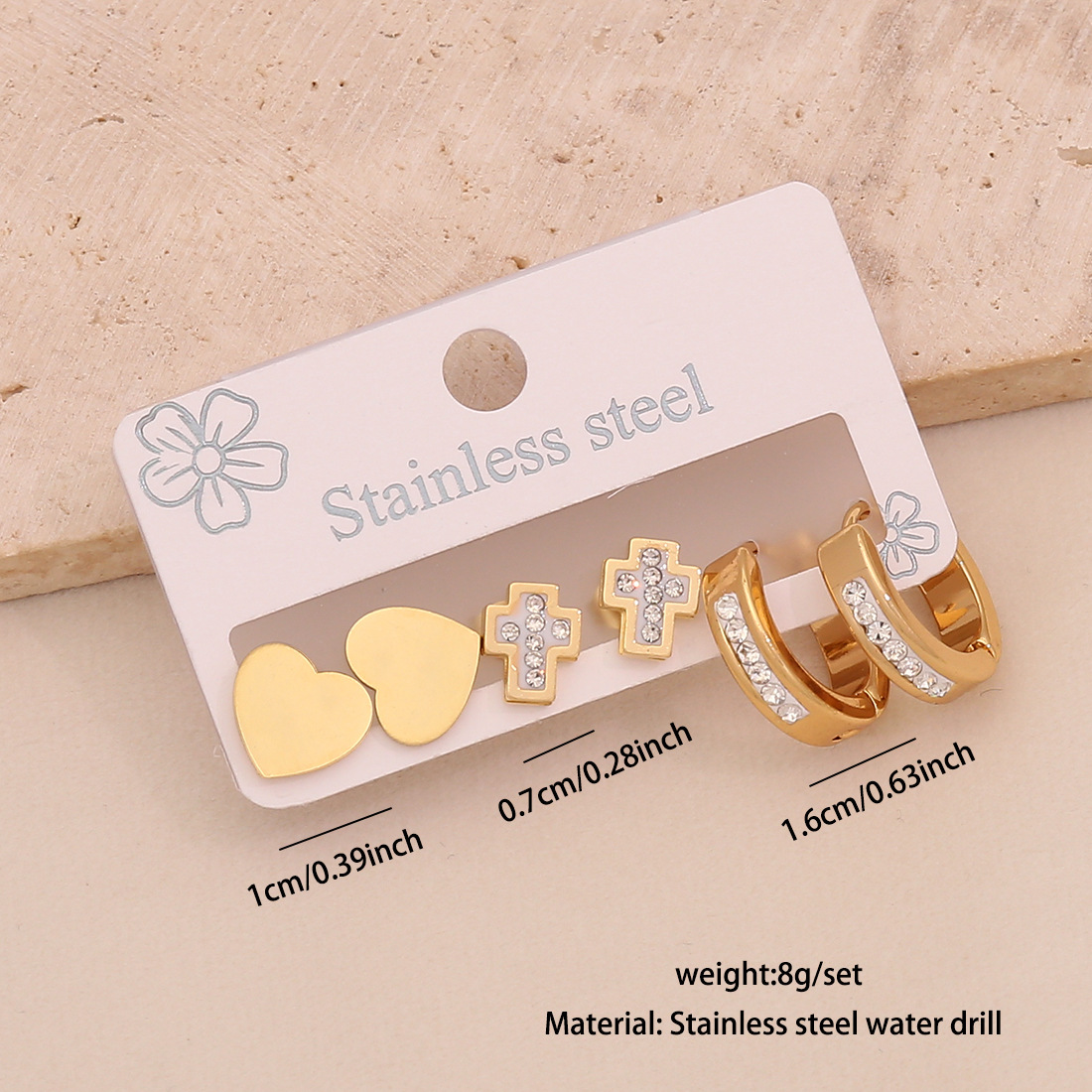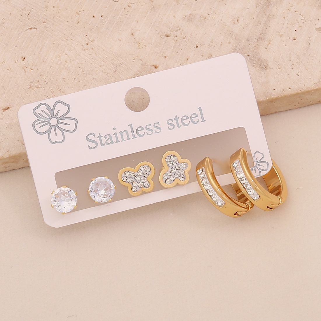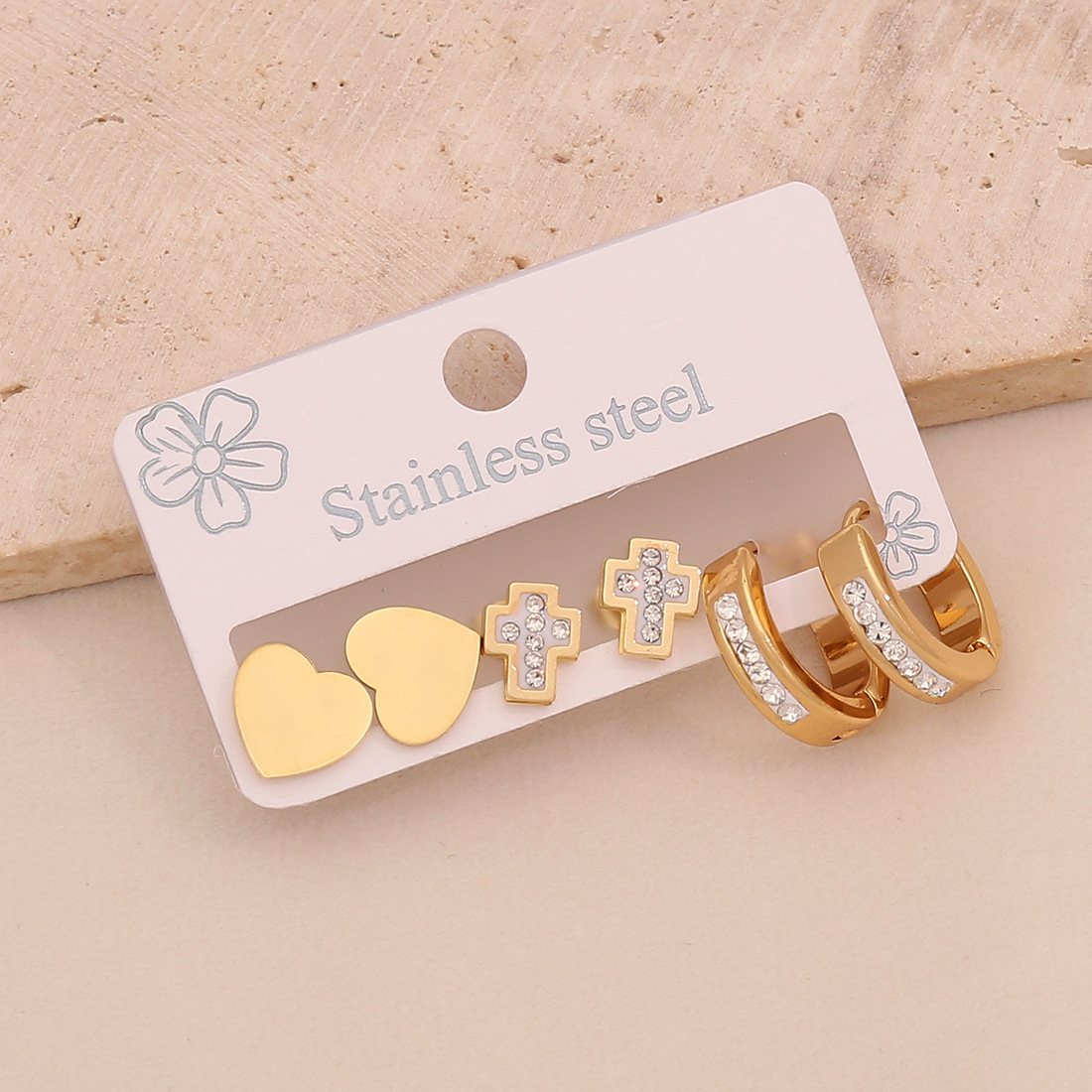 Edelstahl Tropfen Ohrring, 304 Edelstahl, plattiert, drei Stücke & verschiedene Stile für Wahl & für Frau & mit Strass, goldfarben, verkauft von setzen