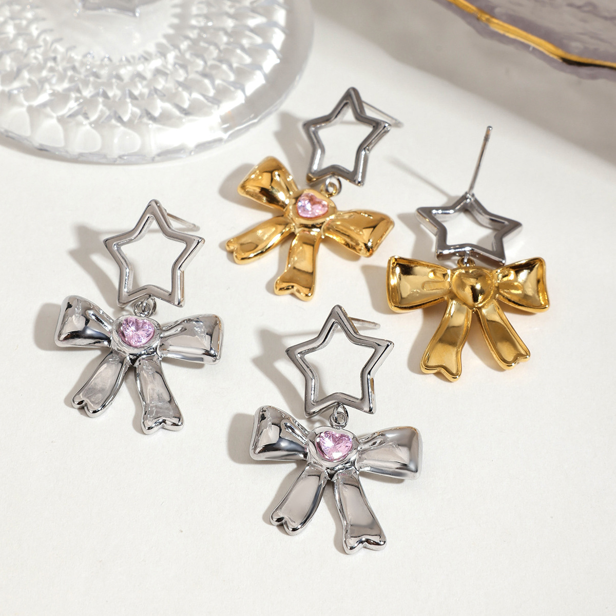 Edelstahl Tropfen Ohrring, 304 Edelstahl, Schleife, plattiert, Modeschmuck & mit Strass, keine, verkauft von Paar