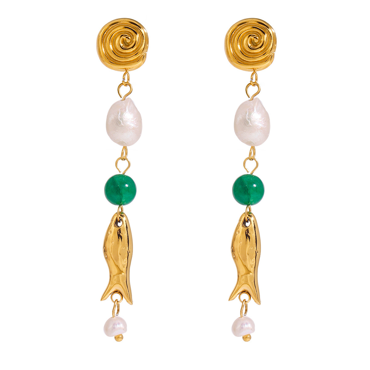 Edelstahl Tropfen Ohrring, 304 Edelstahl, mit Naturstein & Kunststoff Perlen, goldfarben plattiert, für Frau, verkauft von Paar