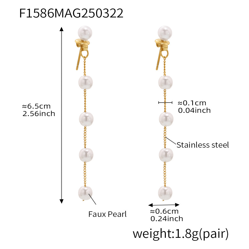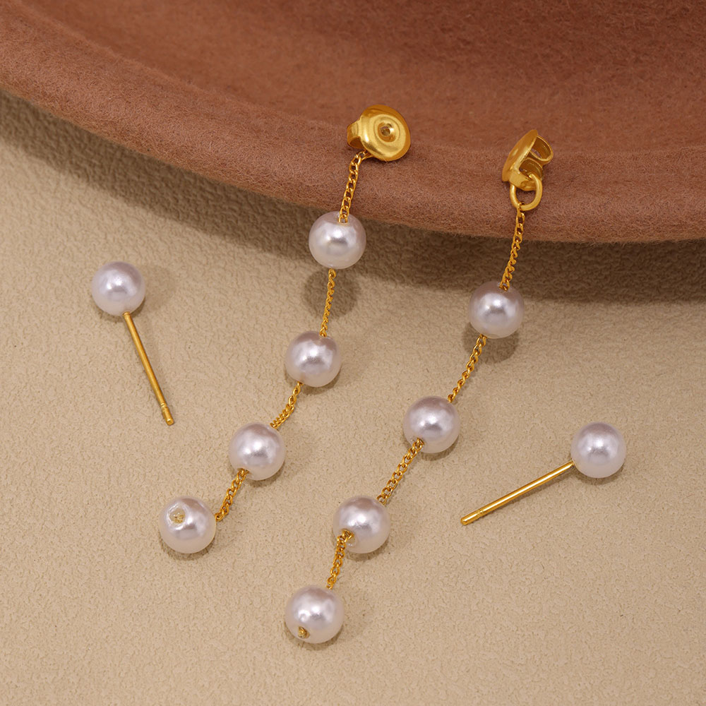 Edelstahl Tropfen Ohrring, 304 Edelstahl, mit Naturstein & Kunststoff Perlen, goldfarben plattiert, für Frau, verkauft von Paar
