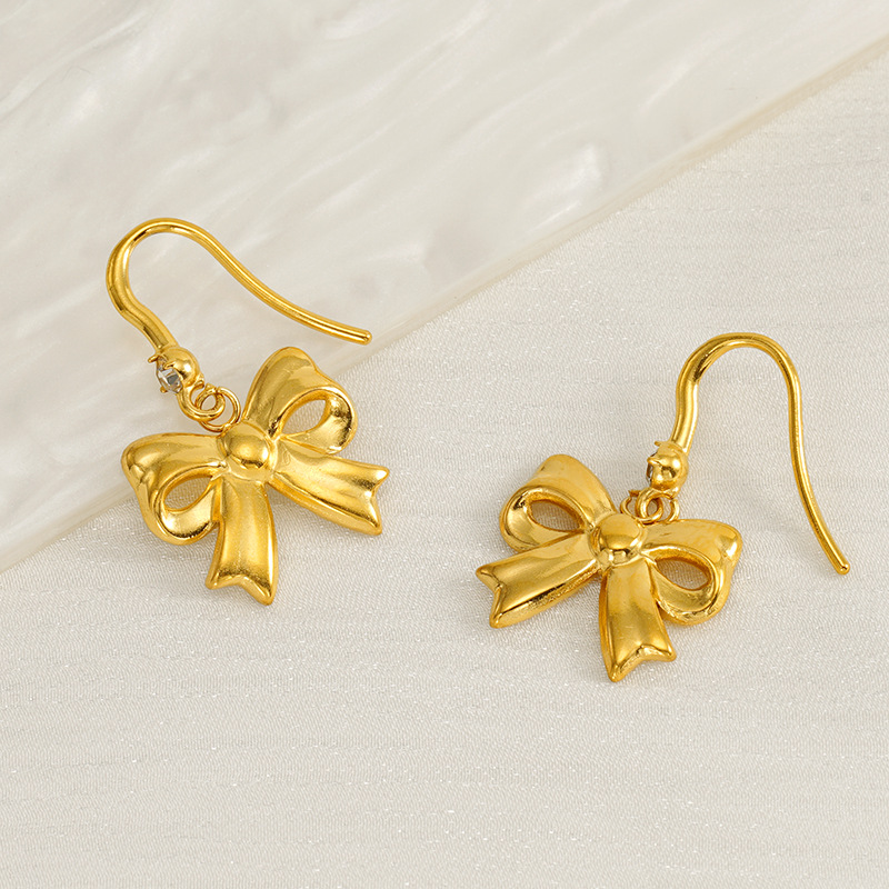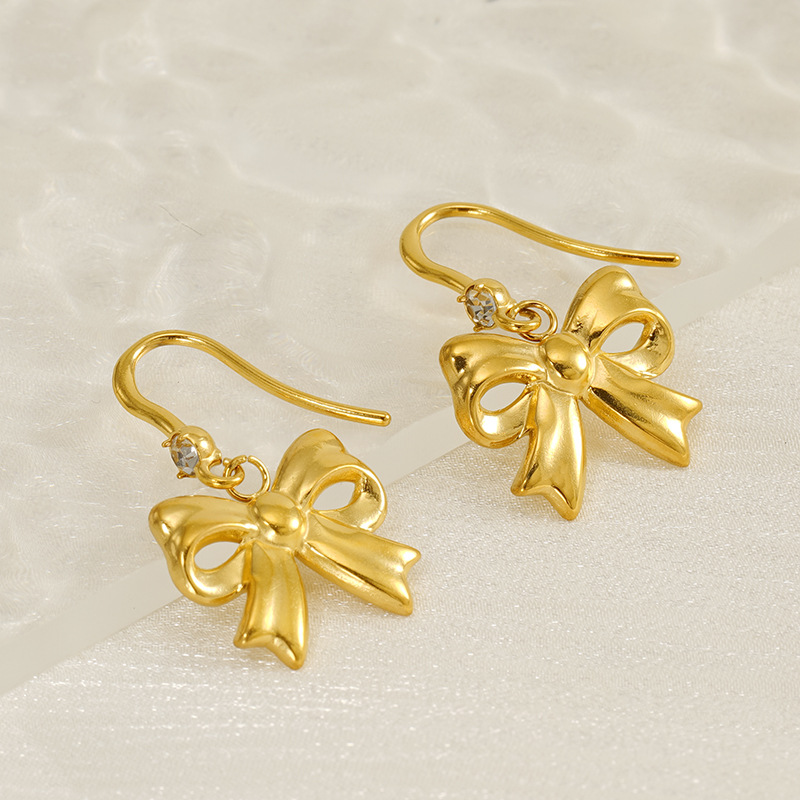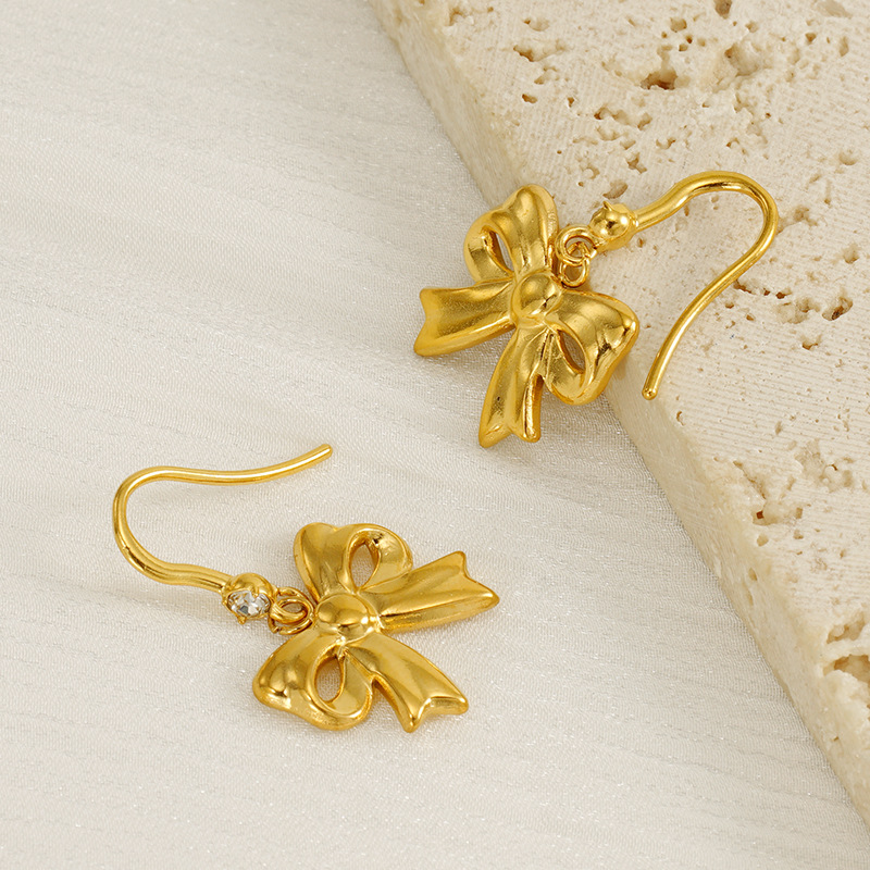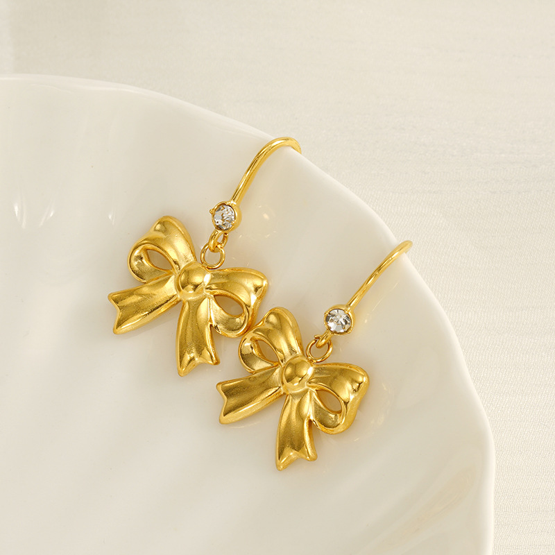 Edelstahl Tropfen Ohrring, 304 Edelstahl, Schleife, 18K vergoldet, für Frau & mit Strass & hohl, verkauft von Paar