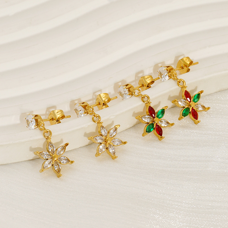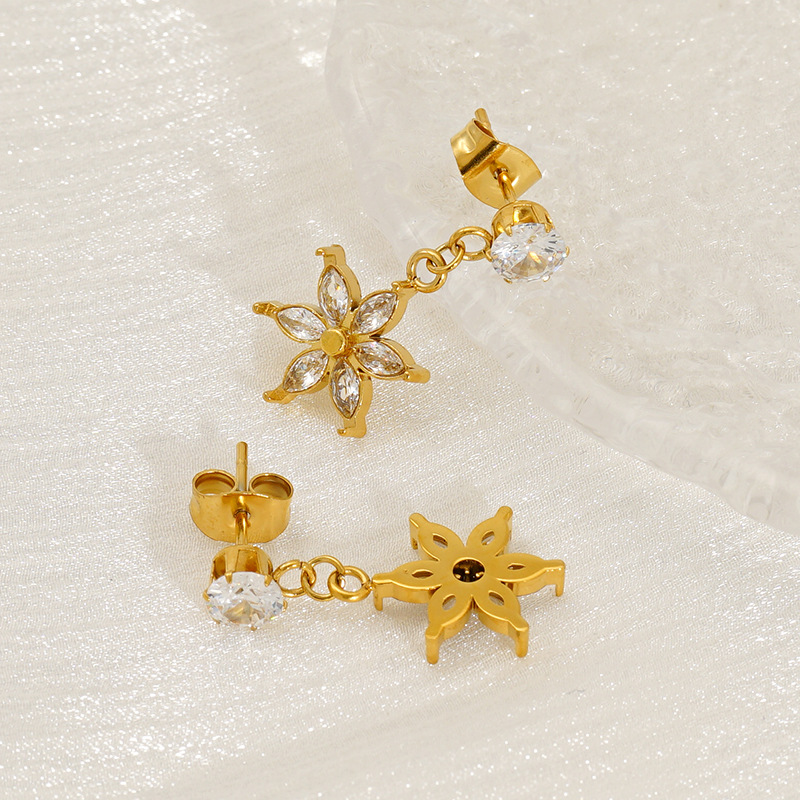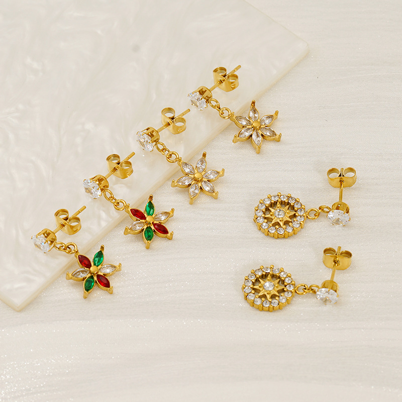 Edelstahl Tropfen Ohrring, 304 Edelstahl, mit kubischer Zirkonia, 18K vergoldet, verschiedene Stile für Wahl & für Frau & mit Strass, verkauft von Paar