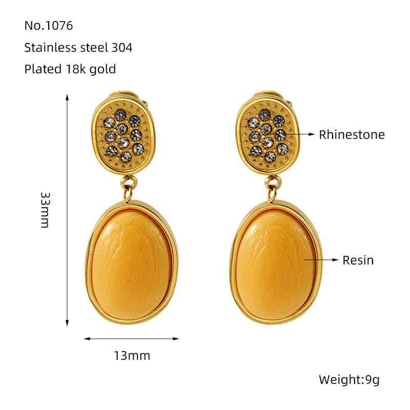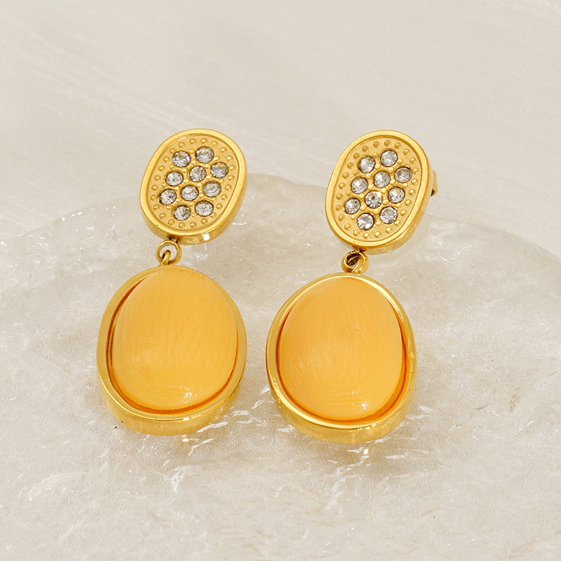 304 Edelstahl Tropfen Ohrring, mit Naturstein, plattiert, Modeschmuck & verschiedene Stile für Wahl & für Frau, goldfarben, verkauft von Paar