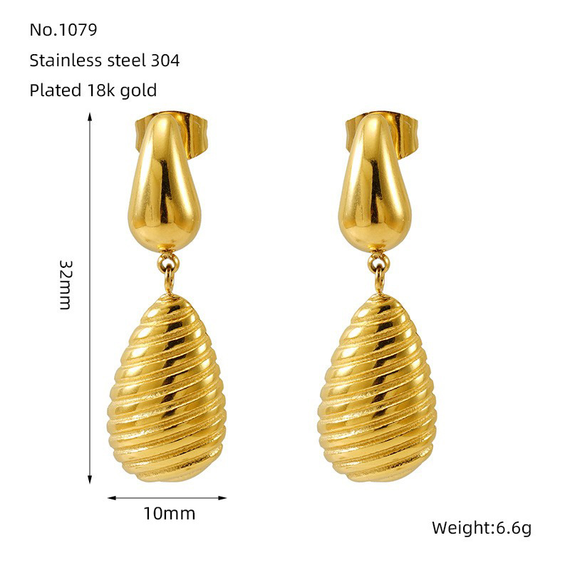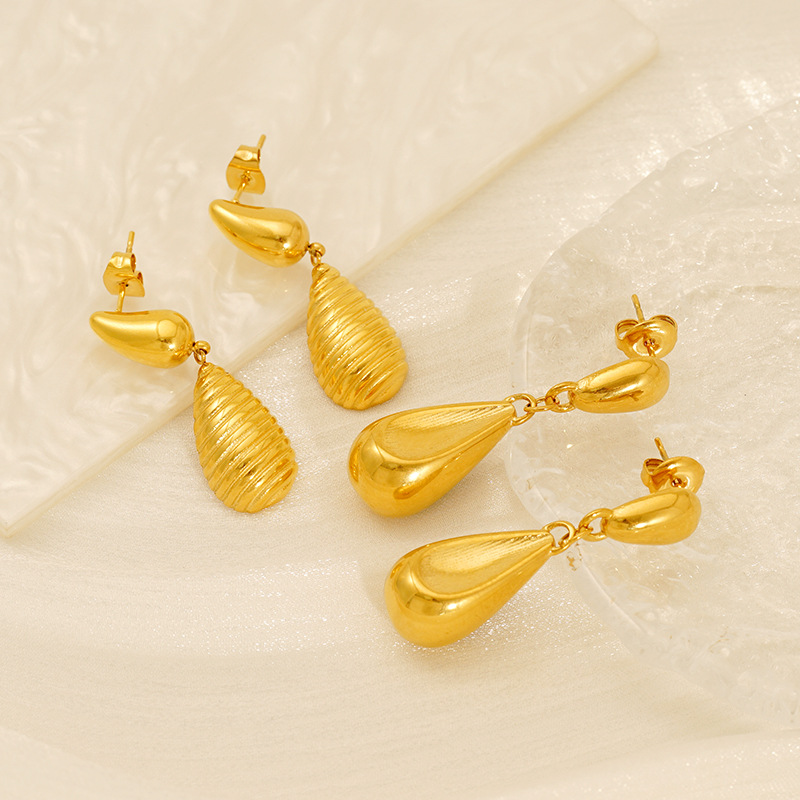 304 Edelstahl Tropfen Ohrring, 18K vergoldet, Modeschmuck & für Frau & hohl, verkauft von Paar