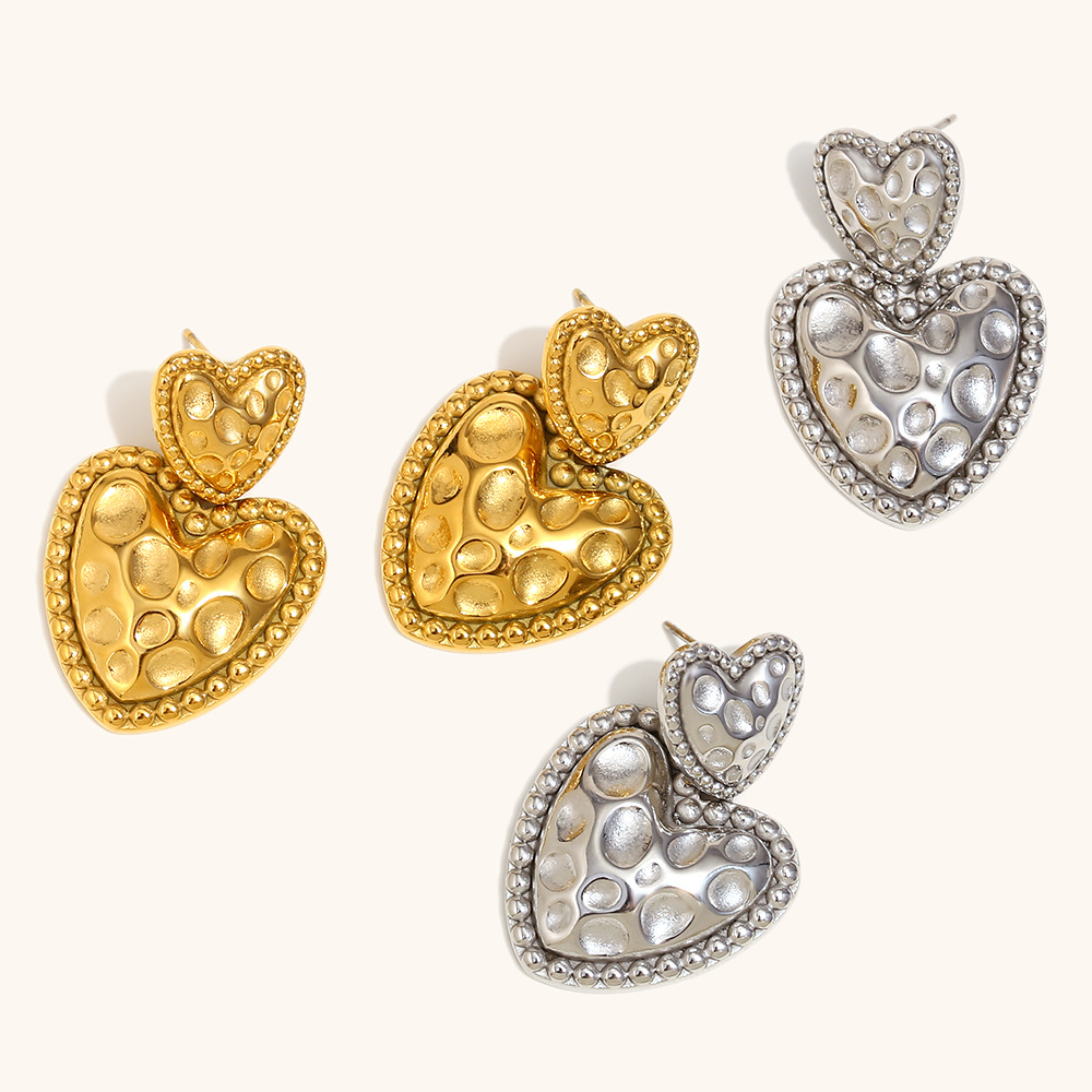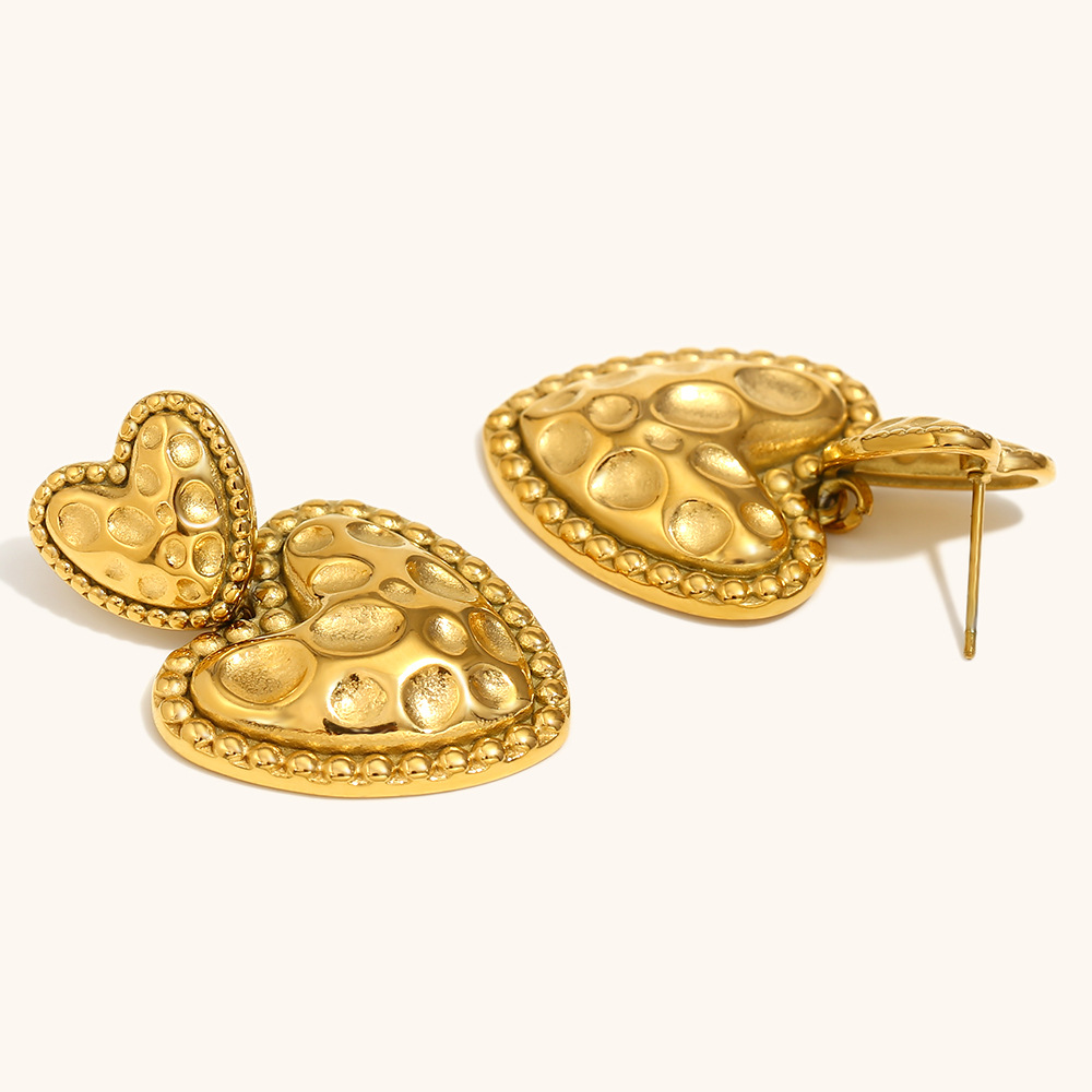 1:Meteorite pattern love earrings-gold2:Meteorite pattern love earrings-steel color