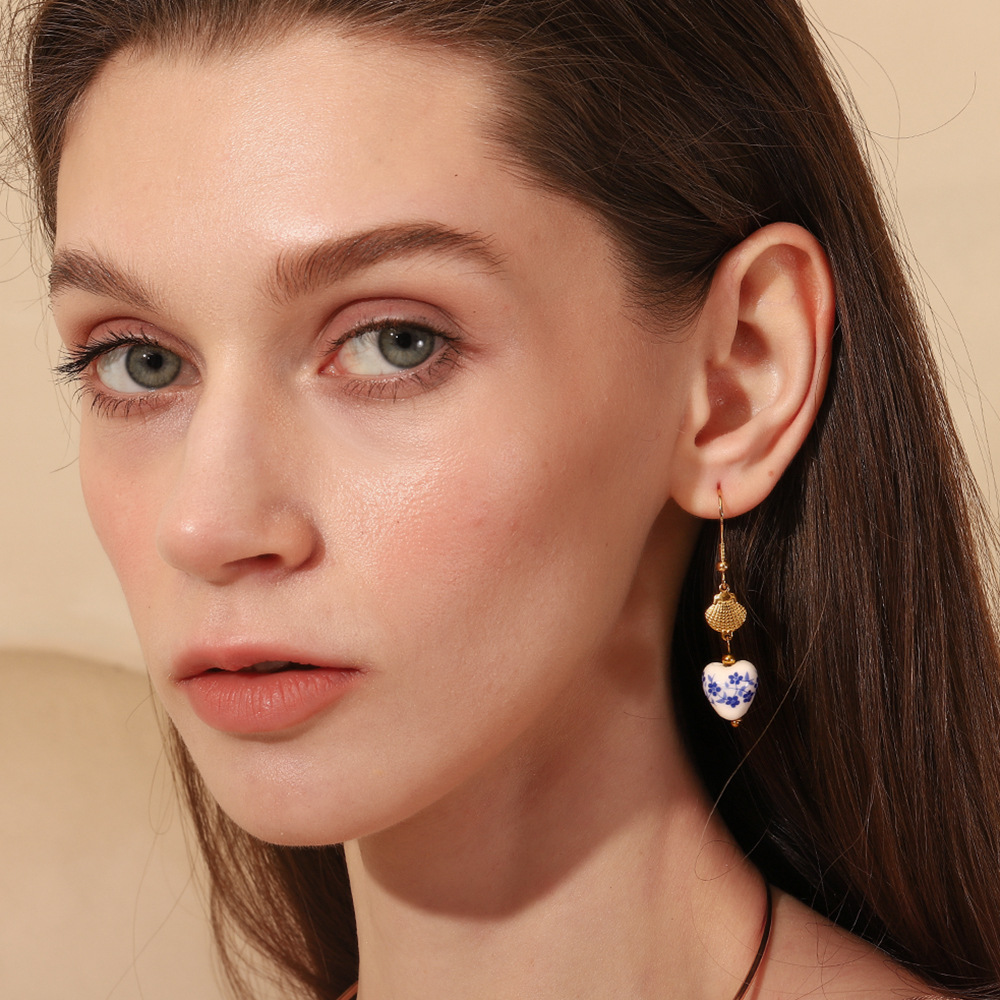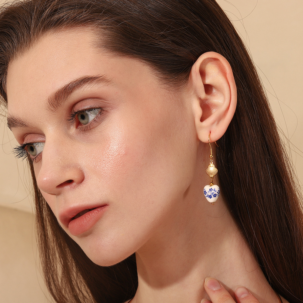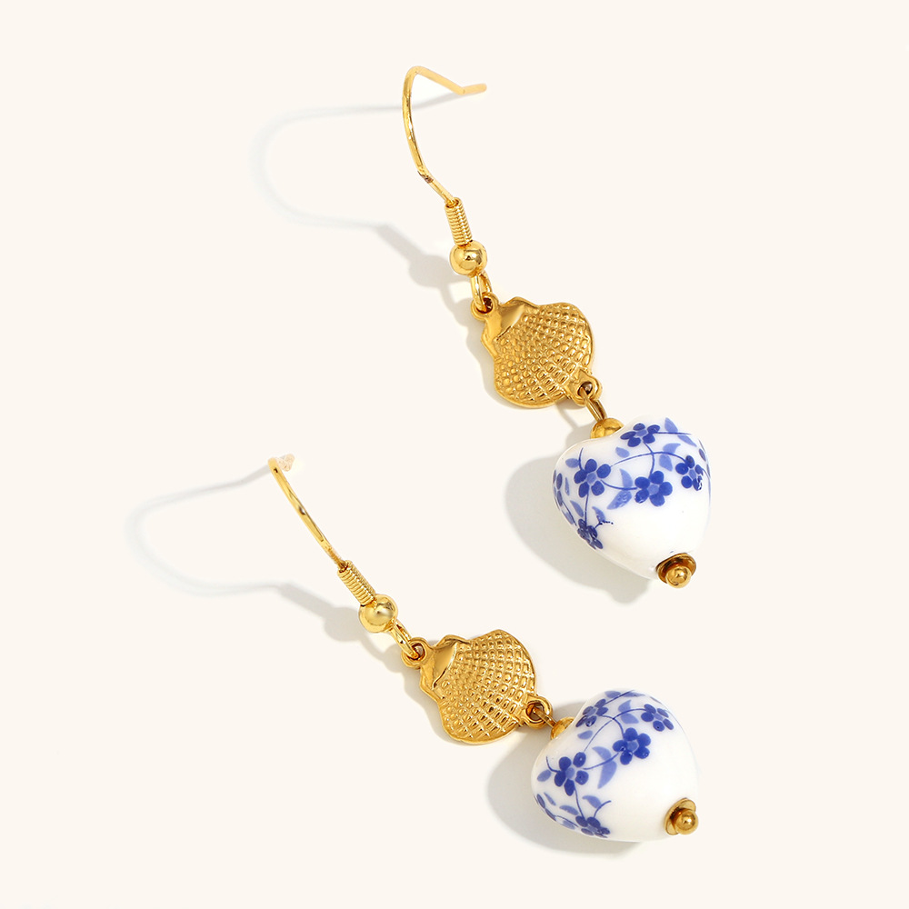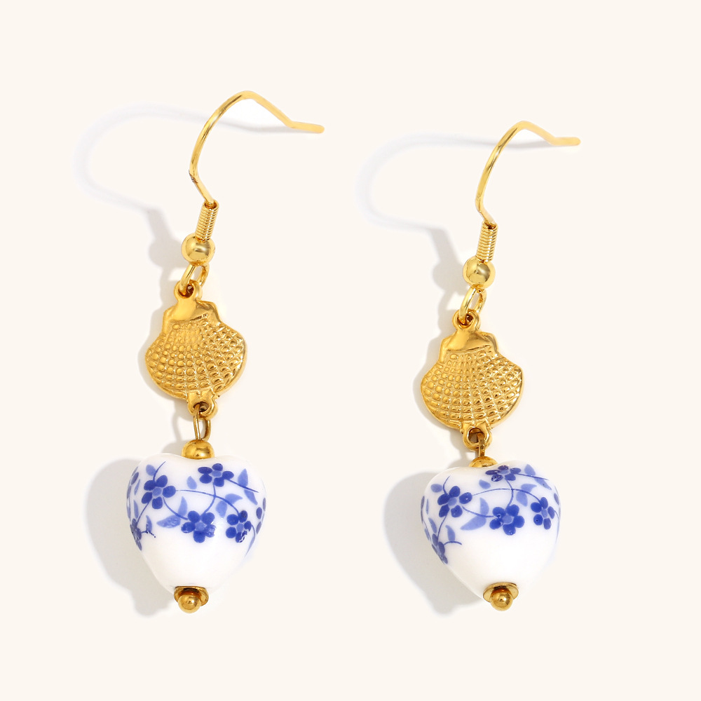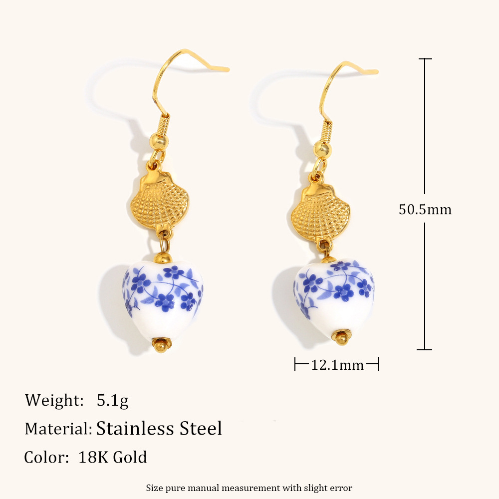 Edelstahl Tropfen Ohrring, 304 Edelstahl, mit Muschel, Herz, goldfarben plattiert, für Frau, verkauft von Paar