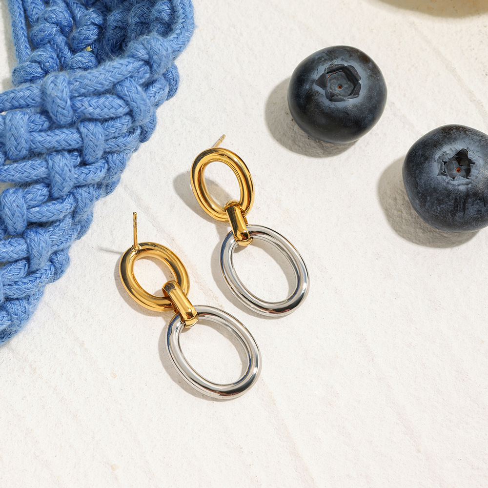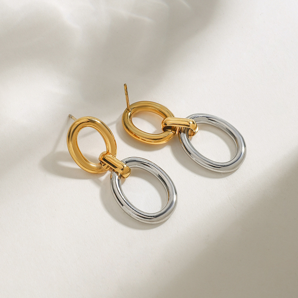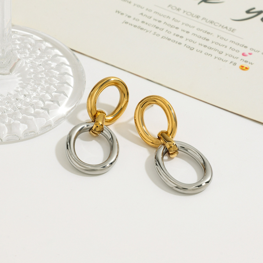 Edelstahl Tropfen Ohrring, 304 Edelstahl, plattiert, für Frau & zweifarbig & hohl, verkauft von Paar
