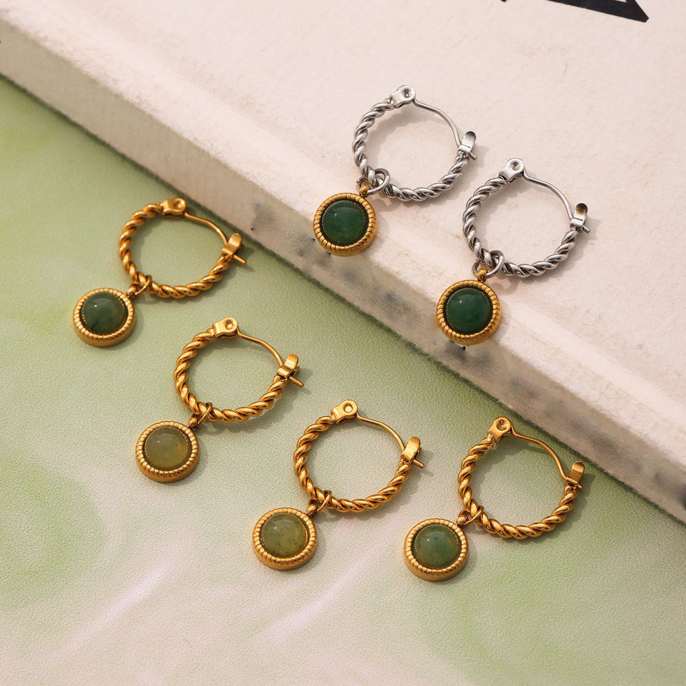 Edelstahl Tropfen Ohrring, 304 Edelstahl, mit Grüner Achat, plattiert, Modeschmuck & für Frau, keine, verkauft von Paar