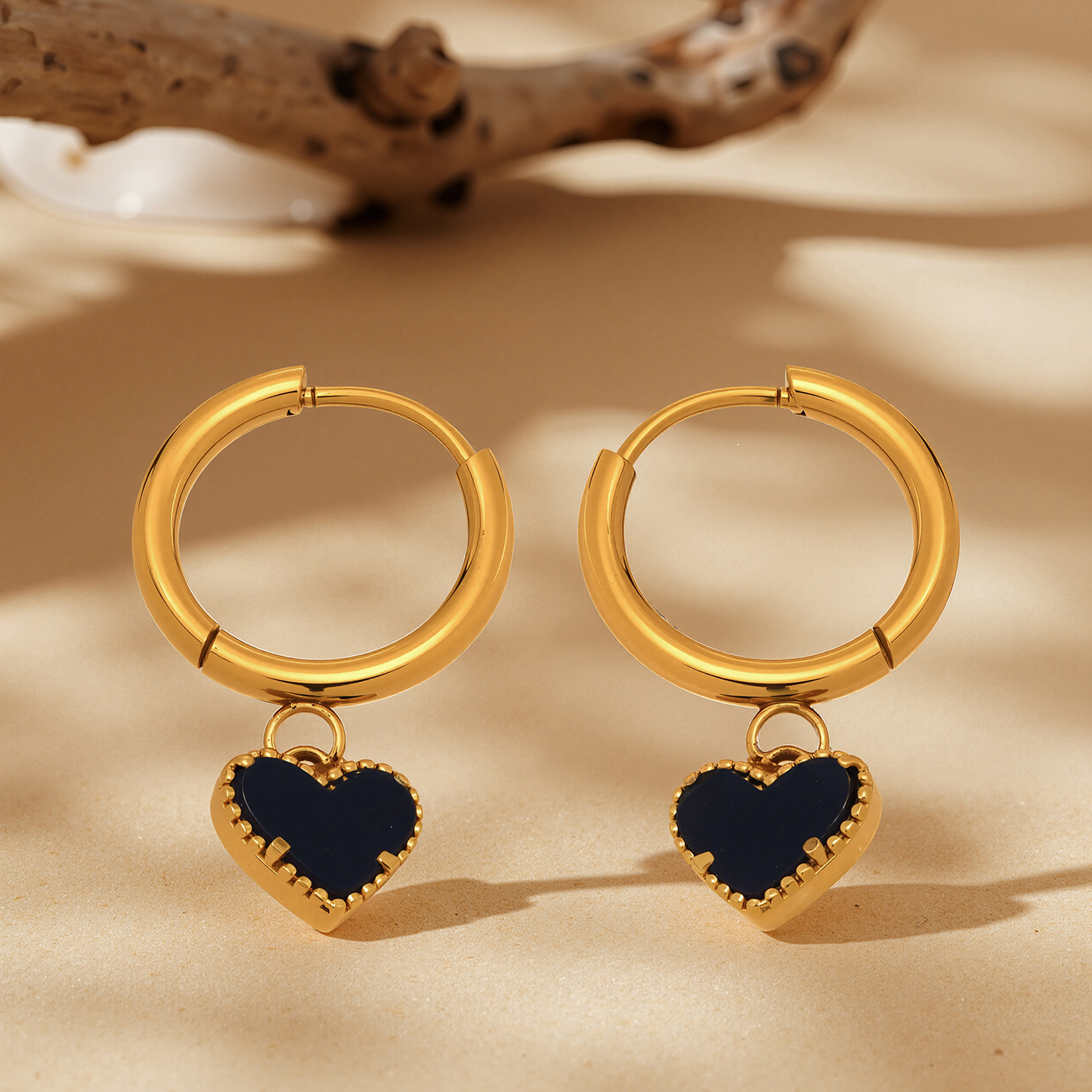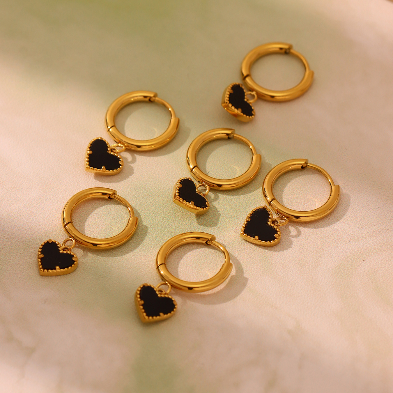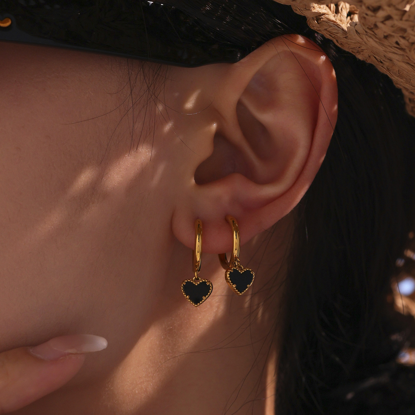 Edelstahl Tropfen Ohrring, 304 Edelstahl, mit Schwarzer Achat, Herz, plattiert, Modeschmuck & für Frau, goldfarben, verkauft von Paar