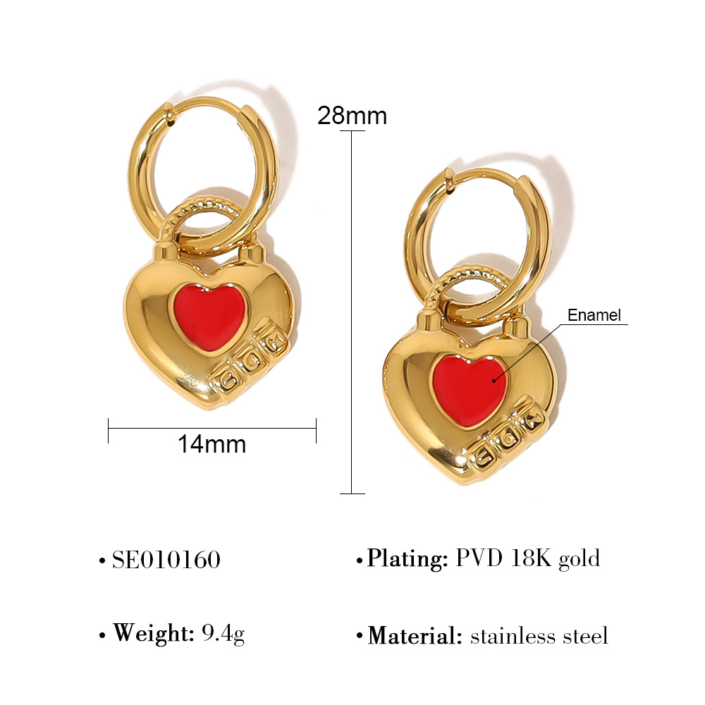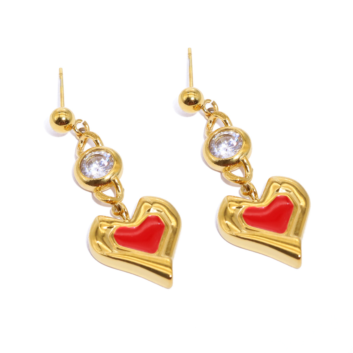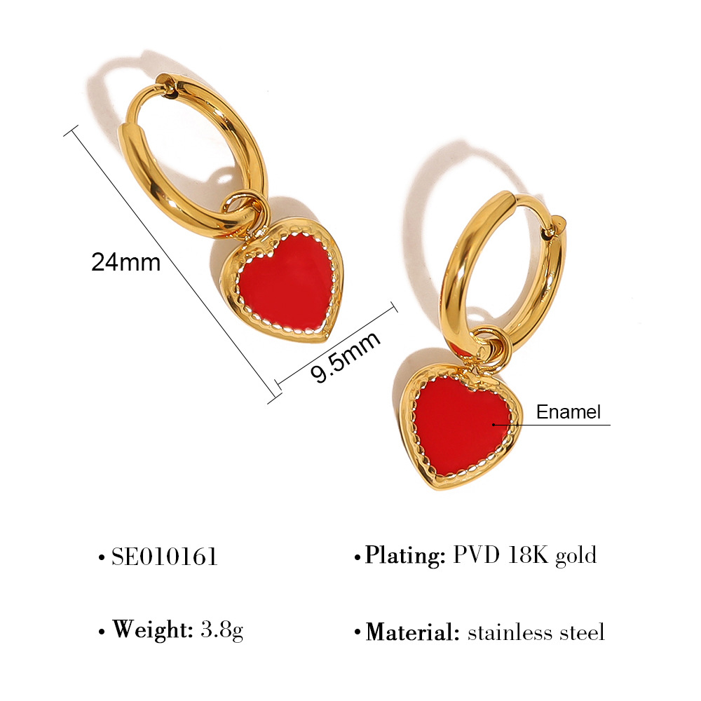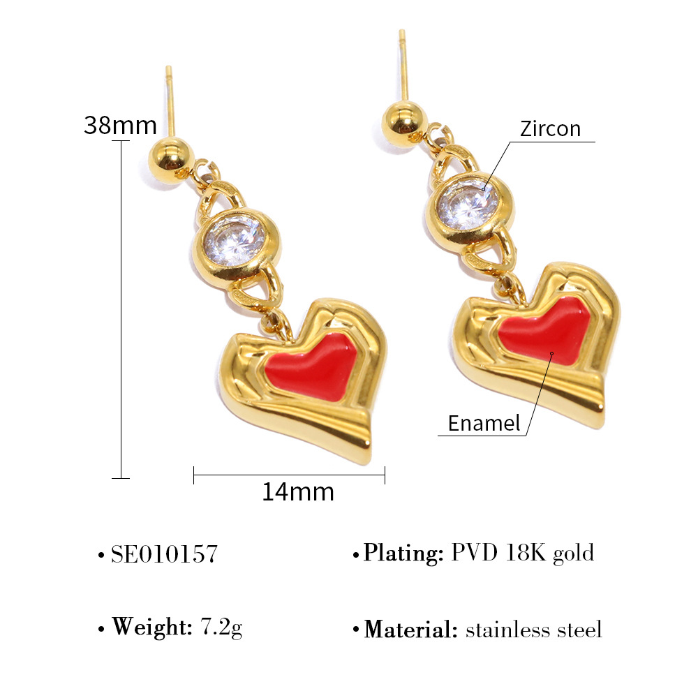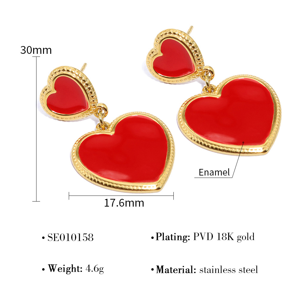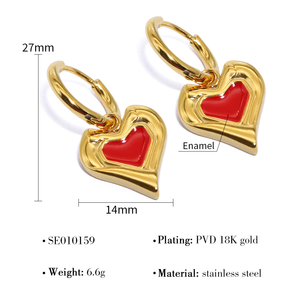 Edelstahl Tropfen Ohrring, 304 Edelstahl, Herz, 18K vergoldet, verschiedene Stile für Wahl & für Frau & Emaille, verkauft von Paar