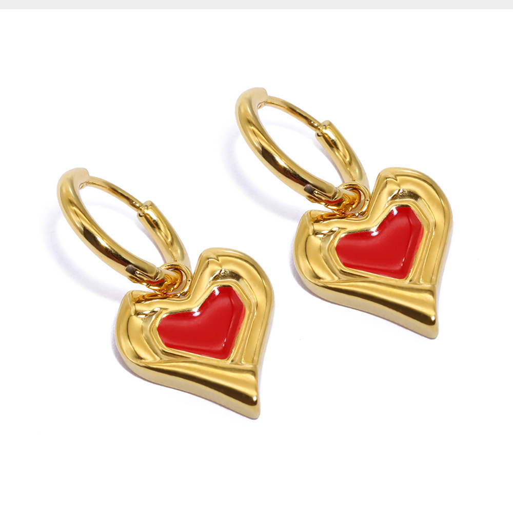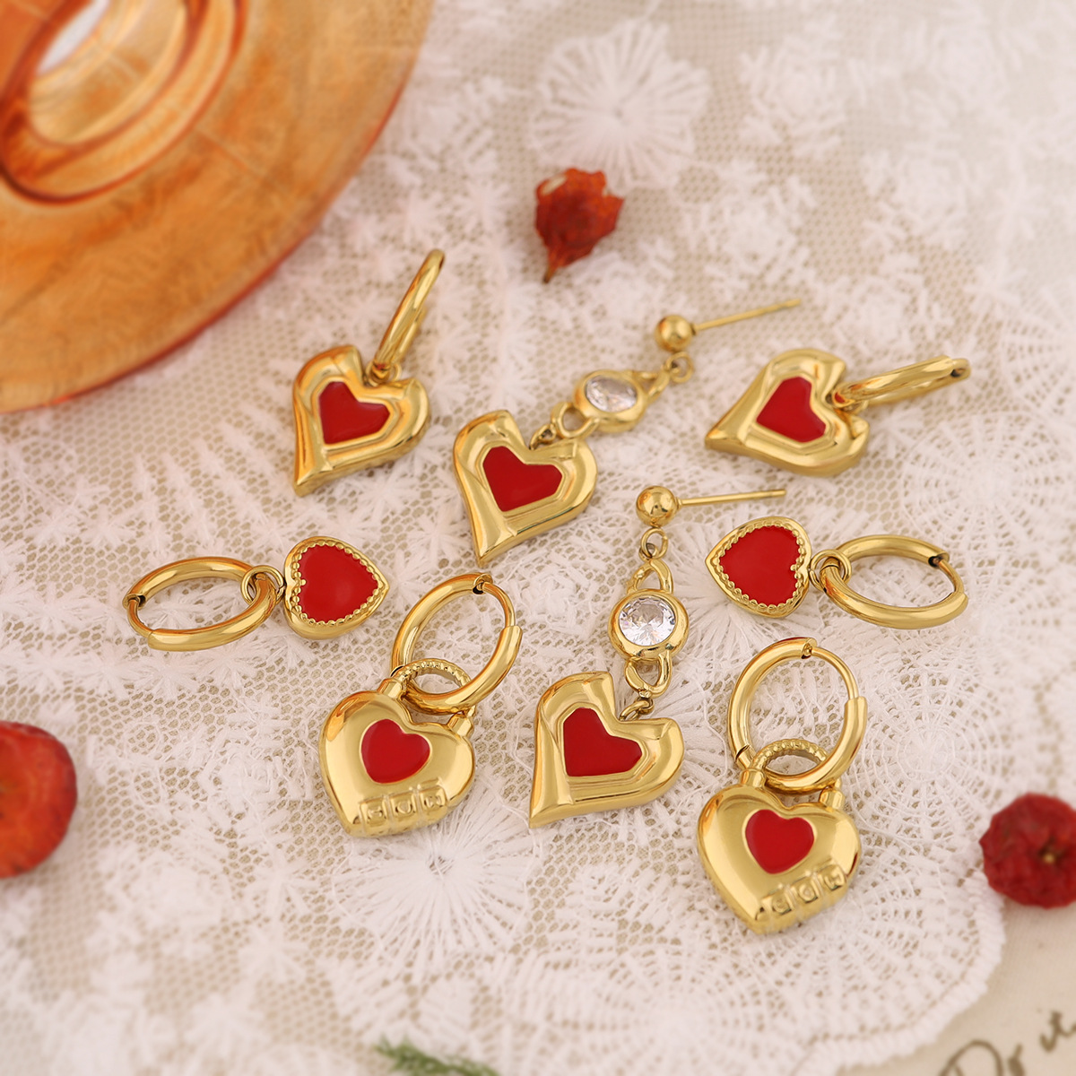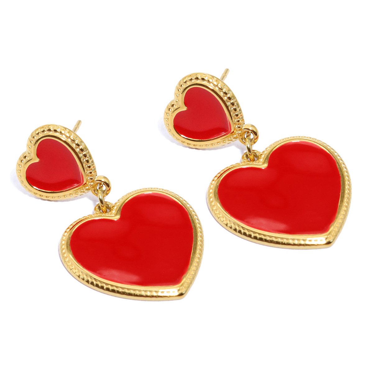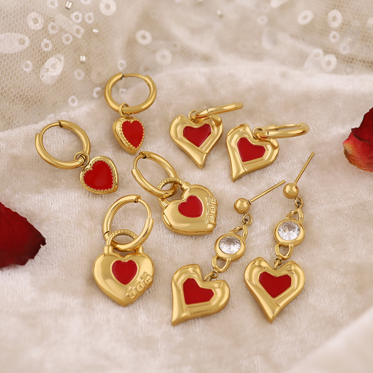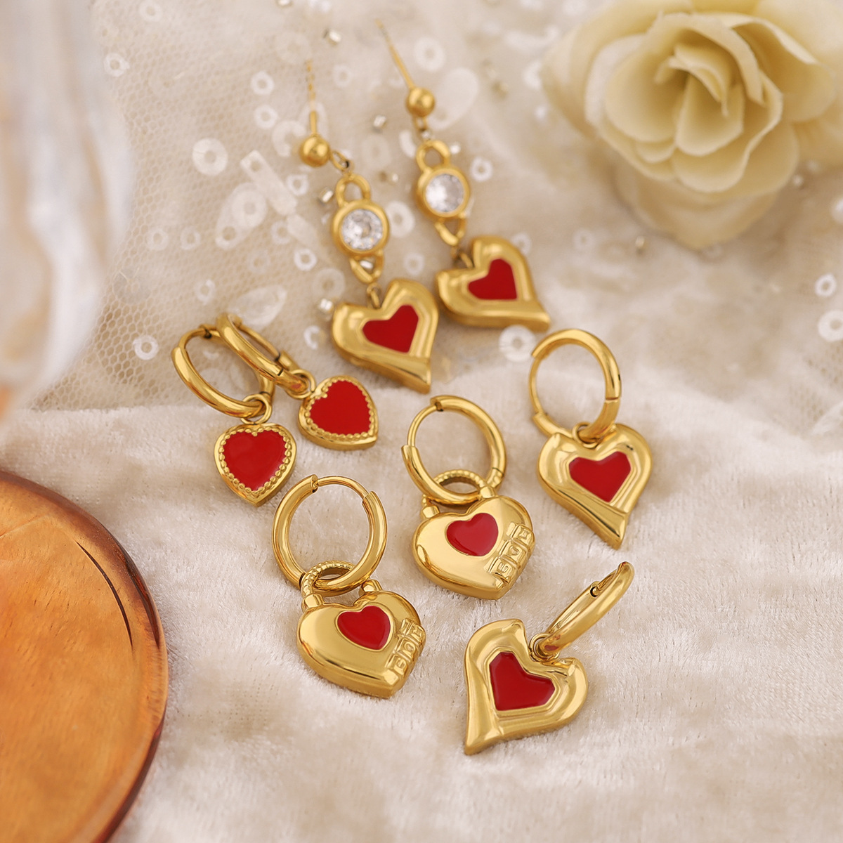 Edelstahl Tropfen Ohrring, 304 Edelstahl, Herz, 18K vergoldet, verschiedene Stile für Wahl & für Frau & Emaille, verkauft von Paar