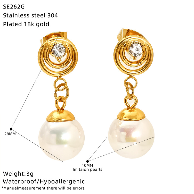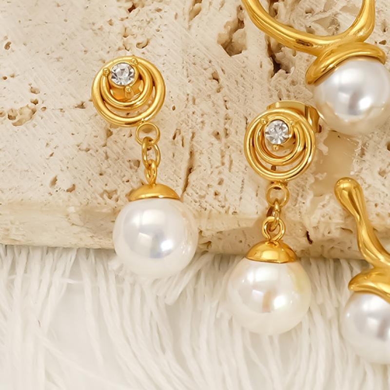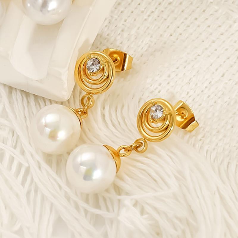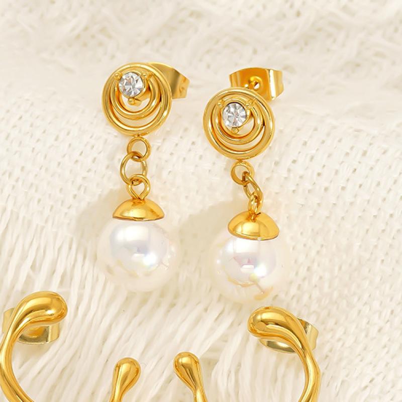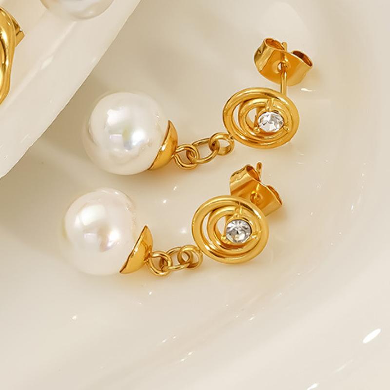 Edelstahl Tropfen Ohrring, 304 Edelstahl, mit Kunststoff Perlen, 18K vergoldet, für Frau & mit Strass & hohl, verkauft von Paar